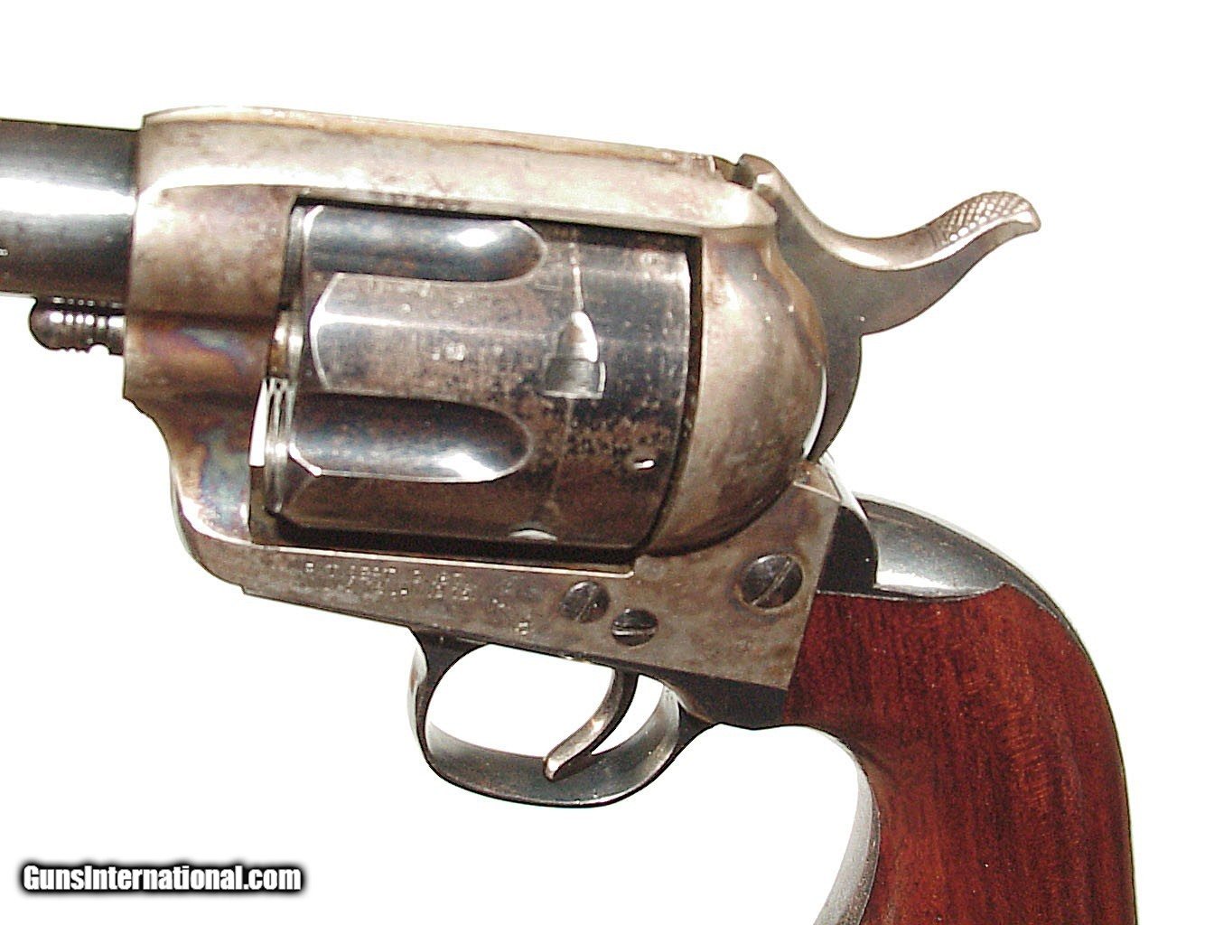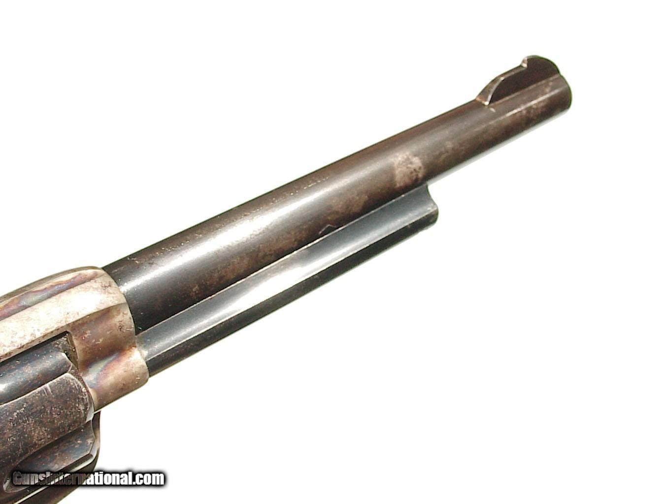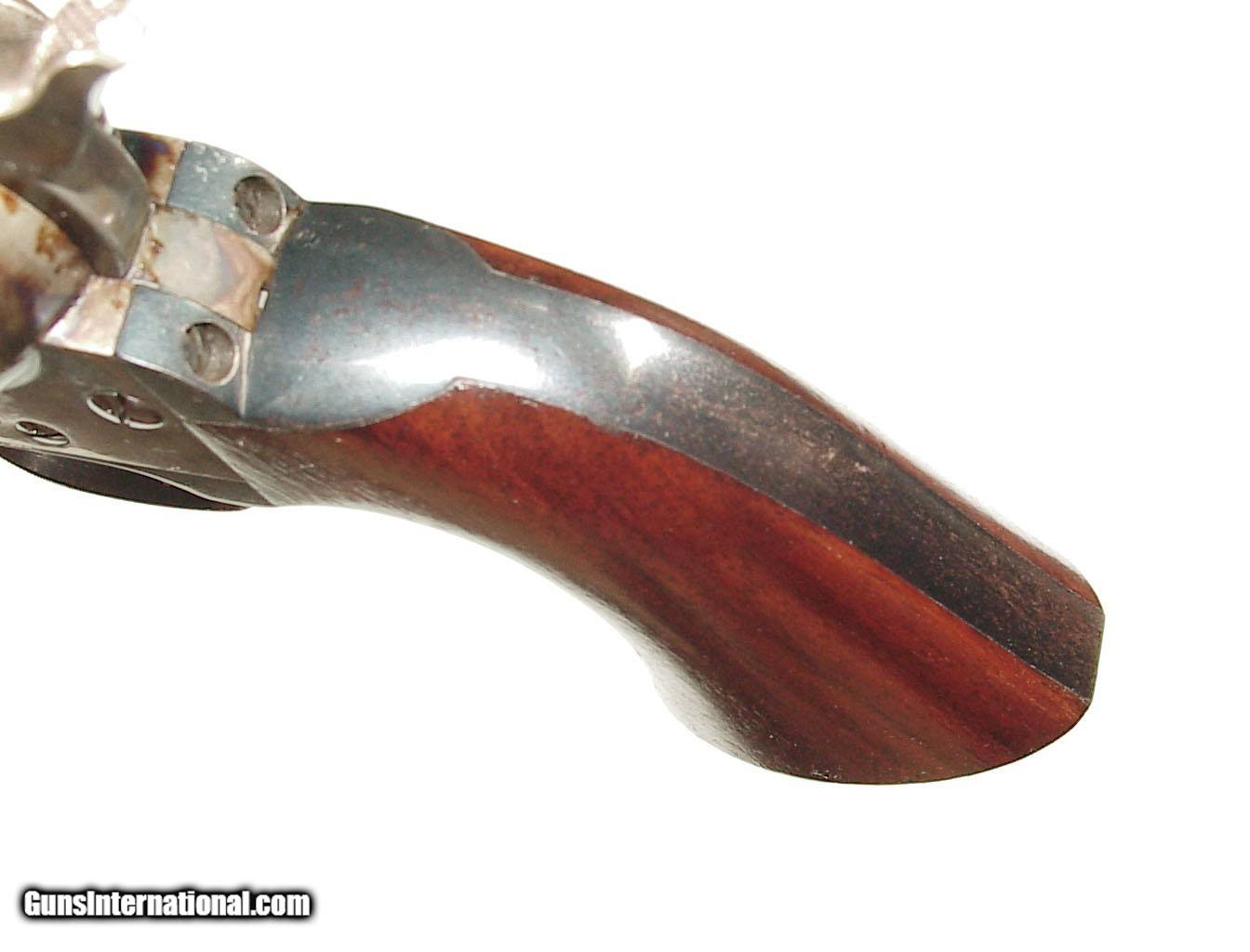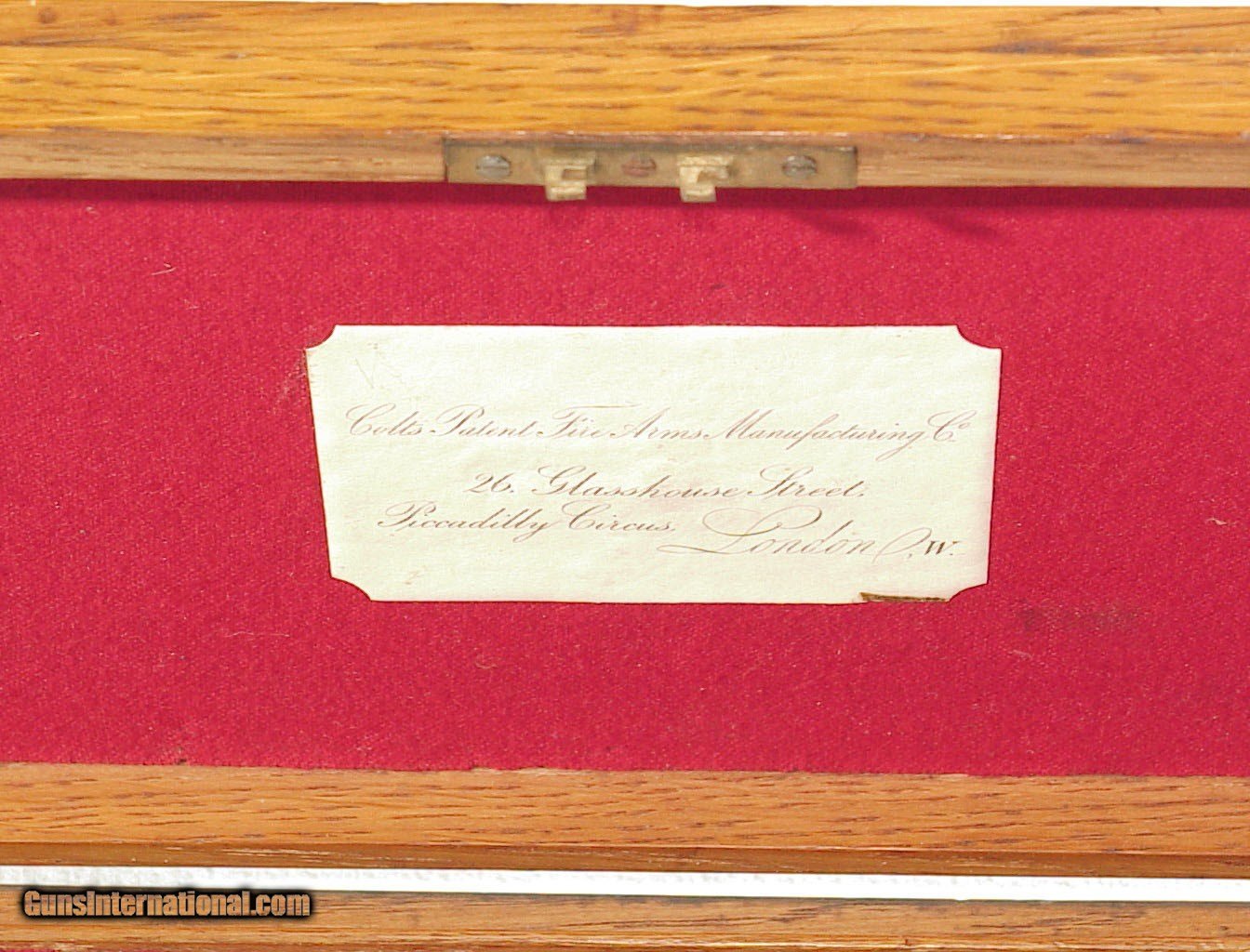 Description: .455 Eley ctg., 7 1/2" barrel with rare Winans front sight. Factory Medford rifling with right hand twist. Blue and casehardened finish and wooden grips. The barrel retains 80-85% plus blue, the cylinder more. The straps have 95% plus blue and frame with excellent case colors remaining. Mint bore. In it's original London Agency box and label with accessories, all excellent. A similar Walter Winans revolver was offered in 2009 at Morphy's and is 15 numbers apart from this one. Walter Winans was born April 5, 1852 in St. Petersburg, Russia to American parents while his father was working on the Russian railroad system. He was immensely talented in a number of fields including art, sculpting, equestrian and pistol & rifle shooting. In the 1908 Summer Olympics he won an Olympic Gold Medal for rifle shooting and in the 1912 Olympics he won a silver medal in a similar event. Over his career Mr. Winans won numerous shooting matches in both rifle & pistol and inventing several different styles of sights for handguns like the one on this revolver. He was also a noted author writing several works relating to firearms and shooting. He died in 1920 while participating in a trotting race in London. SOLD Antique: Yes |