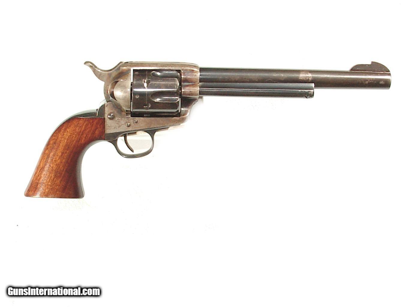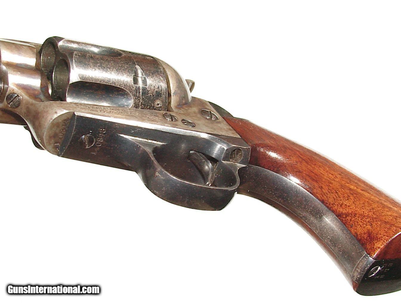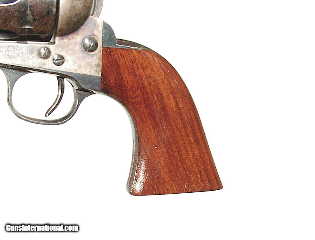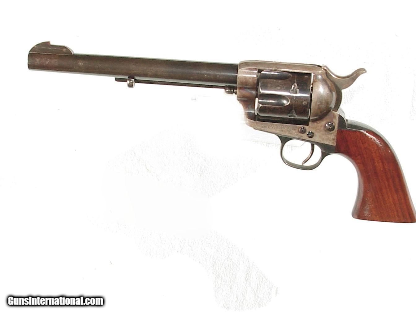 Description: .455 Eley ctg., 7 1/2" barrel with rare Winans front sight. Factory Medford rifling with right hand twist. Blue and casehardened finish and wooden grips. The barrel retains 80-85% plus blue, the cylinder more. The straps have 95% plus blue and frame with excellent case colors remaining. Mint bore. In it's original London Agency box and label with accessories, all excellent. A similar Walter Winans revolver was offered in 2009 at Morphy's and is 15 numbers apart from this one. Walter Winans was born April 5, 1852 in St. Petersburg, Russia to American parents while his father was working on the Russian railroad system. He was immensely talented in a number of fields including art, sculpting, equestrian and pistol & rifle shooting. In the 1908 Summer Olympics he won an Olympic Gold Medal for rifle shooting and in the 1912 Olympics he won a silver medal in a similar event. Over his career Mr. Winans won numerous shooting matches in both rifle & pistol and inventing several different styles of sights for handguns like the one on this revolver. He was also a noted author writing several works relating to firearms and shooting. He died in 1920 while participating in a trotting race in London. SOLD Antique: Yes |