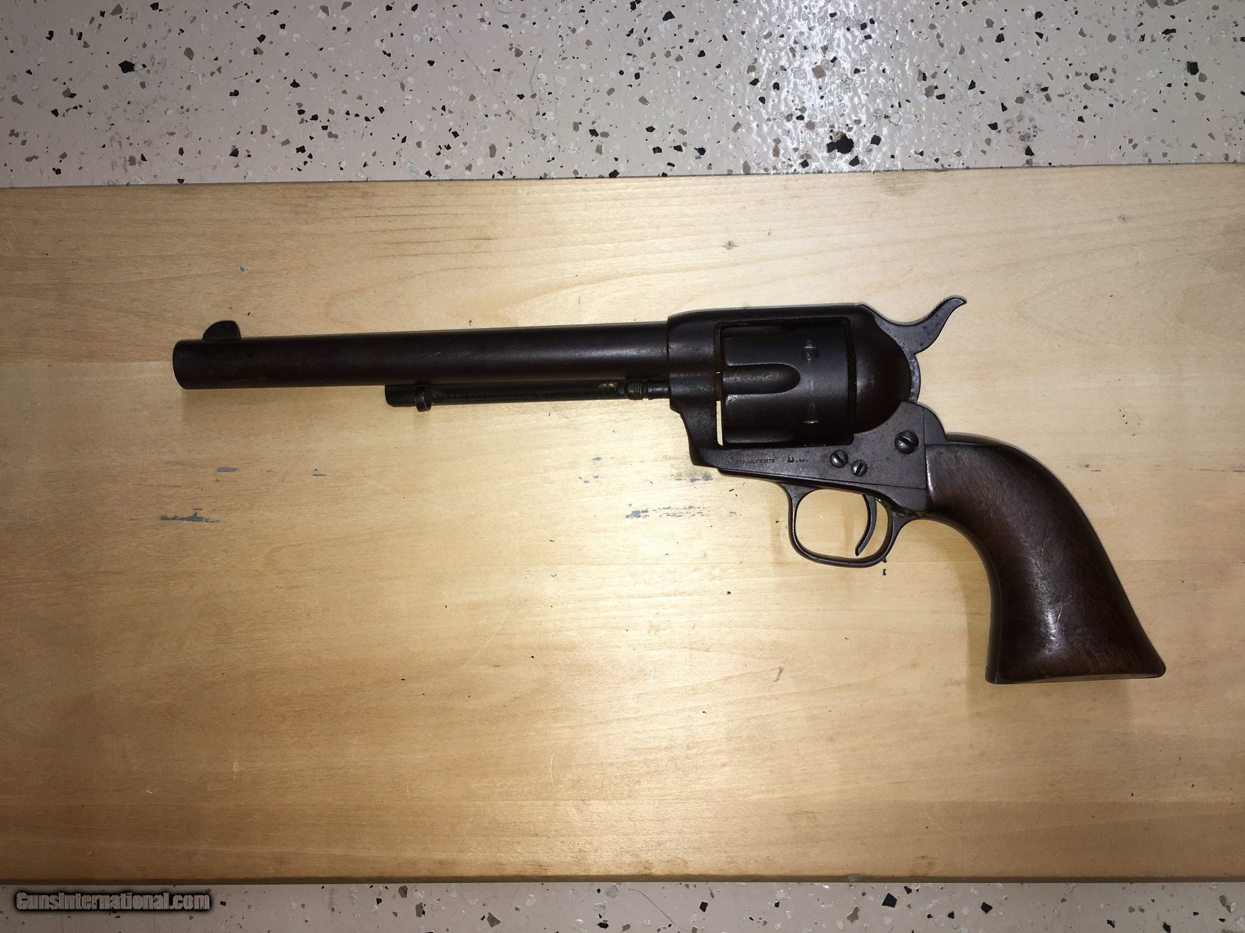 Description: MOVE TO MORPHY NOV. ) This gun has a John Kopec letter . Here is a 4 digit serial number made early 1874. Colt U.S. Cavalry Revolver , This gun is in good shape has four clicks on hammer , Cylinder is tight , The finish remains a natural dark - brown patina through out . This gun escape the recall of 1893 and 1898 to be made inti Artillery configuration. For unknown reason it escape the recalls . This could have either been because of being lost, Stolen ( Deserter ) or captured by hostile Indaians. It looks like this a gun that has been in Texas from 1874 til today 2021 . Gun was most likely in the 4th Cavalry , But here are a few S.N. that was at Custer last stand 1543 - 2499 - 3256 - 3632 . PLEASE READ JOHN KOPEC LETTER it will be in photos. If you have any question please text or call 214-457-0011 Gerald Oliver . Give me a day or two and I will have new pic's that show the gun in daylight because these are not to good . SOLD |