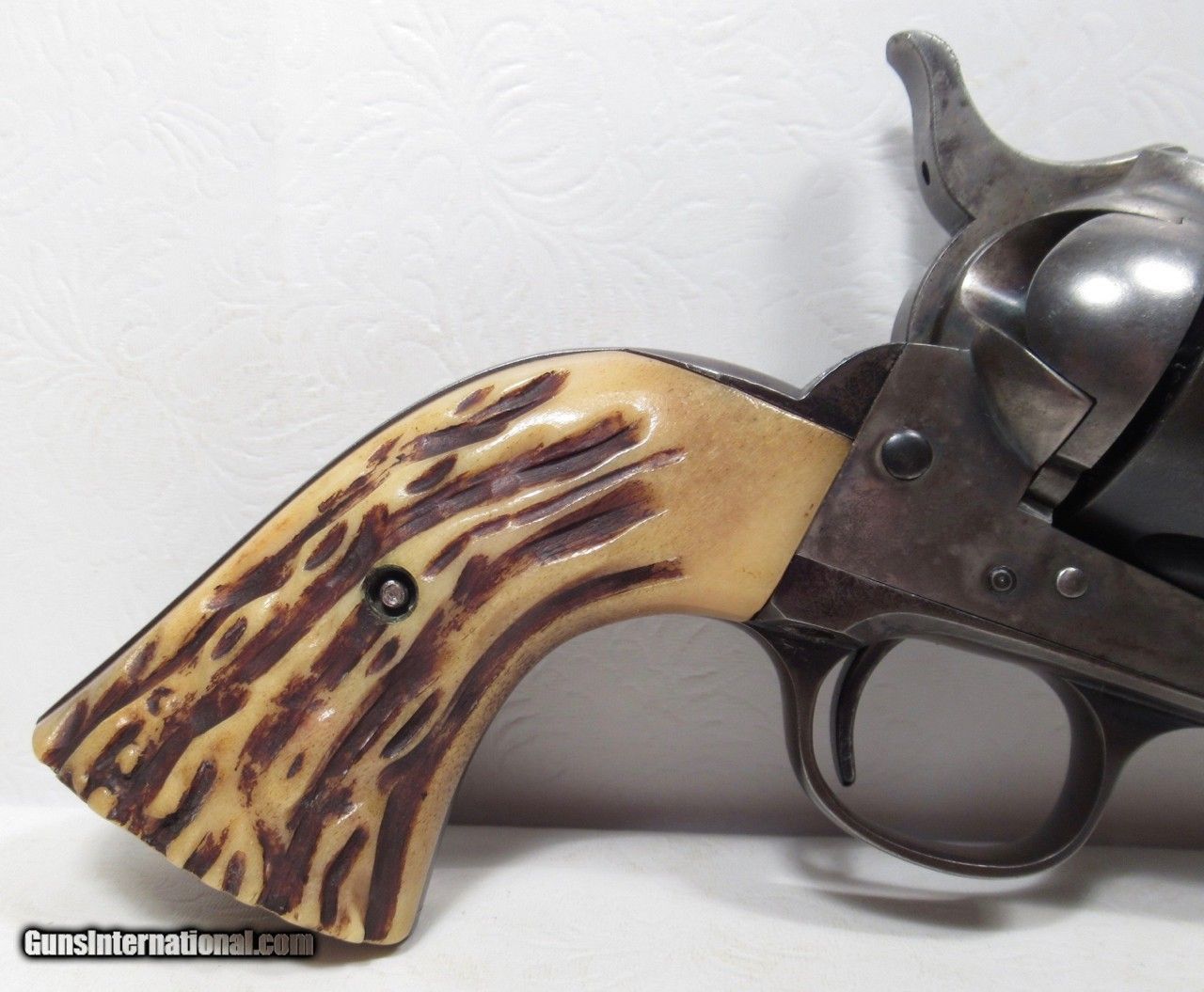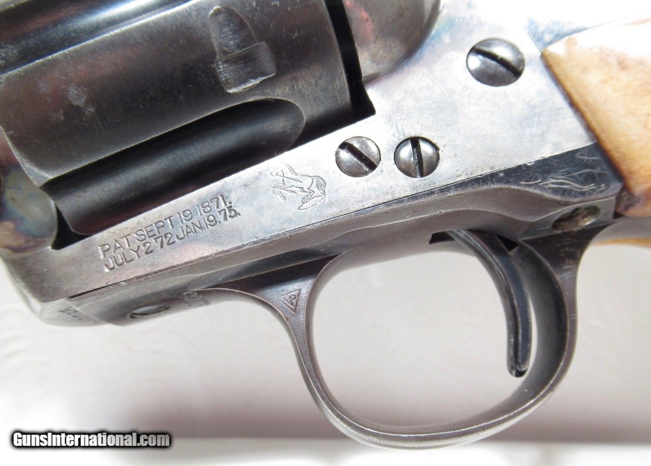 Description: Colt Single Action Army; Serial No. 331035; .45 Caliber; 4 ¾” Barrel; Blue Finish; Long Flute Cylinder; Per Factory Letter Included, Shipped to Preager Hardware Company of San Antonio, Texas on October 16, 1914; Lots of Original Metal Finish Remains; Really Nice Well Fitting Jig Bone Grips; All Numbers Match; Perfect Action and Lock-up; Near Perfect Strong Shiny Bore; Full Front Sight; Excellent Screws; Very Rare 107 Year-Old Texas Colt 45; See All Photos for Condition; No Texts; Call (254)541-5765 or Email Only; PERSONAL PROPERTY of Harold Wieser; Price: $7,475 + $45 S&H Via USPS PRIORITY MAIL; Payment Address: Harold Wieser - 1466 U.S. Hwy 77 - Rosebud, TX 76570; SEND PAYMENTS VIA USPS PRIORITY MAIL; SOLD Manufacturer: Colt Model: 1873 Serial Number: 331035 |