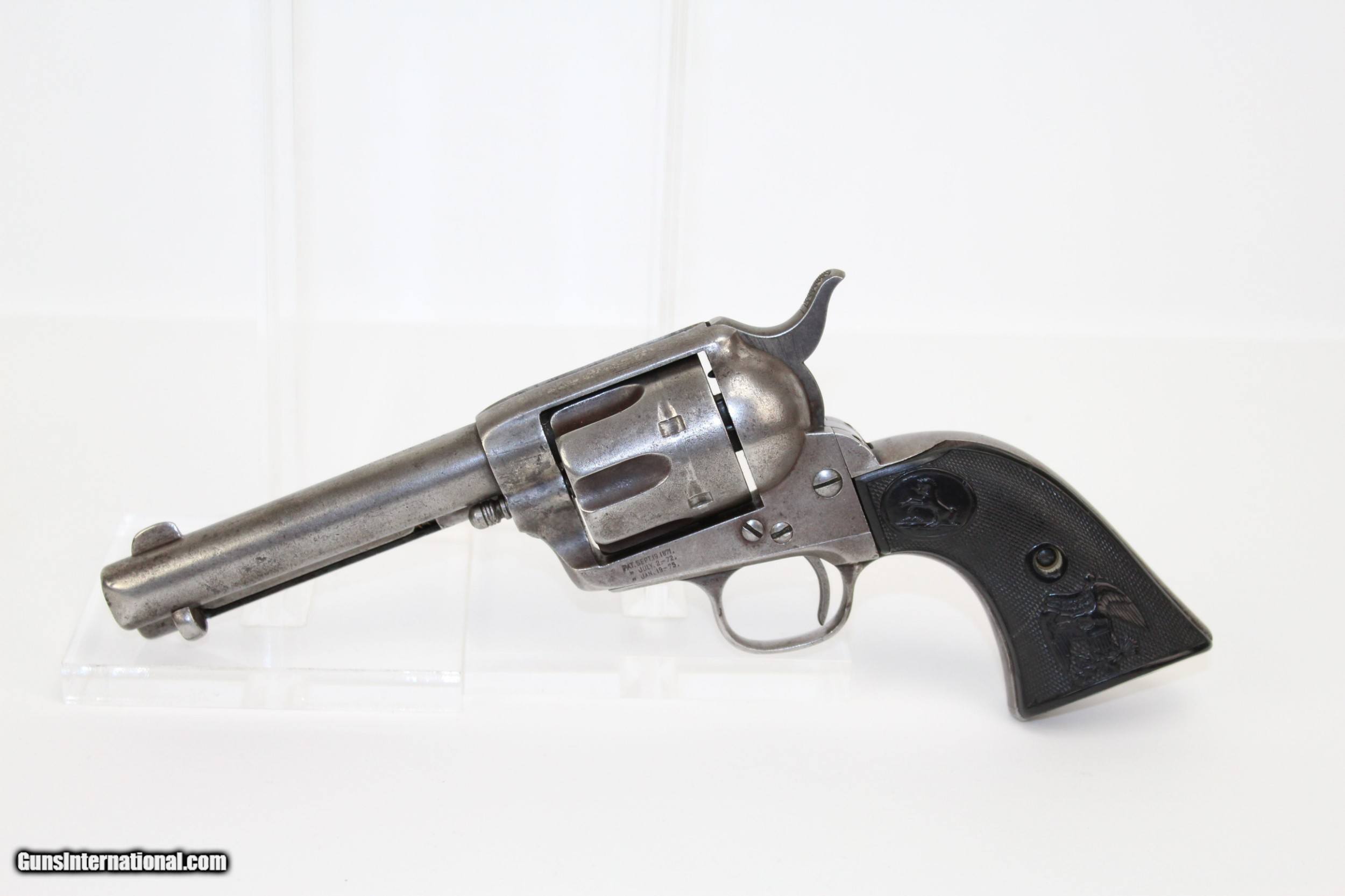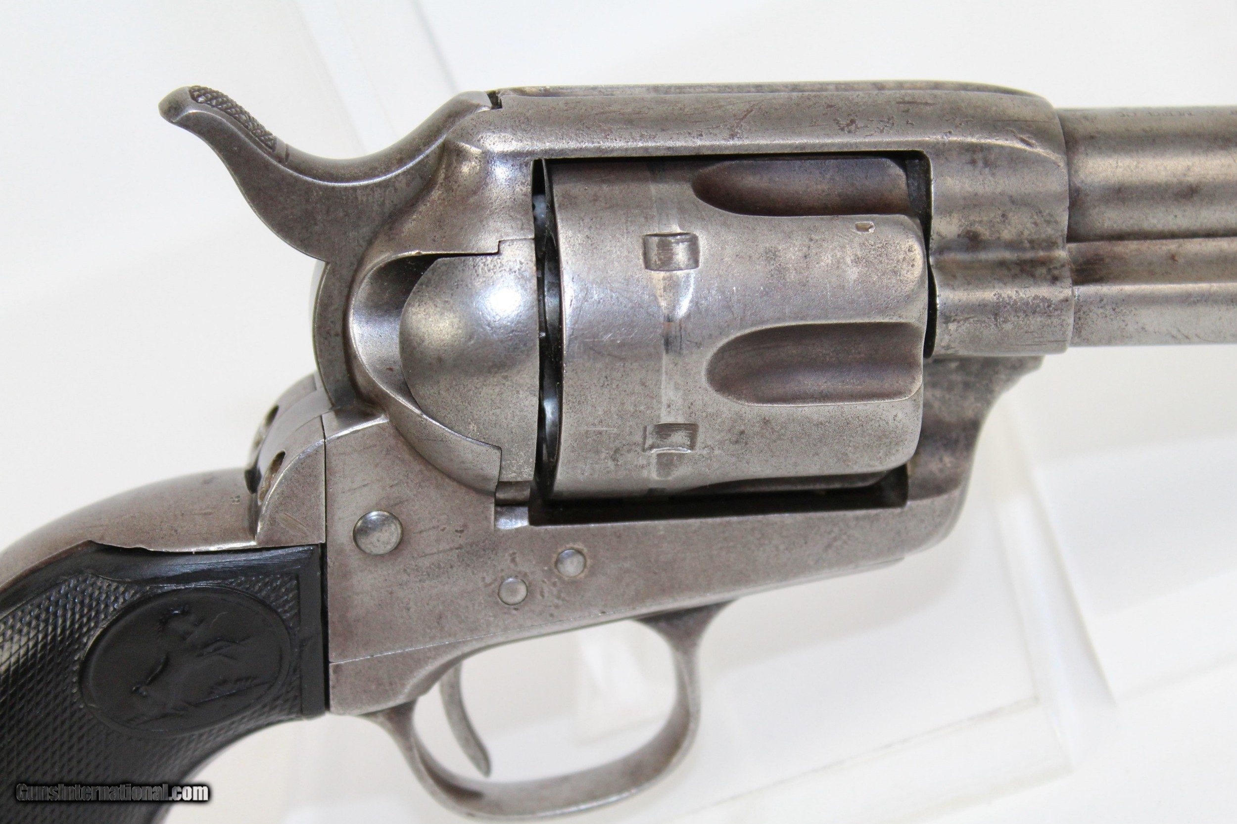 Description: SALT LAKE Antique COLT Black Powder SAA Revolver .38 Colt Shipped to Salt Lake City, Utah in 1889 Here we present an antique Colt Single Action Army Revolver in .38 Colt, made in 1889 in Hartford, Connecticut. According to the accompanying factory letter, it was shipped along with one other revolver to Salt Lake Hardware, Co. in Salt Lake City, Utah on August 21, 1889. The Colt “Peacemaker” was introduced in 1873 and has become one of the most iconic firearms in all of history, thanks to its widespread use by the U.S. military, civilians and, more recently, in Western films. Though Colt enjoyed the largest contracts of any handgun maker during the American Civil War, it had to rely on its array of percussion fired revolvers, namely the 1860 Army until the Smith & Wesson owned Rollin White Patent expired in 1869. This enabled them to begin making revolvers with completely bored through cylinder chambers in order to utilize modern metallic cartridge ammunition in the most effective manner. In 1869, Colt’s began development of a suitable cartridge revolver in earnest, first coming out with a number of conversions for their percussion lines, until 1872 when they debuted what was to become the Colt Model 1873 Single Action Army in the 1872 U.S. Trials. Needless to say, it won, and became the Army’s revolver of choice. It also became the sidearm of choice for many others like cowboys, guards, lawmen, crooks, shopkeepers and all manner of civilians. The overall condition is good. The metal surfaces have a smooth, gray patina. The markings are clear and legible. The trademarked hard rubber grips are in good shape though the escutcheon on the left has fallen through. The bore is in great shape with strong rifling. The action on this revolver is excellent. Here is one that went West in 1889! Own the original! This is a legitimate antique and not a reproduction. Barrel is 4-3/4 inches. Caliber: .38 Colt Overall condition as seen in photos. Very Fast. Very Safe. FREE SHIPPING WORLDWIDE. Delivered directly to your door by express mail! Guaranteed AUTHENTIC & Includes CERTIFICATE OF AUTHENTICITY. ancestryguns $6700 #7388 SOLD Antique: Yes |