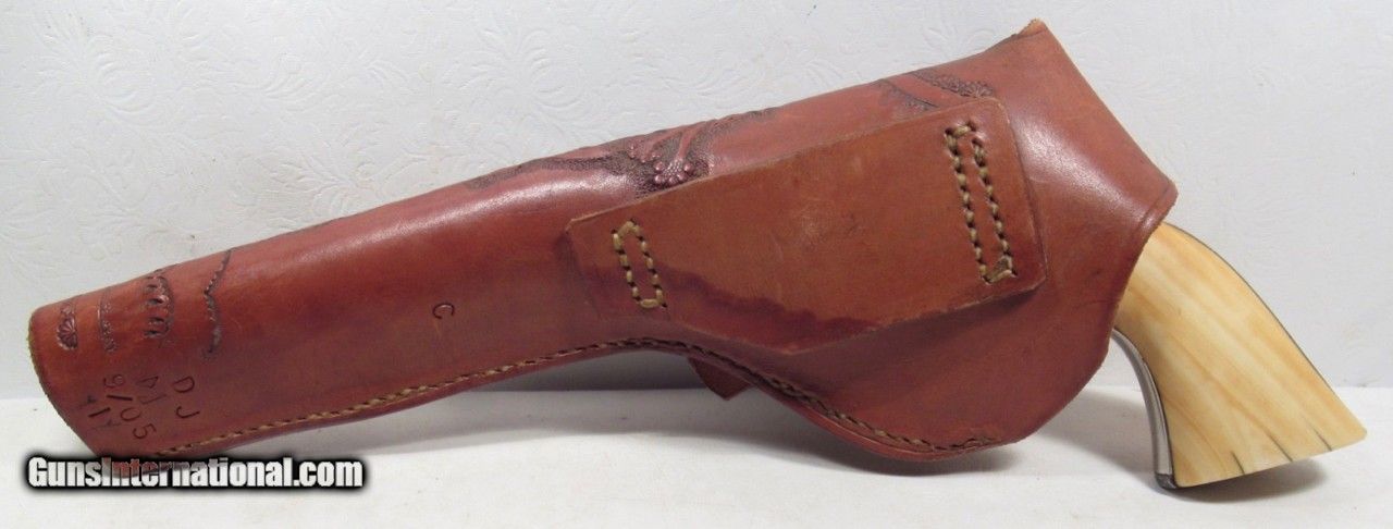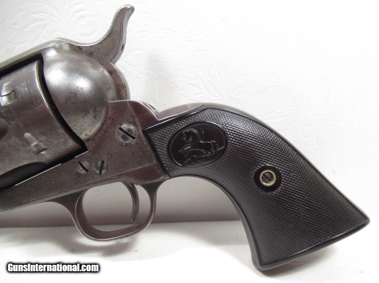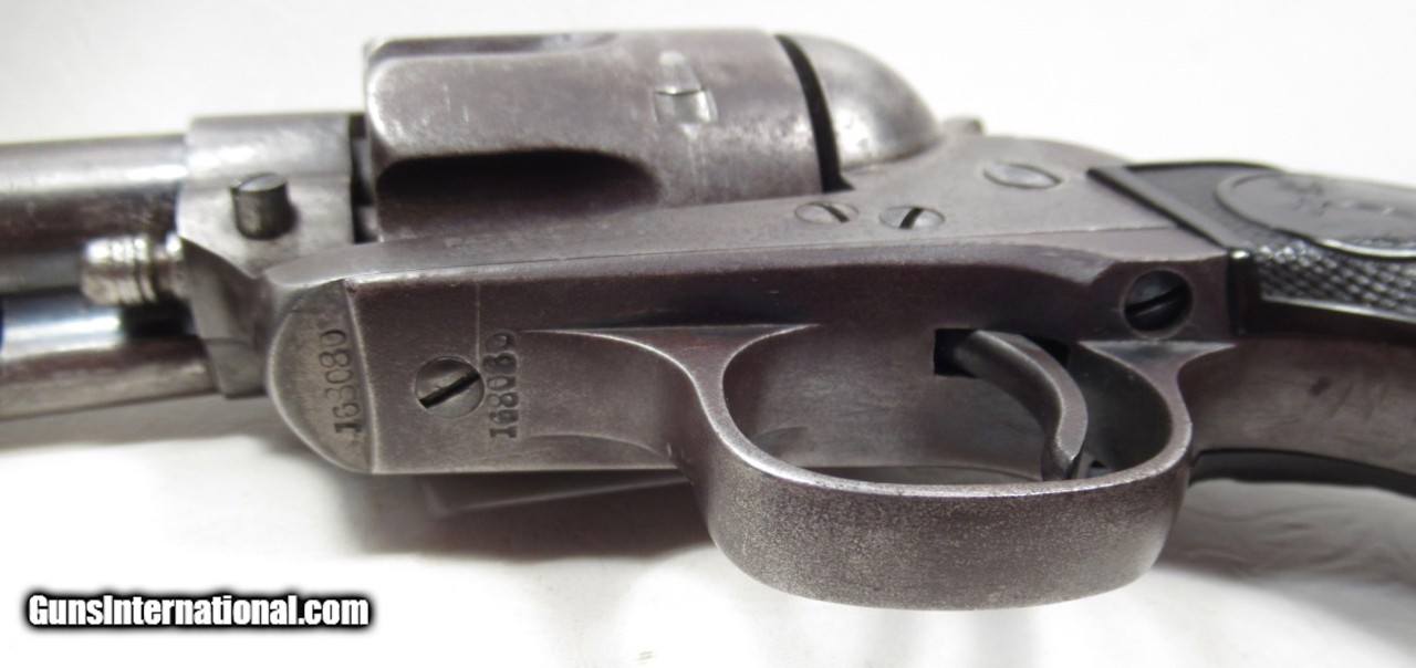 Description: Colt Single Action Army Revolver; Serial No. 168080; Per Included Factory Letter: .41 Caliber with 4 ¾” Barrel and Blue Finish with Rubber Grips; Shipped to Fred M. Stone on November 4, 1896 as a One Gun Shipment; 100% Correct, Original and Matching with Front Sight Slightly Lowered; Good Amount of Original Metal Finish Remains; Excellent Original Grips; PERFECT TIGHT ACTION; Very Strong Shiny Bore with minor blemishes; Scarce 126 Year-Old Colt S.A.A. Revolver Shipped to an Individual; Great Tooled Holster Included; See All Photos for Condition; No Texts; Call (254)541-5765 or Email Only; PERSONAL PROPERTY of Harold Wieser; Price: $8,475 + $45 S&H Via USPS PRIORITY MAIL; Payment Address: Harold Wieser - 1466 U.S. Hwy 77 - Rosebud, TX 76570; SEND PAYMENTS VIA USPS PRIORITY MAIL; BEWARE of SCAMS!!! – DO NOT SEND MONEY or CORRESPONDENTS ELECTRONICALLY UNLESS YOU HAVE SPOKEN to HAROLD WIESER FIRST! 254-541-5765 SOLD Antique: Yes Manufacturer: Colt Model: 1873 Serial Number: 168080 |