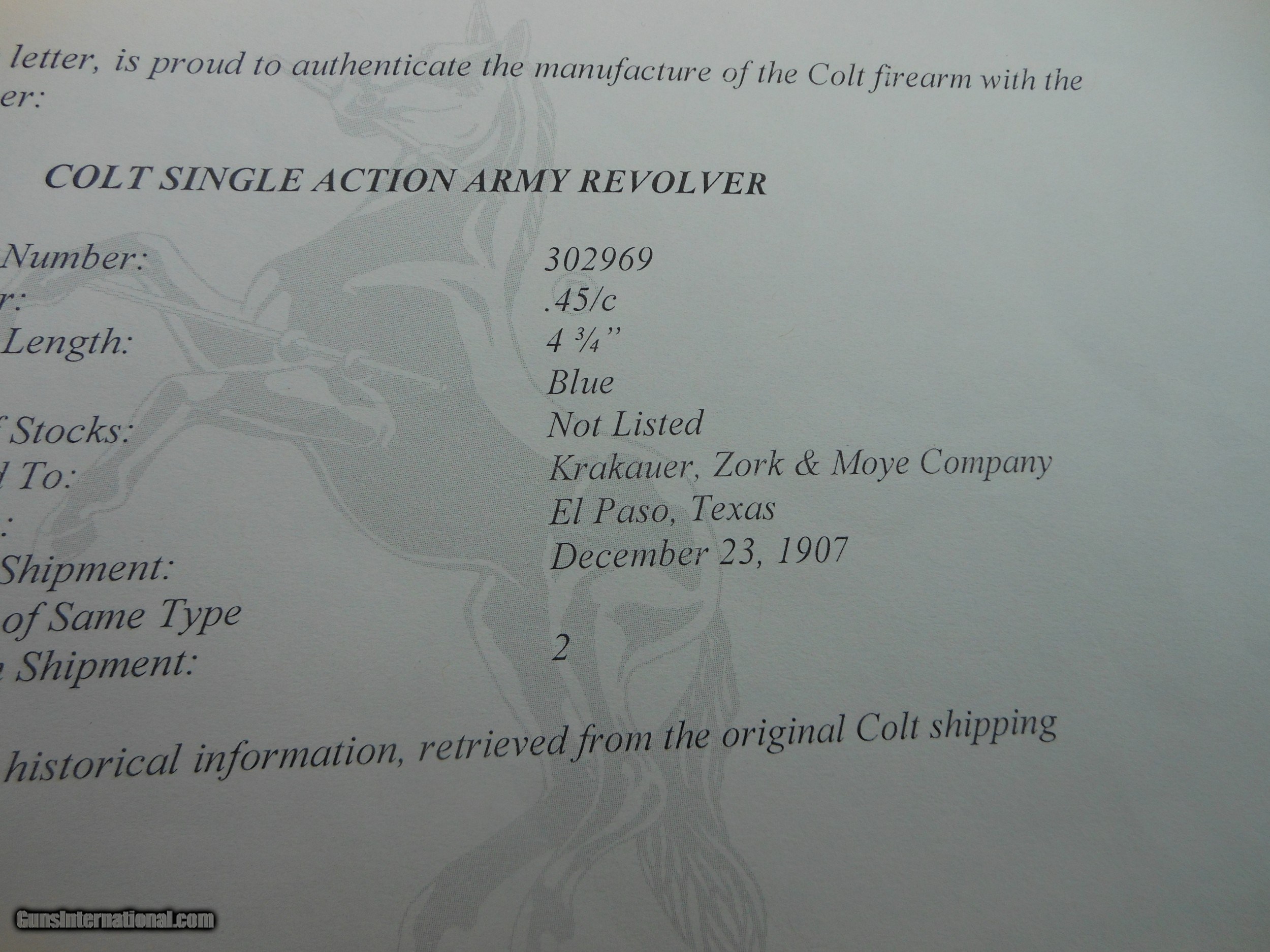 Description: This is a Colt SAA in .45 Colt with a $.75 inch barrel. The action is tight and crisp and the bore is vry good. tight lockup. Sent to Krakauer Zork & Moye Company in El Paso TX, all corners are sharp and crisp. Buyer pays $30 shipping and Ins. I have over 700 feedbacks on Ebay, all Positive, no negative or neutral. GB has over 100 again all positive. Yeah I know...the x was too close to the s and I fat fingered it. SOLD Curio/Relic: Yes |