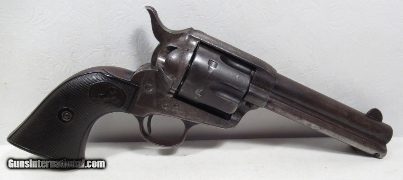 Description: Colt Single Action Army Revolver; Serial No. 193523; Per Included Factory Letter: .45 Caliber with 4 ¾” Barrel and Blue Finish; Shipped to Walter Tips of Austin, Texas on March 1, 1900 as Part of a Five Gun Shipment; Colt was Originally Bought by John C. Brown whom was a Cook on the Railroad; He Bought it to Leave with his Wife for Protection; Colt was Purchased from Mrs. Brown by Mrs. Dodson of Larue, Texas Many Year Ago; Inside Left Grip Panel “JCB”; The Kind of Texas Colt you like to find; Some Original Blue Present, Perfect Screws, Full Front Sight; Perfect Tight Action; Strong Bore with some chattering; 122 Year-Old Texas Colt 45 with History; See All Photos for Condition; No Texts; Call (254)541-5765 or Email Only; PERSONAL PROPERTY of Harold Wieser; Price: $2,975 + $45 S&H Via USPS PRIORITY MAIL; Payment Address: Harold Wieser - 1466 U.S. Hwy 77 - Rosebud, TX 76570; SEND PAYMENTS VIA USPS PRIORITY MAIL; BEWARE of SCAMS!!! – DO NOT SEND MONEY or CORRESPONDENTS ELECTRONICALLY UNLESS YOU HAVE SPOKEN to HAROLD WIESER FIRST! 254-541-5765 SOLD Manufacturer: Colt Model: 1873 Serial Number: 193523 |