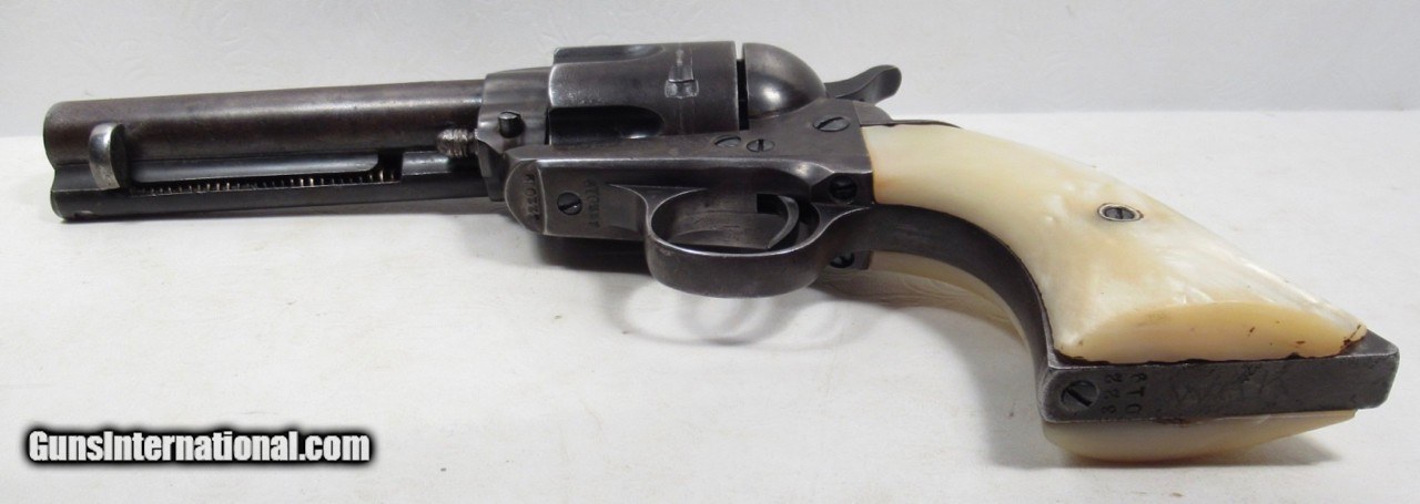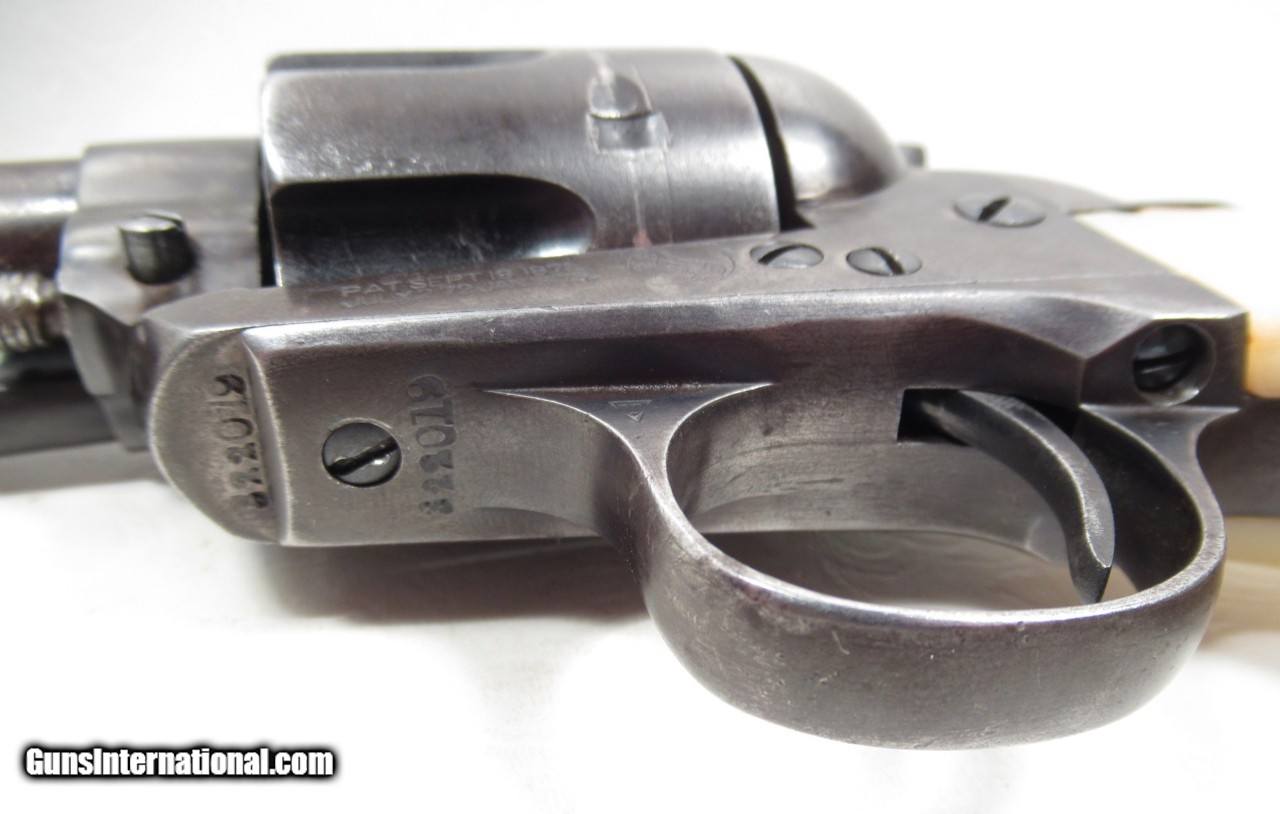 Description: SALE PENDING--Colt Single Action Army Revolver; Serial No. 322019; Per Included Factory Letter: .32/20 Caliber with 4 ¾” Barrel and Blue Finish; Shipped to Shelton-Payne Arms Company of El Paso, Texas on February 22, 1912 as Part of a Three Gun Shipment; Some Original Metal Finish Remains; Old Pearl Grips; All Numbers Match; Perfect Action; Strong Bore with some light chattering; Front Sight Slightly Lowered; 110 Year-Old Colt S.A.A. Revolver from the Roughest Town in Texas; See All Photos for Condition; No Texts; Call (254)541-5765 or Email Only; PERSONAL PROPERTY of Harold Wieser; Price: $3,975 + $45 S&H Via USPS PRIORITY MAIL; Payment Address: Harold Wieser - 1466 U.S. Hwy 77 - Rosebud, TX 76570; SEND PAYMENTS VIA USPS PRIORITY MAIL; BEWARE of SCAMS!!! – DO NOT SEND MONEY or CORRESPONDENTS ELECTRONICALLY UNLESS YOU HAVE SPOKEN to HAROLD WIESER FIRST! 254-541-5765 SOLD Manufacturer: Colt Model: 1873 Serial Number: 322019 |
