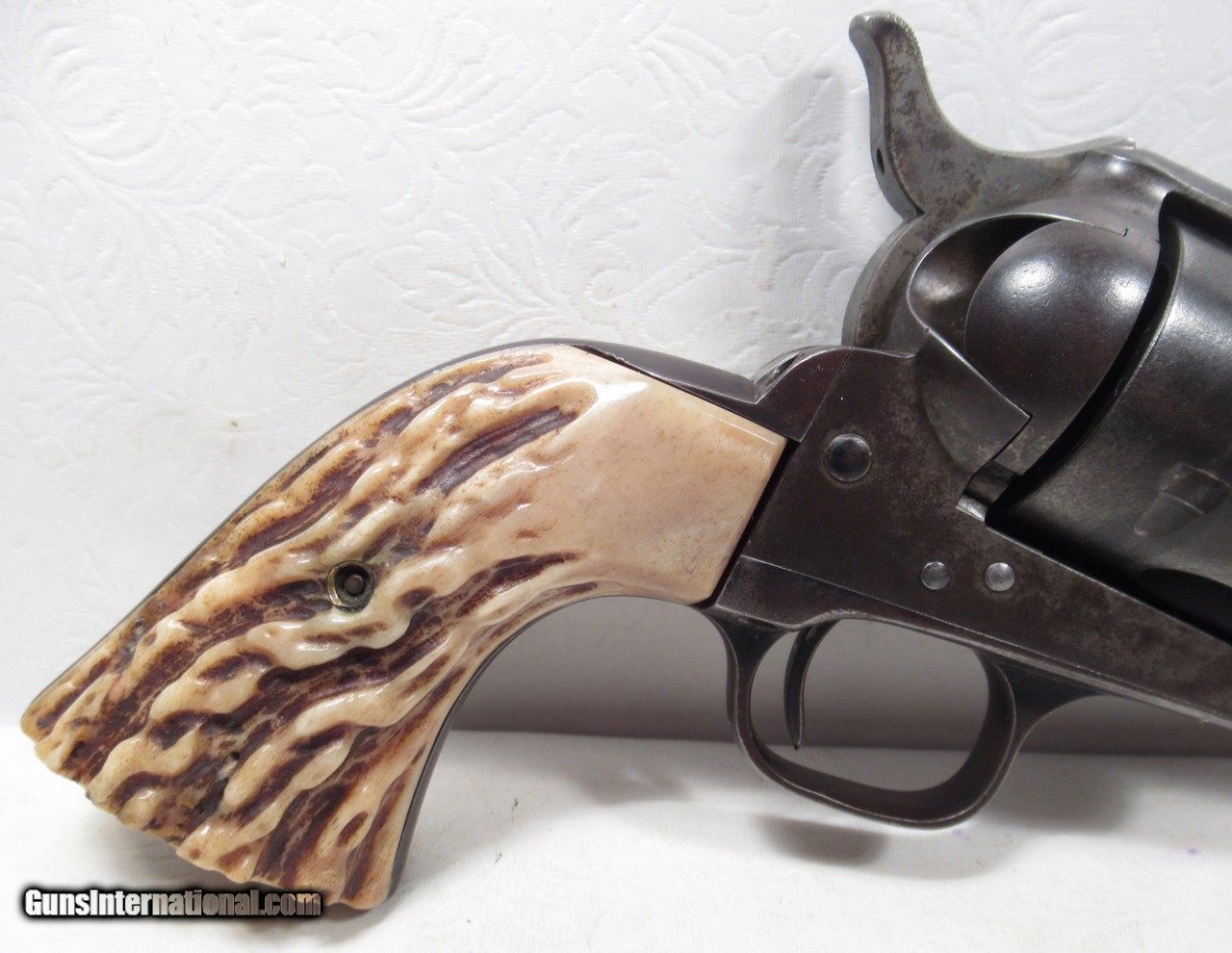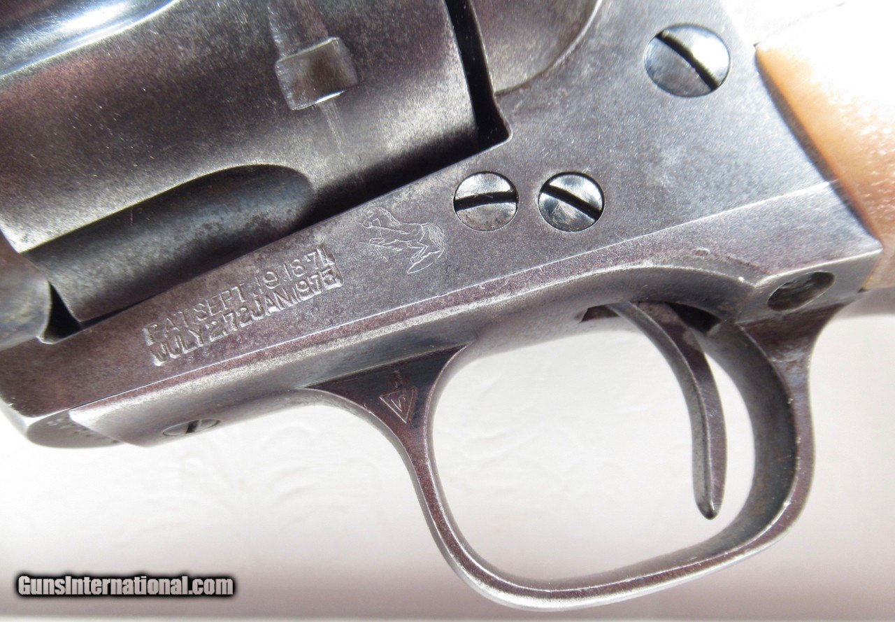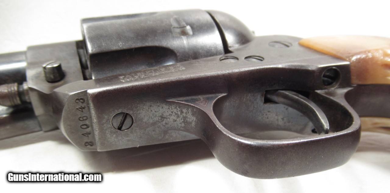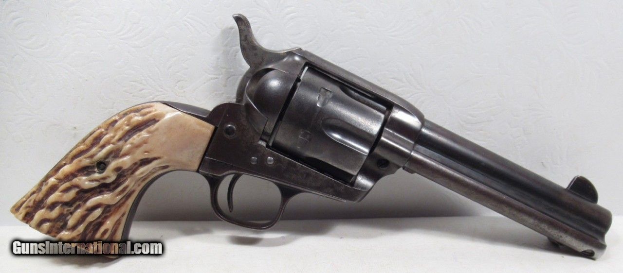 Description: SOLD--Colt Single Action Army Revolver; Serial No. 340643; Per Included Factory Letter: .45 Caliber with 4 ¾” Barrel and Blue Finish; Shipped to Wolf & Klar of Fort Worth, Texas on March 18, 1921 as Part of a 6 Gun Shipment; Revolver Has Wolf & Klar Marked Jig Bone Grips; Original Metal Finish has turned dark with Good Amount of Blue and Case Showing; Perfect Tight Action and Very Strong Bore with some chattering; Excellent Original Screws; Full Front Sight; All Numbers Matching; This 101 Year-Old Colt Came Out of a Ft. Worth Area Estate; See All Photos for Condition; No Texts; Call (254)541-5765 or Email Only; PERSONAL PROPERTY of Harold Wieser; Price: $4,975 + $45 S&H Via USPS PRIORITY MAIL; Payment Address: Harold Wieser - 1466 U.S. Hwy 77 - Rosebud, TX 76570; SEND PAYMENTS VIA USPS PRIORITY MAIL; BEWARE of SCAMS!!! – DO NOT SEND MONEY or CORRESPONDENTS ELECTRONICALLY UNLESS YOU HAVE SPOKEN to HAROLD WIESER FIRST! 254-541-5765 SOLD Manufacturer: Colt Model: 1873 Serial Number: 340643 |