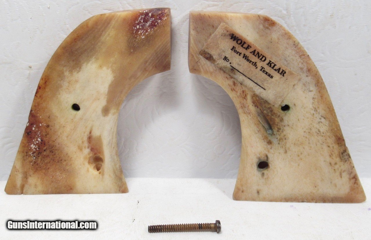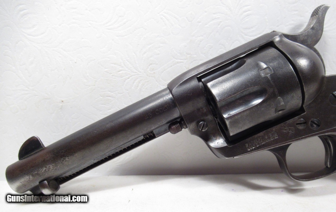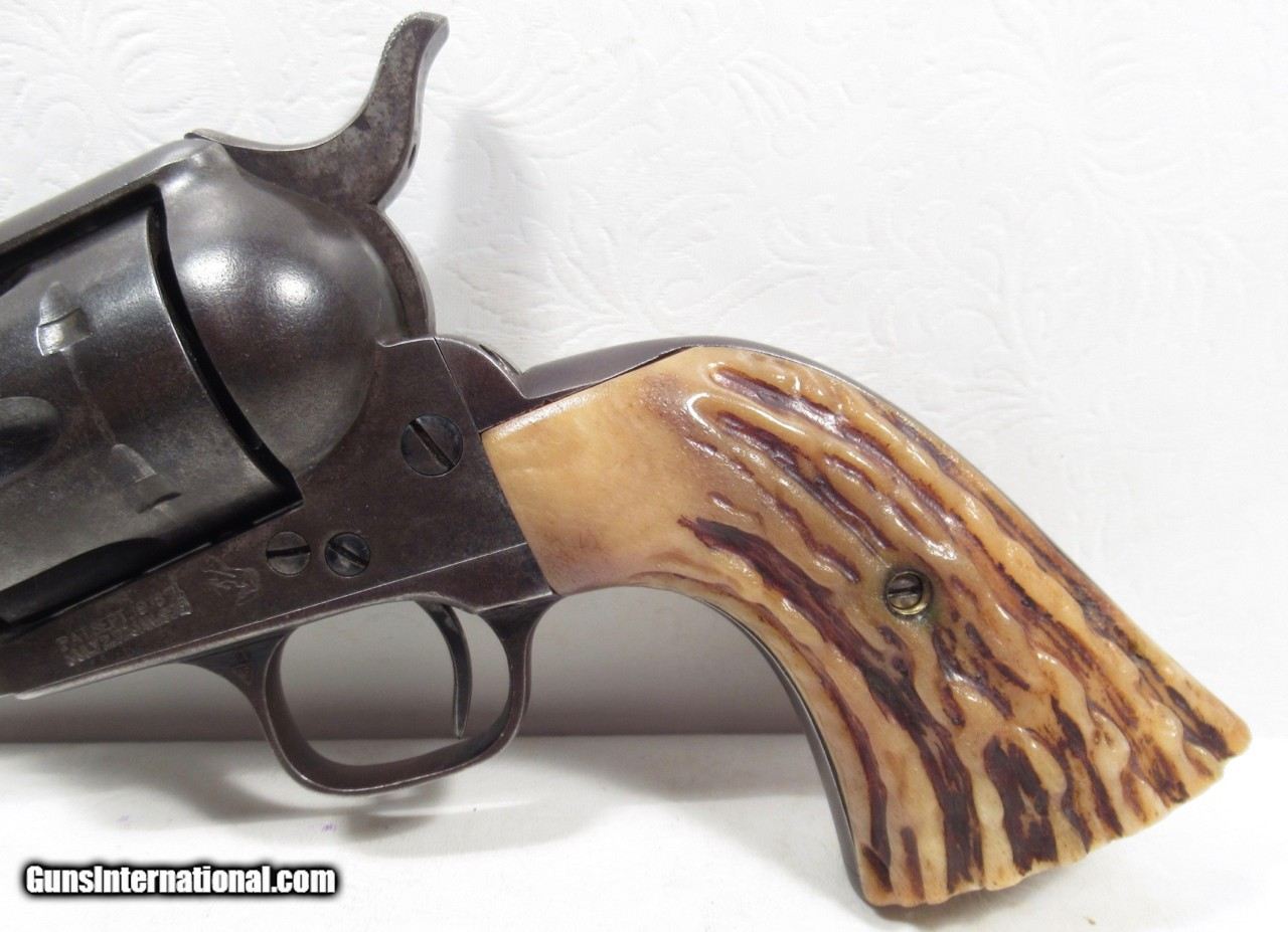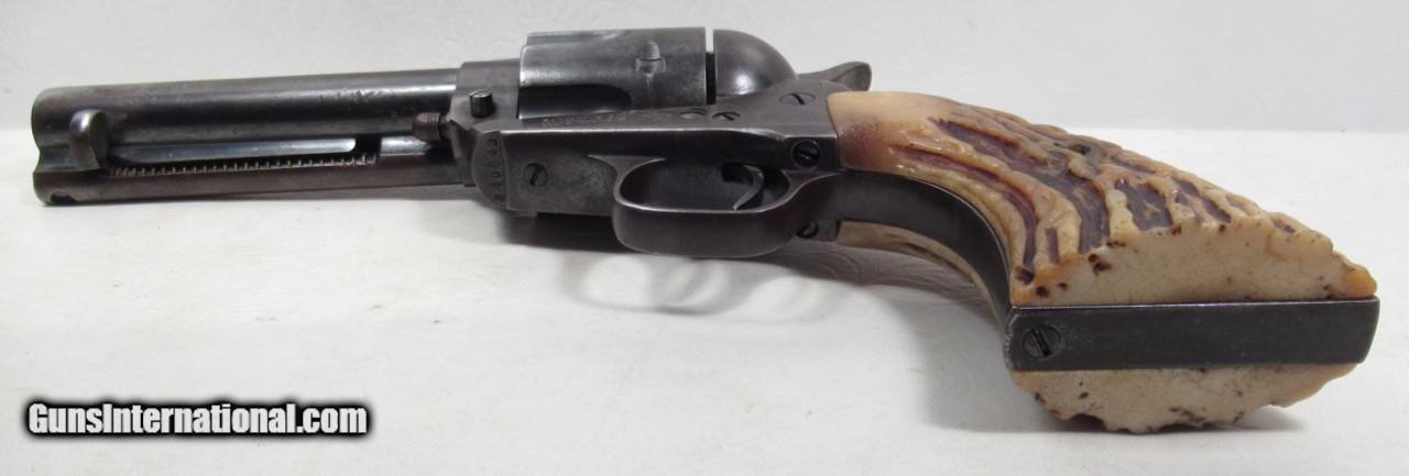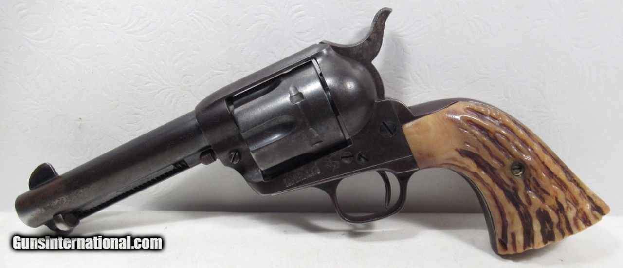 Description: SOLD--Colt Single Action Army Revolver; Serial No. 340643; Per Included Factory Letter: .45 Caliber with 4 ¾” Barrel and Blue Finish; Shipped to Wolf & Klar of Fort Worth, Texas on March 18, 1921 as Part of a 6 Gun Shipment; Revolver Has Wolf & Klar Marked Jig Bone Grips; Original Metal Finish has turned dark with Good Amount of Blue and Case Showing; Perfect Tight Action and Very Strong Bore with some chattering; Excellent Original Screws; Full Front Sight; All Numbers Matching; This 101 Year-Old Colt Came Out of a Ft. Worth Area Estate; See All Photos for Condition; No Texts; Call (254)541-5765 or Email Only; PERSONAL PROPERTY of Harold Wieser; Price: $4,975 + $45 S&H Via USPS PRIORITY MAIL; Payment Address: Harold Wieser - 1466 U.S. Hwy 77 - Rosebud, TX 76570; SEND PAYMENTS VIA USPS PRIORITY MAIL; BEWARE of SCAMS!!! – DO NOT SEND MONEY or CORRESPONDENTS ELECTRONICALLY UNLESS YOU HAVE SPOKEN to HAROLD WIESER FIRST! 254-541-5765 SOLD Manufacturer: Colt Model: 1873 Serial Number: 340643 |