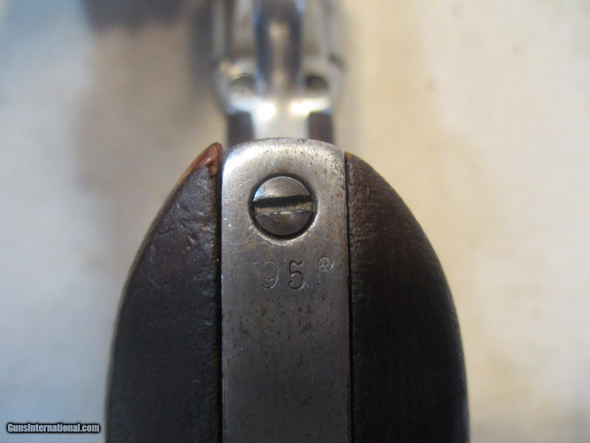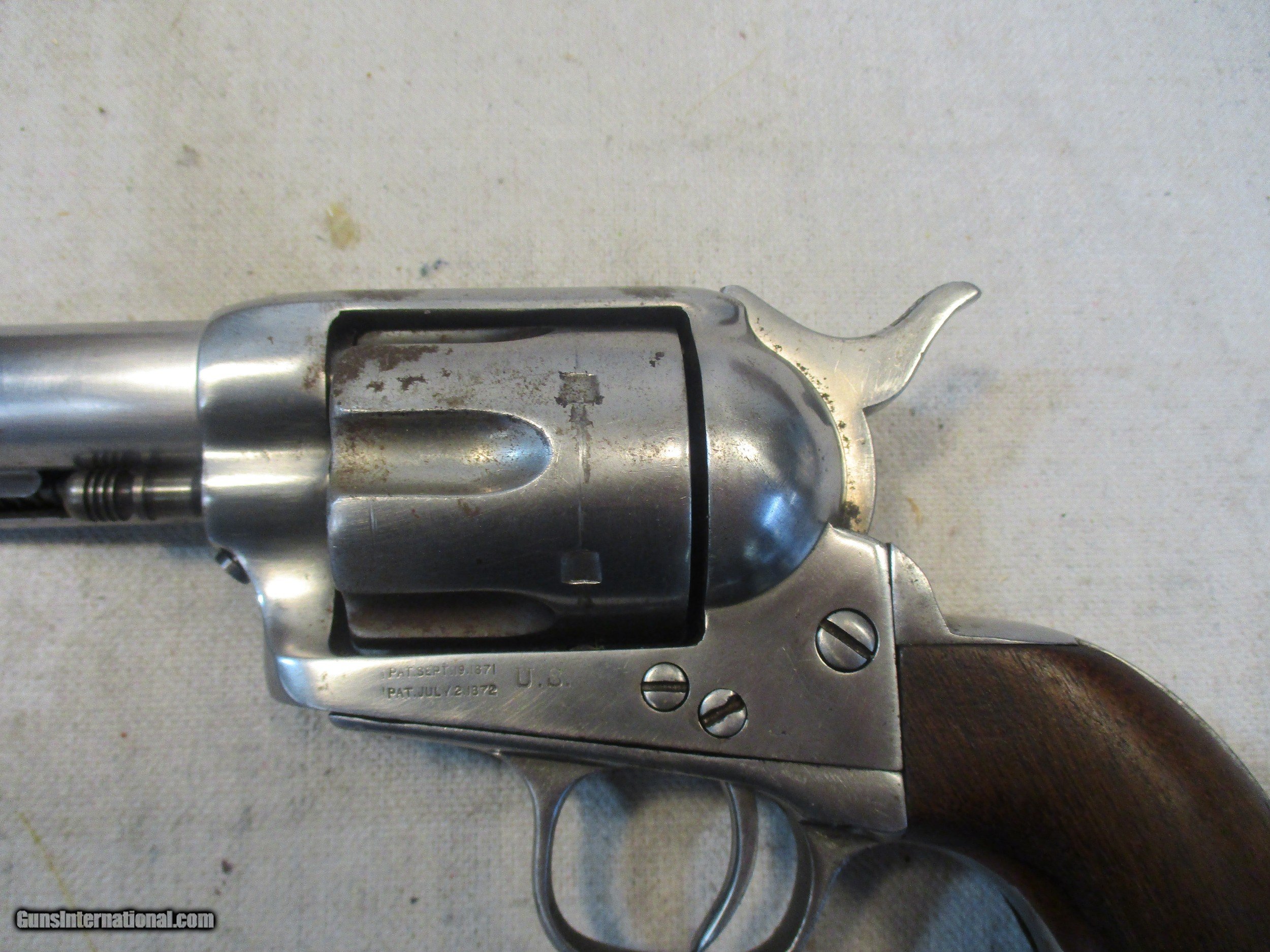 Description: COLT CAVALRY MODEL IST GEN SINGLE ACTION ARMY IN .45LC, MANUFACTURED 1874. FEATURES A 7 1/2" BARREL, NICKEL FINISH ON FRAME AND BARREL, 6 ROUND CYLINDER, AND WOOD GRIPS. STAMPED U.S. ON THE LEFT SIDE OF FRAME. THE GUN HAS BEEN REBARRELED BY PROFESSIONAL GUNSMITH, ALAN HORTON, OF HOUSTON TEXAS. SINGLE LINE ADDRESS ROLE STAMPED ON TOP OF BARREL. EXCELLENT MECHANICS. VERY FINE SHOOTER. 4 CLICKS. Description: *Make: COLT *Mfg: 1874 *Serial#: 958 *Model: CALVARY SAA *Action: SINGLE *Caliber: .45LC *Barrel: 7 1/2"" *Chambers: 6 ROUND CYLINDER *Grips: WOOD *Sights: V NOTCH *Nickel Finish: SOME TRANISH AND WEAR MOSTLY ON CYLINDER *Metal Condition: NO SIGNS OF PITTING *GRIP Condition: NO CRACKS OR CHIPS *Bore Condition: BRIGHT WITH CRISP RIFLING Extras: NONE ******************************************************rcf PLEASE READ OUR FULL DISCLAIMER! Customer Service is available Monday - Friday 10 AM to 5 PM Central Time, to answer questions and emails, or take payments. Reserve prices are not disclosed, so don't ask. Layaway is not offered. Shipping available only within the lower 48 states. We do our best to show everything in the pictures so you know exactly what you are getting. Check out our feedback & purchase with confidence. All items are sold AS IS with NO warranty or guarantees, implied, expressed, or otherwise (Inquire with manufacturers to verify any warranties they may offer). The buyer is ultimately responsible for determining the condition of the item, please ask for additional information or more photos before purchasing if you're unsure. A valid FFL is required for most transactions (C&R Type 3 FFL's are not accepted, NO EXCEPTIONS), and a file copy of the seller FFL will be shipped with the item. Shipping rates will vary based on final sale value, and include ground rates with insurance and signature. Shipping is available within the lower 48 states only. Local pickup is available Monday - Friday, from 10 AM to 5 PM. Accepted forms of payment are charge/debit cards (All Major Credit Cards Accepted), cash (Wire Transfer), money order, Cashiers/Teller/Certified Check or personal check (Item is held for 10 business days to allow ANY checks or money orders (except USPS money orders) to clear). A 3% convenience fee will be added to purchases made with charge/debit cards. Returns are only accepted on a case by case basis depending on the circumstances, and a 20% restocking fee will be charged on all returned or incomplete sells. Have questions, ask. Buyers are solely responsible for determining the safety of items purchased. No firearm should be fired without having the weapon initially inspected by a qualified gunsmith. The firearms offered have NOT been TEST FIRED unless otherwise stated, but have been given a visual inspection for sale purposes only. We are not gunsmiths and can sometimes miss things. It is recommended that buyers have all firearms inspected by a competent gunsmith prior to use. Buyers are solely responsible for their awareness of and compliance with all laws and regulations in their state of residence regarding firearms, ammunition, magazines, accessories, and blades. By purchasing, buyer agrees to release seller from all liability, whether criminal or civil, arising from the purchase, ownership, possession, or use or misuse of items, and against damages, injury or death caused by use or misuse, or defective merchandise. Thank you for your interest & please check out my other listings. SOLD |