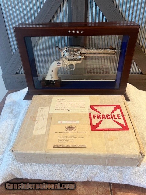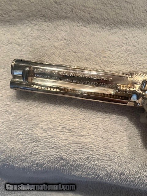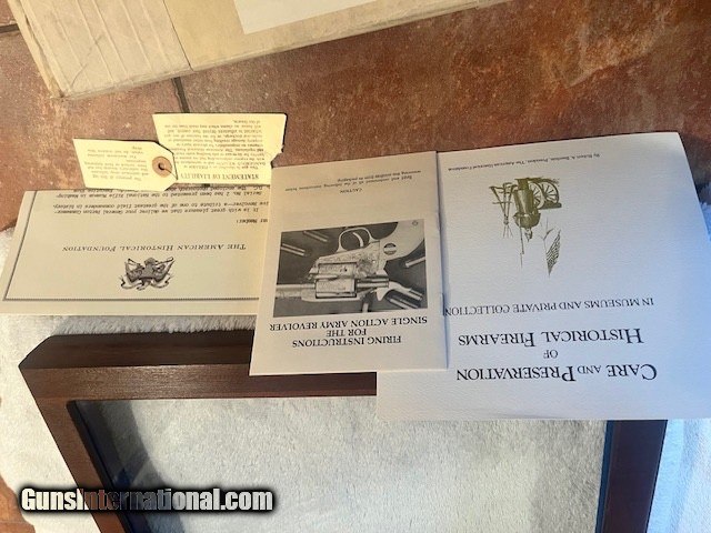 Description: 1987 Uberti American Historical foundation General Patten 45 Colt Hand engraved replica. 1 of 2500 produced in 1987, silver plated and engraved, comes with presentation case, cardboard box and all paperwork. Gun is unfired and unturned since it left the factory almost 40 years ago, silver plate is in excellent shape, shows some tarnishing in a couple spots, I e never attempted to polish it. $35 shipping FFL to FFL Zelle, Cashiers, USPS MO, Credit/Debit add 3% Handgun Caliber: .45 Colt Price: $2,100.00 Shipping: $35.00 Buy Now Contact Seller |