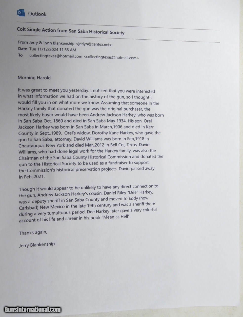 VERY FINE ANTIQUE COLT S.A.A. 44/40 REVOLVER from COLLECTING TEXAS – FACTORY LETTER – SAN SABA COUNTY, TEXAS HISTORY