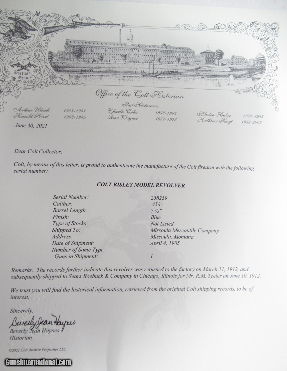 VERY INTERESTING TEXAS/MONTANA HISTORY COLT BISLEY 45 from COLLECTING TEXAS – SHIPPED to MISSOULA MERCANTILE, MONTANA