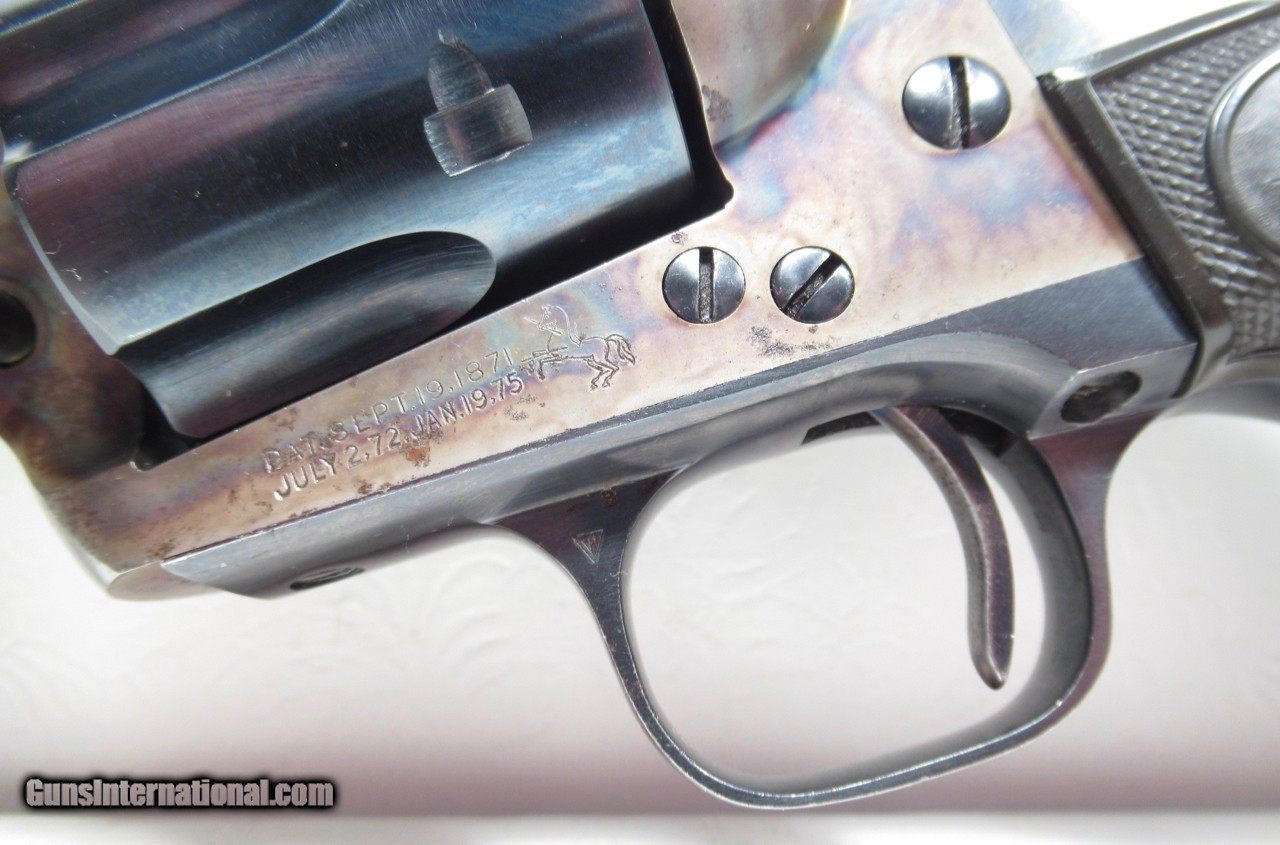 Description: Colt Single Action Army Revolver; Serial No. 354322; Per Included Factory Letter: .45 Caliber with 5 ½” Barrel and Blue Finish; Shipped to National Matches, Camp Perry, Ohio and Sold to L. Youngberg of Chicago, IL. on September 18, 1931 as a 1 Gun Special Shipment and Furnished with a 3 ½ lb. Trigger Pull; Special Features and Probably a Trophy Gun; Nearly All Original Metal Finish Remains; Perfect Grips Numbered to Gun; Perfect Action and Bore; Rare 100% Original Colt 45; 91 Year-Old Single Action Army Revolver; See All Photos for Condition; No Texts; Call (254)541-5765 or Email Only; PERSONAL PROPERTY of Harold Wieser; Price: $8,975 + $45 S&H Via USPS PRIORITY MAIL; Payment Address: Harold Wieser - 1466 U.S. Hwy 77 - Rosebud, TX 76570; SEND PAYMENTS VIA USPS PRIORITY MAIL; BEWARE of SCAMS!!! – DO NOT SEND MONEY or CORRESPONDENTS ELECTRONICALLY UNLESS YOU HAVE SPOKEN to HAROLD WIESER FIRST! 254-541-5765 SOLD Manufacturer: Colt Model: 1873 Serial Number: 354322 |