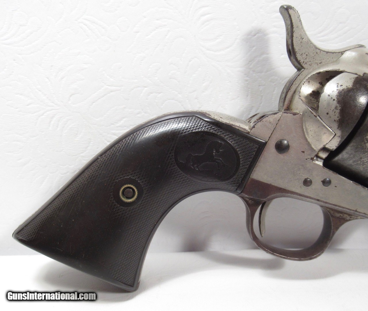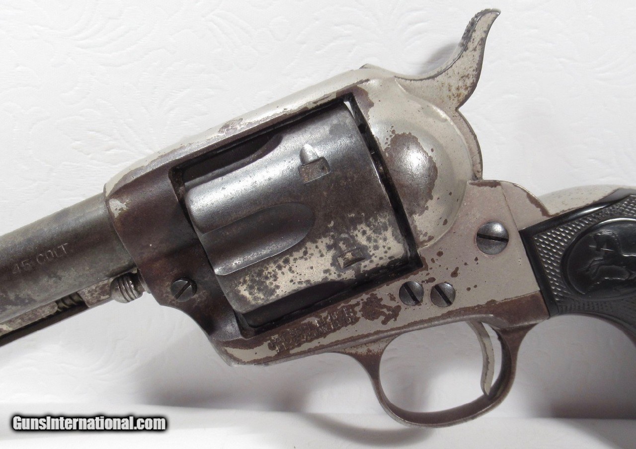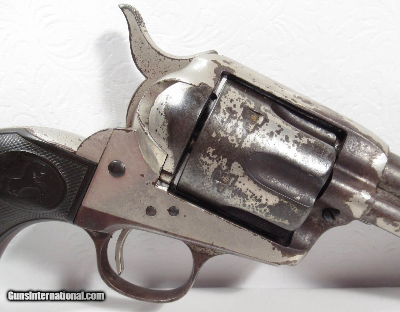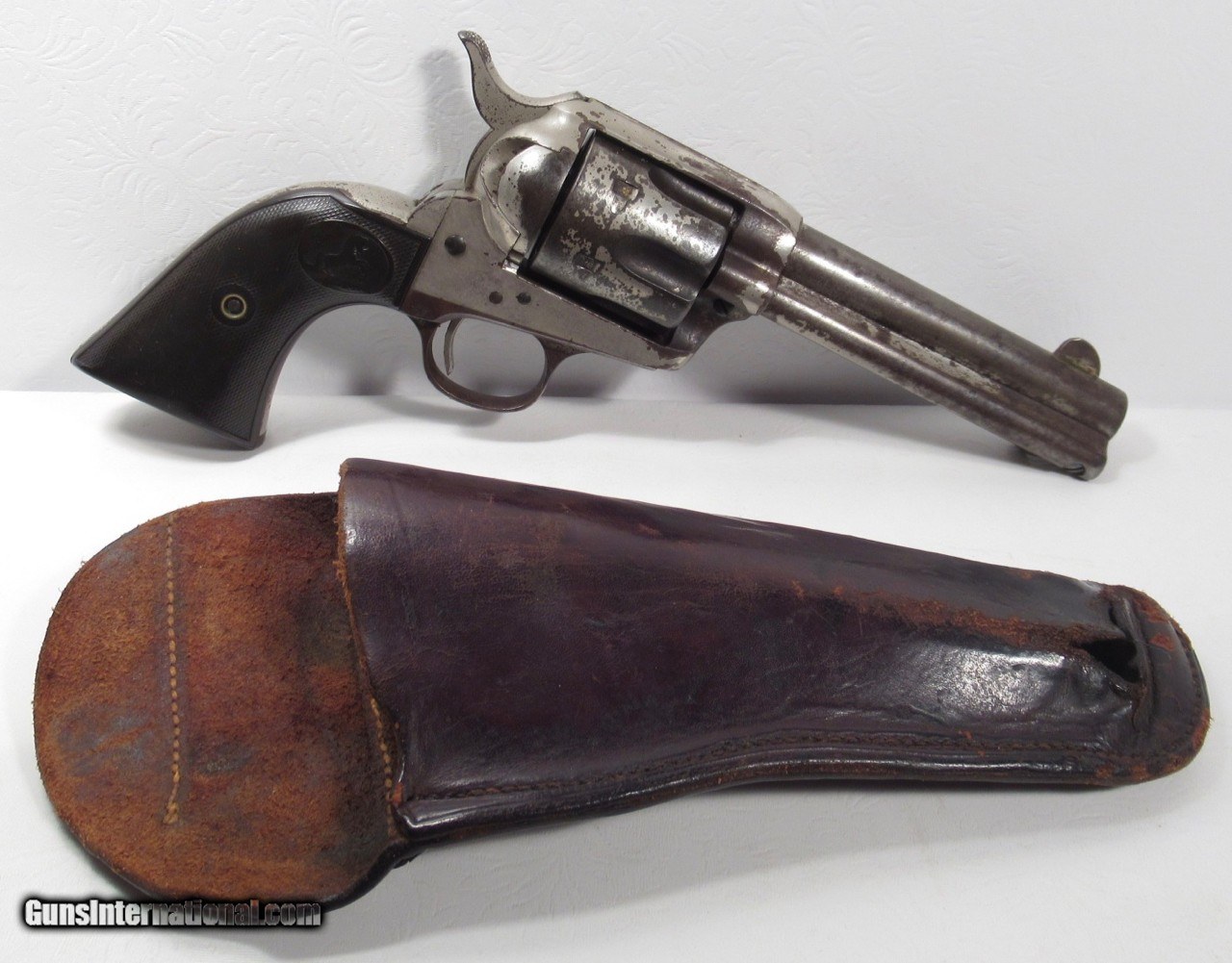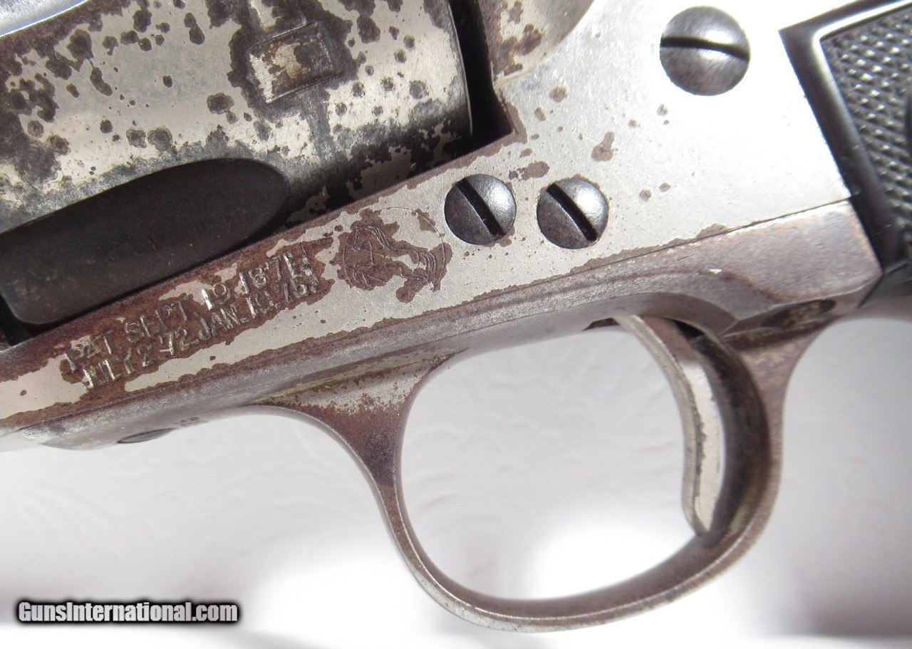 Description: Colt Single Action Army Revolver; Serial No. 195765; Per Included Factory Letter: .45 Colt Caliber with 4 ¾” Barrel and Nickel Finish; Shipped to Walter Tips of Austin, Texas on May 26, 1900 as Part of a 6 Gun Shipment; This Gun Came Out of Belton, Texas in 1993; Gun is 100% Pure-Correct-Untouched and Matching, Not Even a Screw Turned; Comes with Original Holster; Perfect Action and Near Perfect Bore; Pure 123 Year-Old Texas Colt 45 Revolver; See All Photos for Condition; No Texts; Call (254)541-5765 or Email Only; PERSONAL PROPERTY of Harold Wieser; NOTICE: We Do Not Do Any Consignments - All Items Listed are Owned by Us - NO SALES to New Jersey or New York City - Antiques Only to Massachusetts and California; Price: $9,975 + $45 S&H Via USPS PRIORITY MAIL; Payment Address: Harold Wieser - 1466 U.S. Hwy 77 - Rosebud, TX 76570; SEND PAYMENTS VIA USPS PRIORITY MAIL; BEWARE of SCAMS!!! – DO NOT SEND MONEY or CORRESPONDENTS ELECTRONICALLY UNLESS YOU HAVE SPOKEN to HAROLD WIESER FIRST! 254-541-5765 SOLD Manufacturer: Colt Model: 1873 Serial Number: 195765 |