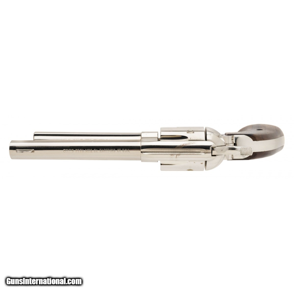 SN:57019SA. Made in 1970. .45 with a 5.5"" barrel. Bore is shiny with strong rifling. 2nd Generation Colt SAA. Nickel finish is in very good condition with light wear noted. Wood grips are in near excellent condition. Revolver comes with box and paperwork. Overall very good condition. Consignment