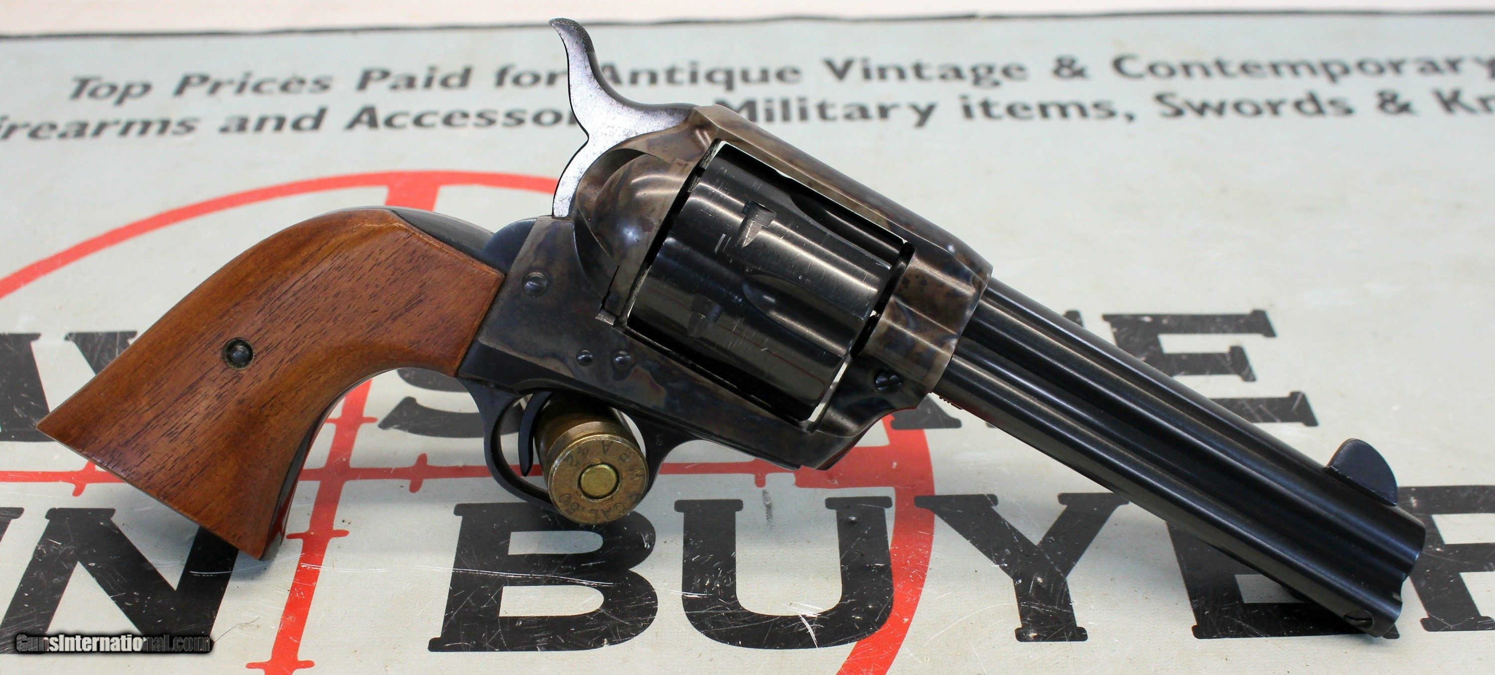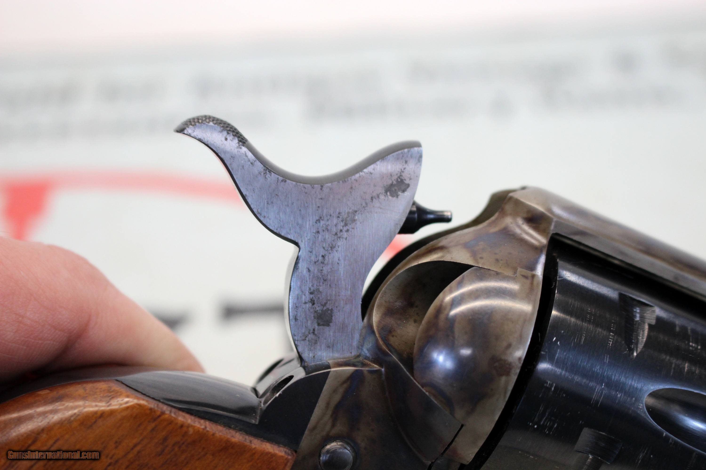 Description: We are offering for sale a 1960 COLT SAA single action revolver chambered in 45 Colt caliber. This is a HIGH CONDITION 2nd Generation example that comes in the original old style box with manual and booklet. 4 3/4" barrel is very good to excellent with somevery light handling wear. Bore is bright with crisp rifling. The receiver remains very good to excellent showing light handling wear; BRILLIANT CASE COLORS. Cylinder shows some wear from use. No damage noted; Gun functions flawlessly. The original wood grips are very good with light some handling wear. No chips or cracks. ATTRACTIVE EXAMPLE! The original box remains good with storage, age wear; Cover slightly out of form. Original manual included. VERY COLLECTIBLE EXAMPLE! SHIPPING VIA USPS PRIORITY FOR $49.95 PLEASE NOTE: WE DO NOT TAKE PAYMENT INFORMATION THROUGH THE . WE TAKE ALL INFORMATION DIRECTLY OVER THE PHONE. 508 835 5400. PLEASE BE PREPARED TO CALL US WITH PAYMENT INFORMATION WHEN THE SALE IS COMPLETED ONLINE. (508) 835 5400. WE ONLY ACCEPT MASTERCARD & VISA PAYMENTS. WE CHARGE A NON-NEGOTIABLE 3% CC FEE Please know the legality of any weapon in your state before . If a gun can’t be transferred to you we will charge a 15% re-stocking fee. Also, we are a PART TIME business, Only in office Wednesday through Saturdays 10am-4pm. If you make an offer on Sunday-Tuesday we may not get back to you for 24+ hours, please send us an email with any questions, and we will do our best to get back in a timely manner. Thank You. We are not a shop open to the public, no private viewings. We stand behind our descriptions, and gladly take returns, however we know based on the descriptions given, you will not be disappointed. No Face To Face Transfers! Please note: Clicking "buy" does not guarantee that this gun is yours, However clicking “Buy” will reserve this gun for you, if it hasn’t been sold in store. We will try to do our best to remove the posts as efficiently as possible, but sometimes delays may ensue. “Buy” is your safest bet to reserve a gun. Also please add 6.25% MA state sales tax (if from MA) and 3% credit card shop courtesy fee. After Clicking “buy” we will need the following from you, via email before we ship. 1: A copy of your preferred FFL’s license via email () 2: Your preferred method of payment (If Credit card: 16 digit, MM/YY exp date, 3 digit code Plus billing address) 3: Your Shipping information/ Your preferred FFL’s Shipping information. You have 5 business days to arrange payments and ffl information to us. Any purchase not completed within this time frame will be cancelled, and the ad will be put back active online. Please before calling with concerns read these conditions and meet them accordingly. SOLD Curio/Relic: Yes |