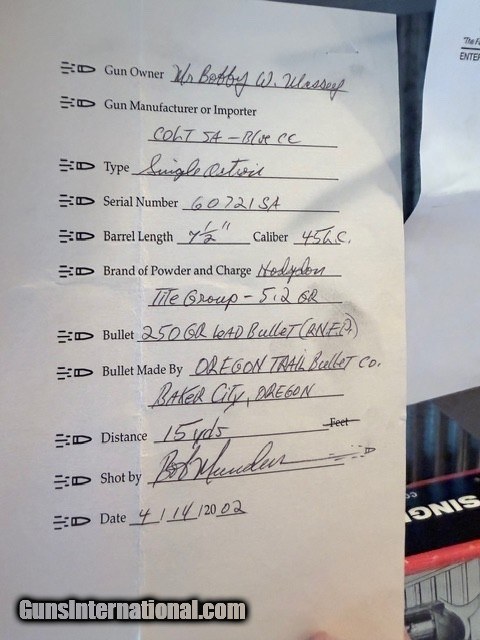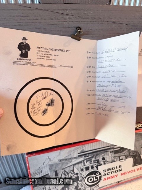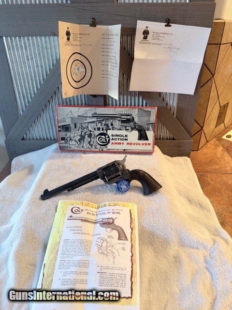 Description: Beautiful condition 1970 Colt Single Action Army in original stagecoach box and papers. Revolver is chambered in 45 Colt with a 7.5 inch barrel. The revolver was sent to Munden Enterprises where Bob Munden (fastest drawing history) did his custom work on it. Revolver is mechanically perfect with an extremely smooth action, Bob did the work and test fired the gun, target included. Bob also included a personal note on his shooting on the target. There is a photo that shows the work that was done on the Colt. $25 shipping FFL to FFL Zelle, Cashiers, USPS MO, Credit/Debit add 3% Handgun Caliber: .45 Colt Price: $3,300.00 Shipping: $25.00 Buy Now Contact Seller |
