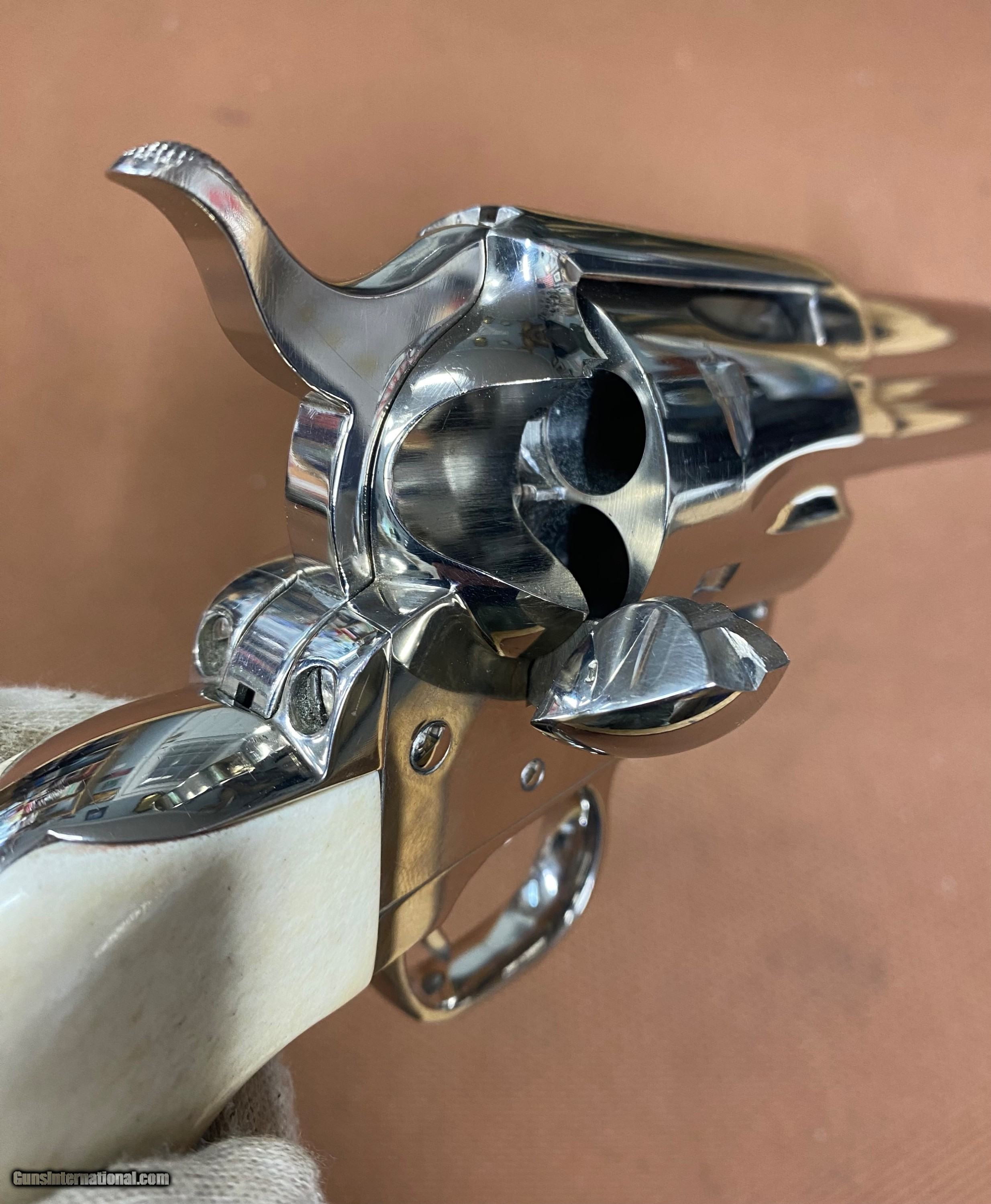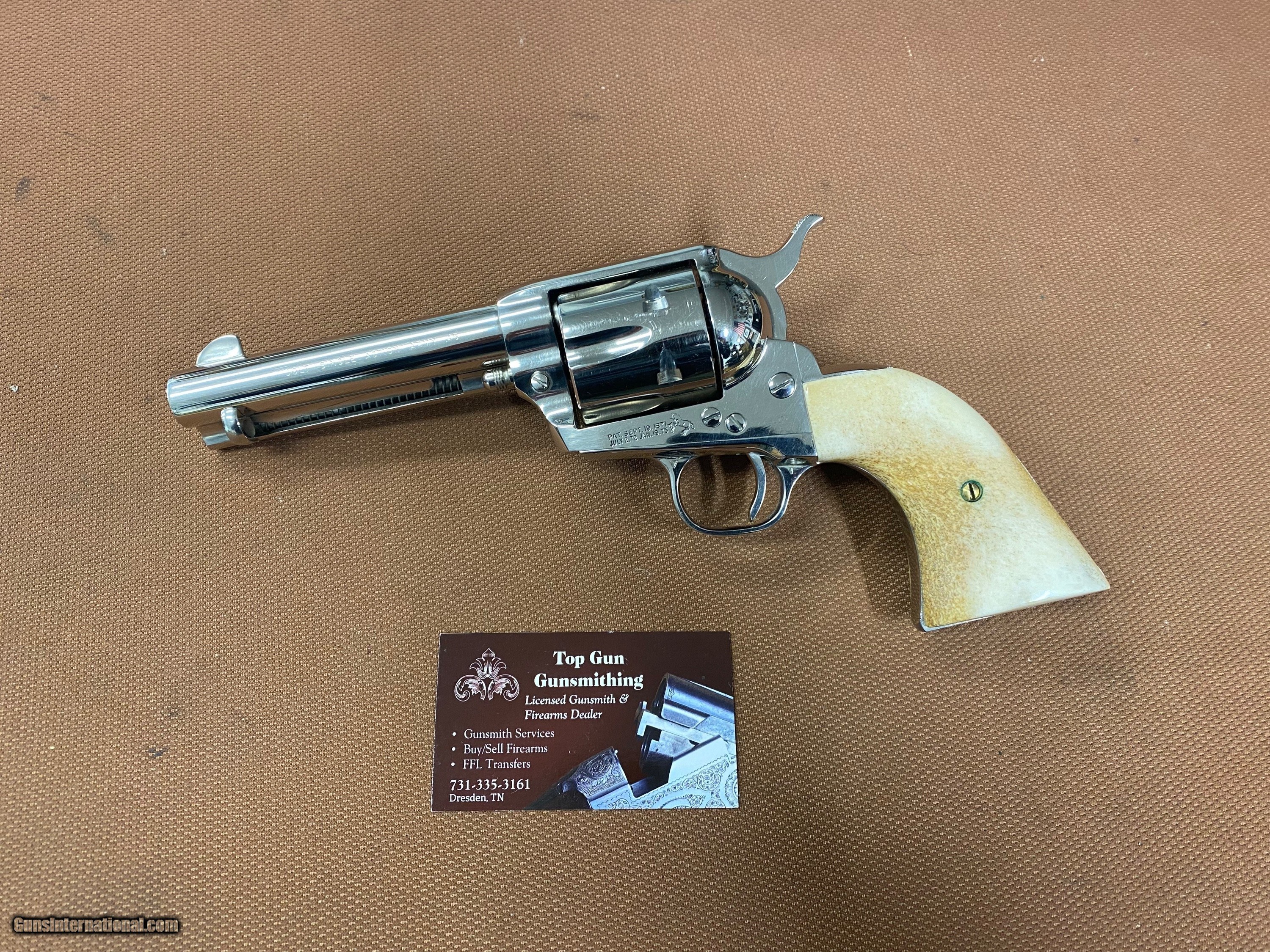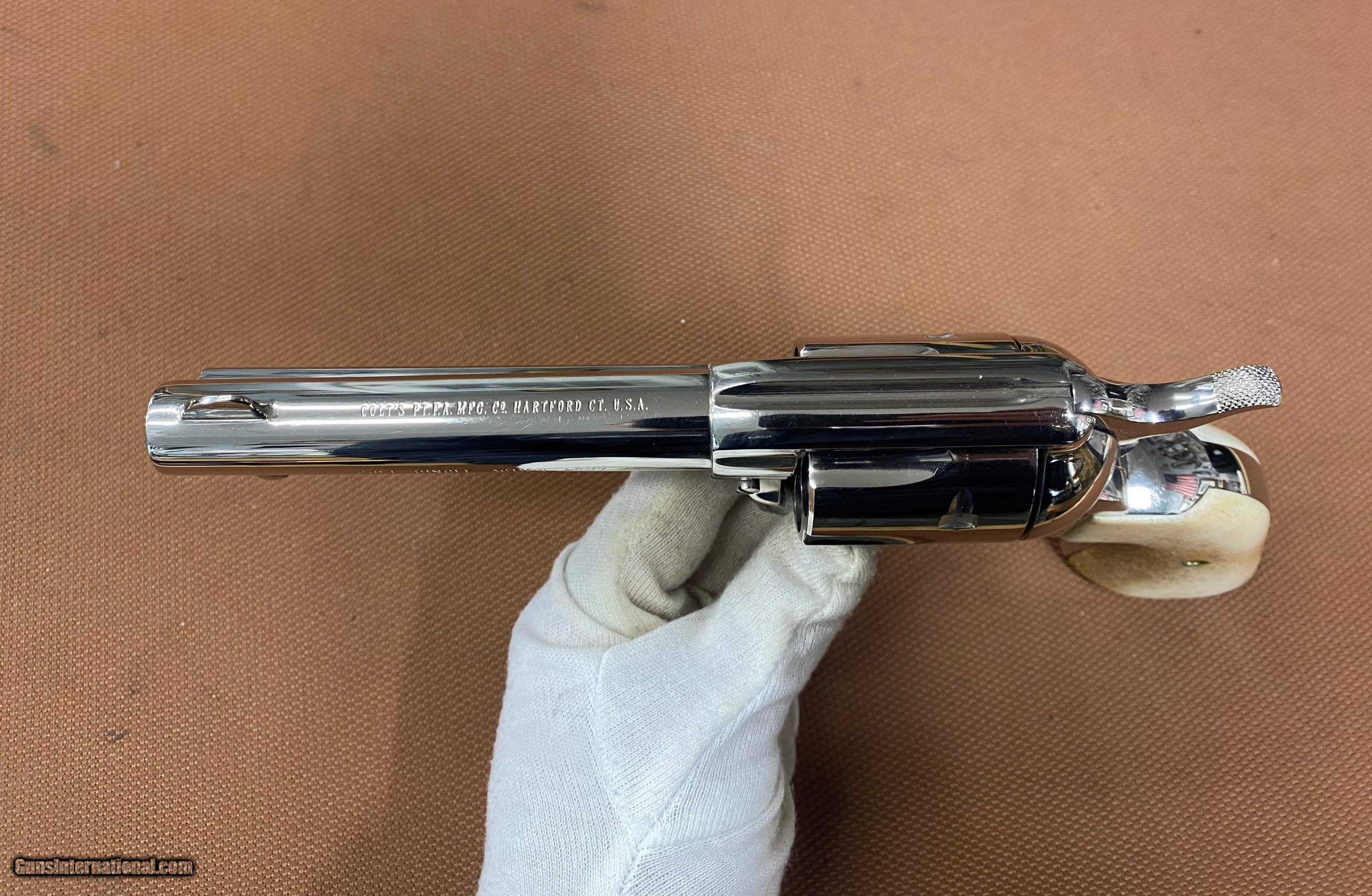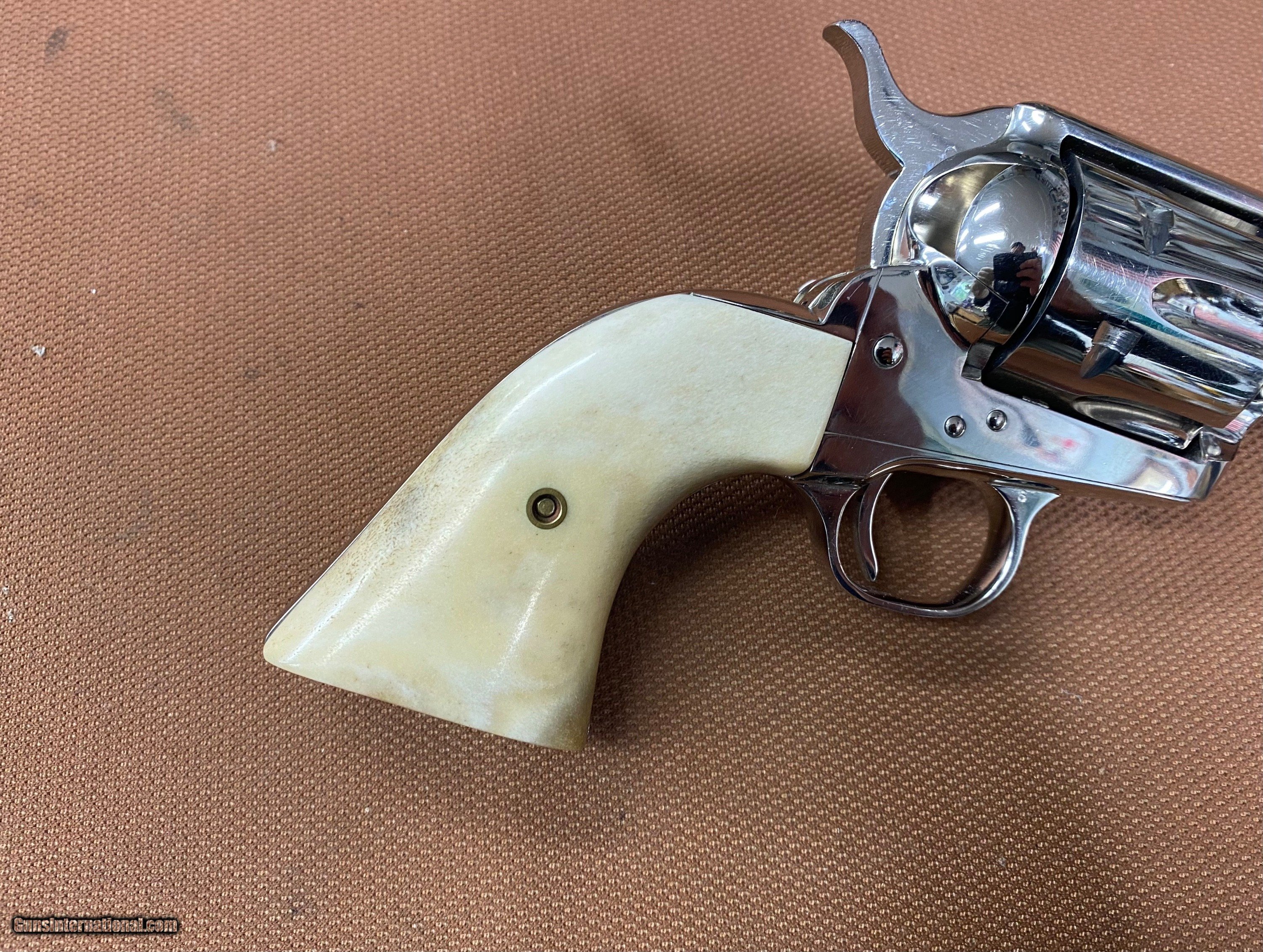Beautiful Colt SAA Single Action Army 2nd Gen 45 Colt, 4 3/4”, Nickel, Bone Grips