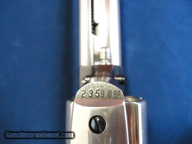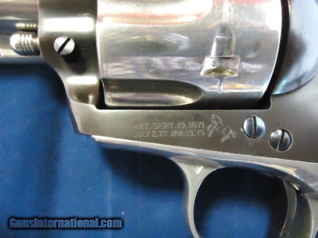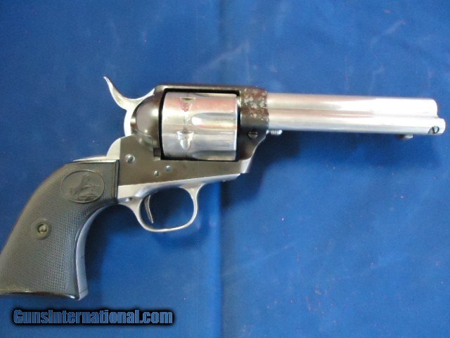 Description: Up for sale is a nice Colt Single Action Army chambered in .45 LC with a 4 3/4 " barrel. It was made in 1959 as seen by the serial number 23598 SA. This revolver has been completely customized for fast draw shooting to include a high hammer and wide trigger. The front sight has been removed and the revolver has been nickled as shown. This revolver has extremely smooth action and very well balanced. It comes in a rare Colt wooden display box. This revolver is definitely a great shooter for fast draw competitions or just having a little fun while out target shooting. But Please remember, this action is very smooth and the trigger is very light. So be SAFE! Please take a very good look at the pictures provided and ask any and all questions that you might have before buying this revolver. And, Please take a minute to check out the other firearms that I have listed on here as well. I'm sure that you may find that certain firearm that you've been looking for. I also have a very rare U.S.F.A single action army chambered in .45 LC / .45 ACP that was color case hardened by Turnbull. Absolutely beautiful ! SOLD Manufacturer: Colt Model: S.A.A Serial Number: 23598 SA Barrel Length: 4.75 Caliber Info: .45 LC Condition: Very good Bore Condition: very good Action: single |