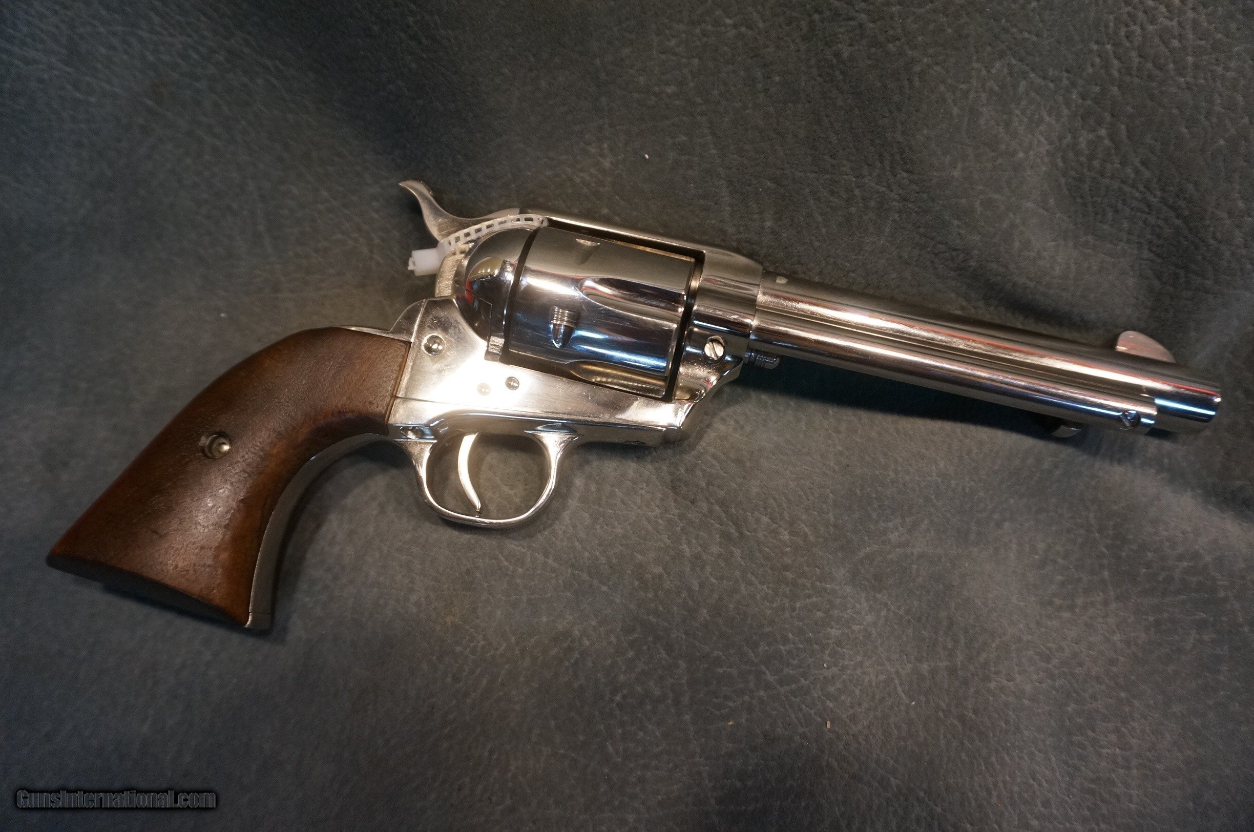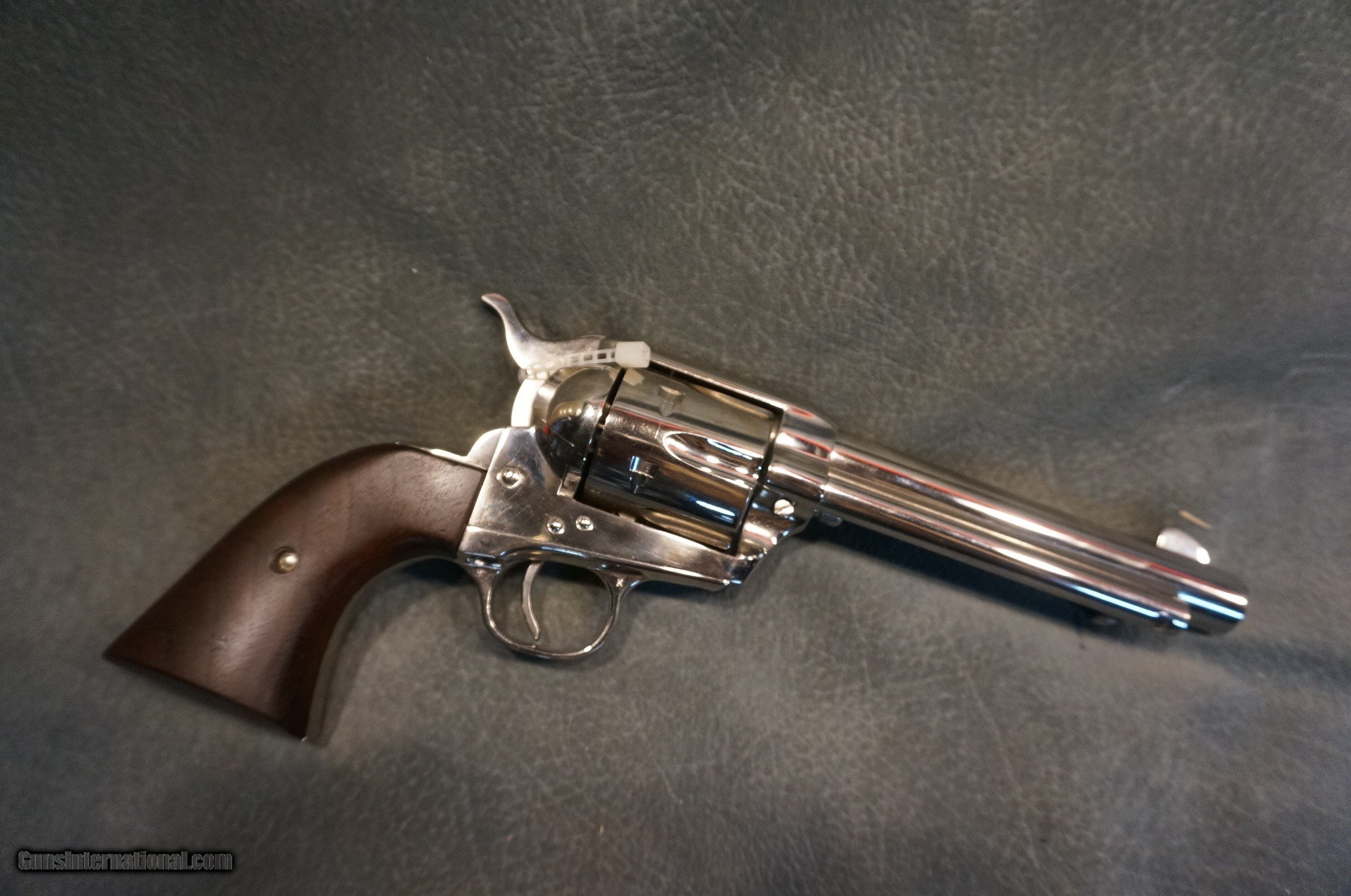Description: Colt SAA 2nd Generation 357Mag 5 1/2" barrel,nickel,made in 1969,consecutive # pair,serial #49617SA and 49618SA,new unfired condition,no boxes,$1799 each for the pair or $1899 for just one. GUN COLLECTIONS WANTED FOR CASH! We buy, sell, consign and trade new and used firearms. This is our 43rd year in business. We offer 90 day layaways with 20% down. No return on layaways. Firearms will need to be transferred through a FFL dealer. Prices reflect a cash discount. There will be 3% added to credit card sales. We trade for gold and silver. THANK YOU! SOLD |