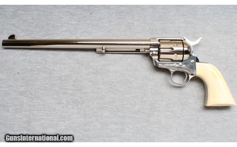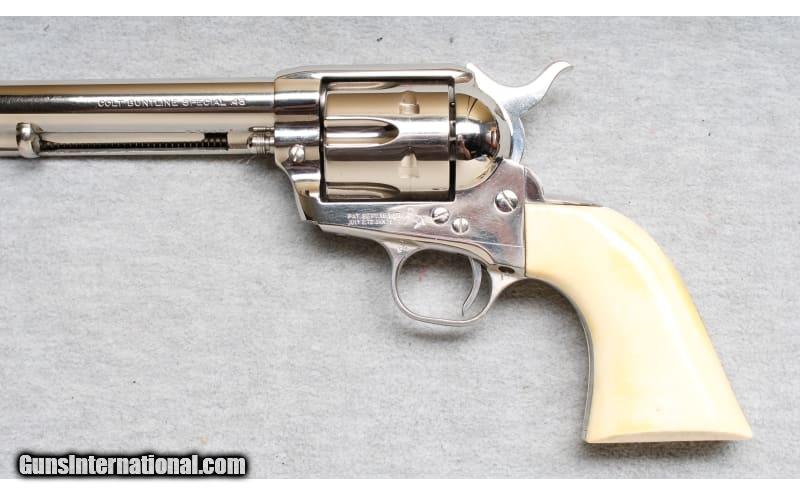 Description: Excellent, very few light wear and handling marks. Comes with factory letter (see photo). Of the 3,900 2nd generation Buntlines produced (1957 to 1974), only 65 had nickel finish - making this a unique opportunity to add a rare Colt SAA to your collection. .45 Colt SOLD Chambers: Revolver Metal Condition: Excellent Bore Condition: Bright Barrels: 12 Triggers: Single action Butt Pad: Factory grips Sights: Fixed sight channel Item Location: La Vista, NE |