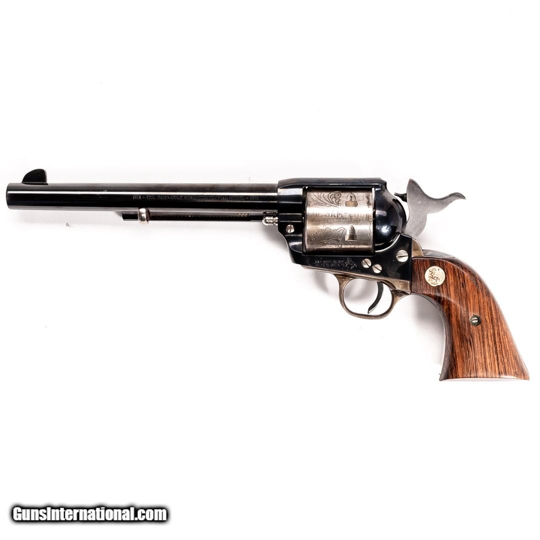Description: Guns Listing ID: 287096 For sale is a limited production run Colonel Sam Colt Sesquicentennial 1814-1964 manufactured by Colt. This Single Action Army pattern revolver is heavily decorated and ships in a wooden presentation case with a book. There is no medallion coin with this package. This revolver is in very good condition, with some small scratches on two sides of the barrel and a ring and marks on the cylinder. Serial number: 1538SC SOLD Curio/Relic: Yes Manufacturer: COLT Model: COLT SINGLE ACTION ARMY 1814-COL.SAM L COLT SESQUICENTENNIAL MODEL-1964 Caliber Info: .45 COLT Condition: Used - Certified Barrels: 7.5 BARREL Finish: TWO-TONE |