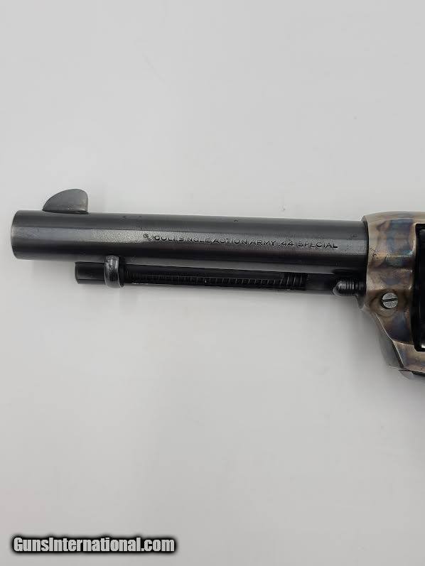 Description: Guns Listing ID: 448796 1965 Colt SAA Gen II 44 special. Factory case hardened, 5.5\" barrel. Ultra faint drag line. No Box. SOLD Curio/Relic: Yes Manufacturer: COLT Model: COLT SINGLE ACTION ARMY Caliber Info: 44 SPECIAL Condition: Used - Non-Certified Barrels: 5.5 BARREL Finish: CASE HARDENED/BLACK |