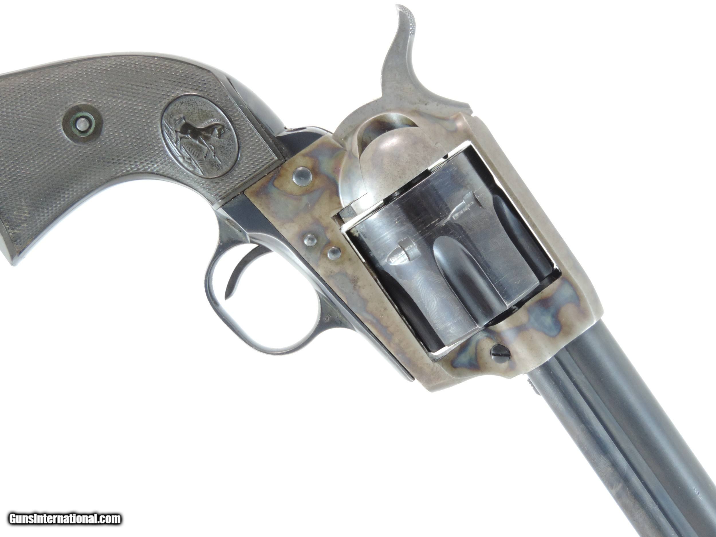 Description: Inv. 7638 Colt S.A.A. (Single Action Army), 2nd Gen. 7 1/2" Barrel, Cal. .38 Special Mfg. 1957. Super condition. It retains about 98+% of the factory finish. The only loss is from hairline scratches on the cylinder and some sharp edge and muzzle silvering. The rest of the gun is great. The original case colored frame is perfect as is the frame. The grip straps show little or no graying. The black plastic grips and the grip screw are perfect. The cylinder face, recoil shield and force cone show very little use. The bore is sunshine bright with razor sharp rifling. A real find for the investor/collector and should be great fun at he camp. Only...... Shipped....... $1895*** ***You know what you are getting before you buy from Mr. Minty. To purchase this firearm or if you want to request more information contact us at: Email ckguns[at]ymail[dot]com Phone 201-512-0002 Cell 201-575-6838 FAX 201-215-4759 We accept most major credit cards. Prices shown are Discounted 3% for Cash or Check. The buyer must be familiar with all the laws governing the purchase and the ownership of firearms in their own city and state. The Yankee Armorer, Inc is not responsible for any failure to comply with or observe these laws. The Yankee Armorer, Inc will only ship after full payment and receipt of all required documents. Shipping: Add $35.00 for handguns, $45.00 for long guns. New Jersey buyers are subject to a 7% sales tax. The Yankee Armorer, Inc offers a 3 day inspection period with full refund upon return of intact firearm and in the original condition. The Yankee Armorer, Inc offers a no interest lay away program - 25% down; 25% in 30 days; 25% in 60 days; and full payment in 90 days. Any violation of this policy is subject to restocking and forfeiture of all payments. Any variation from this policy must be agreed to in advance. Unshipped Cancelled sales are subject to a 20% restocking fee. Be advised that all firearms sold by The Yankee Armorer, Inc. or the Gun Exchange, LLC (SELLER) are sold as collector’s items. They have not been fired or tested for safety and must be examined by a license gunsmith prior to use. By purchasing any item from the (SELLER), you are agreeing to hold the (SELLER) free from any damages or lawsuits of any nature. Any item left for transfer or storage will be charged to $25.00 per month, per item from the day of its receipt. Any variation from this policy must be agreed to in advance. Store hours 10:00 am to 5:00 pm Tuesday -Saturday. It's always best to call for appointment. Store 201-512-0002, cell 201-575-6838. SOLD Curio/Relic: Yes Manufacturer: Colt Model: Single Action Army Caliber Info: .38 |