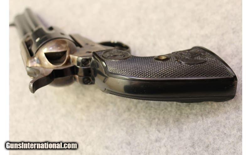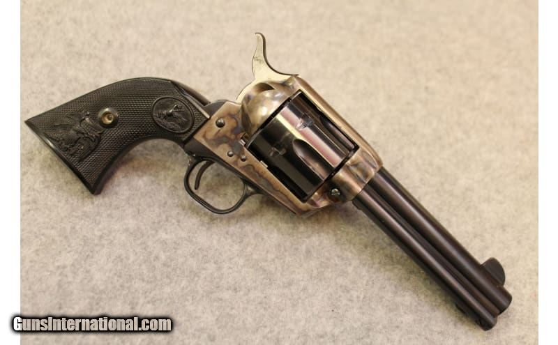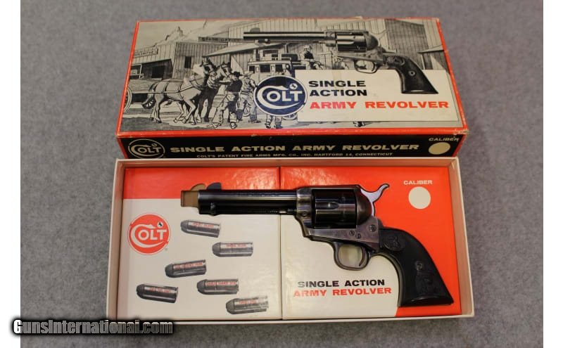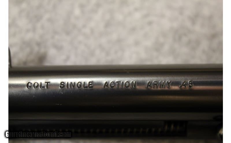 Description: This Colt Single Action Army 2nd generation manufactured in 1973 chambered in .45 Long Colt features, color case-hardening frame and blue finish on the barrel as well the cylinder, four and half inch barrel, and Colt checkered grips.The Single Action Army is in excellent mechanical shape and surface finish as well. The SAA does have a moderate cylinder ring. .45 Long Colt SOLD Metal Condition: Excellent Bore Condition: Bright Barrels: 4.5 Weight: 2.2 lbs. Item Location: Hoffman Estates, IL |