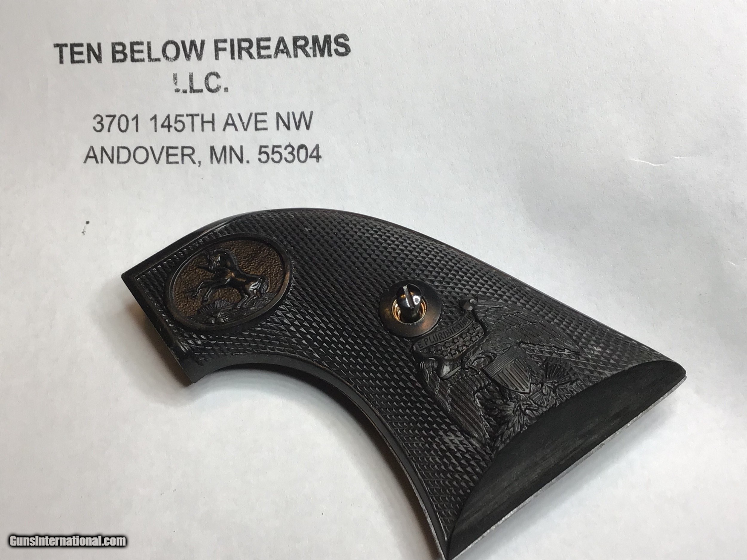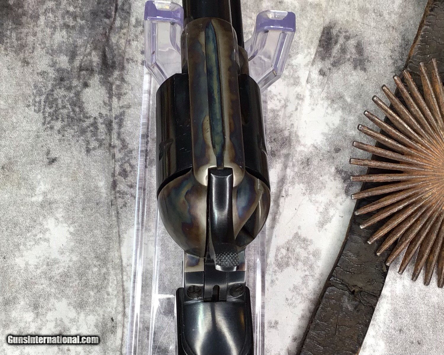 Description: Bob Munden Enterprises takes often brand new revolvers and reworks them thoroughly and often refinishes them to an exquisitely fine finish. They receive custom grips but originals are sent back with the gun. Each gun is accurized and a 5 shot target comes back to owner with the gun. This gun comes in its original box with all paperwork. These Munden guns are highly sought after. This gun has an amazing trigger job. This 1973 Colt SAA, 2nd Generation. Wearing a 5.5 inch barrel and Bob Munden Ent. Custom grips,with factory grips in box. Stagecoach Colt box with original purchase receipts, certificate from Bob Munden with test target certifying his custom upgrades and acurizing of this handgun. Blued finish on barrel and grip frame with case colored frame. No holster wear, gun appears to have been fired very little. Add 3% if paying with credit card. God Bless America from a proud American, and a Viet Nam Vet , thankful for our freedoms.. paid for by the Blood ,Sweat and Tears of our brave men and women in uniform. Ten Below Firearms is a Veteran owned and operated business. We specialize in out of production models of high quality firearms. We love to ship! If you are out of state or can't make it to our store, just give us a call! Handguns normally ship for $30 and Long guns for $40 to $55 for extra length long guns. That's 2-3 day USPS Priority shipping, Delivery conformation and with tracking number. Optional Postal insurance is additional $1.50 per $100 and highly recommended SOLD Handgun Caliber: .357 Magnum Manufacturer: Colt Model: SAA Serial Number: 65063SA Barrel Length: 5.5 inch Chambers: 6 Condition: Excellent Metal Condition: Very good Bore Condition: Very good Barrels: 5.5 inch Action: Single Action Finish: Blued/case colors Manufacture Date: 1973 |