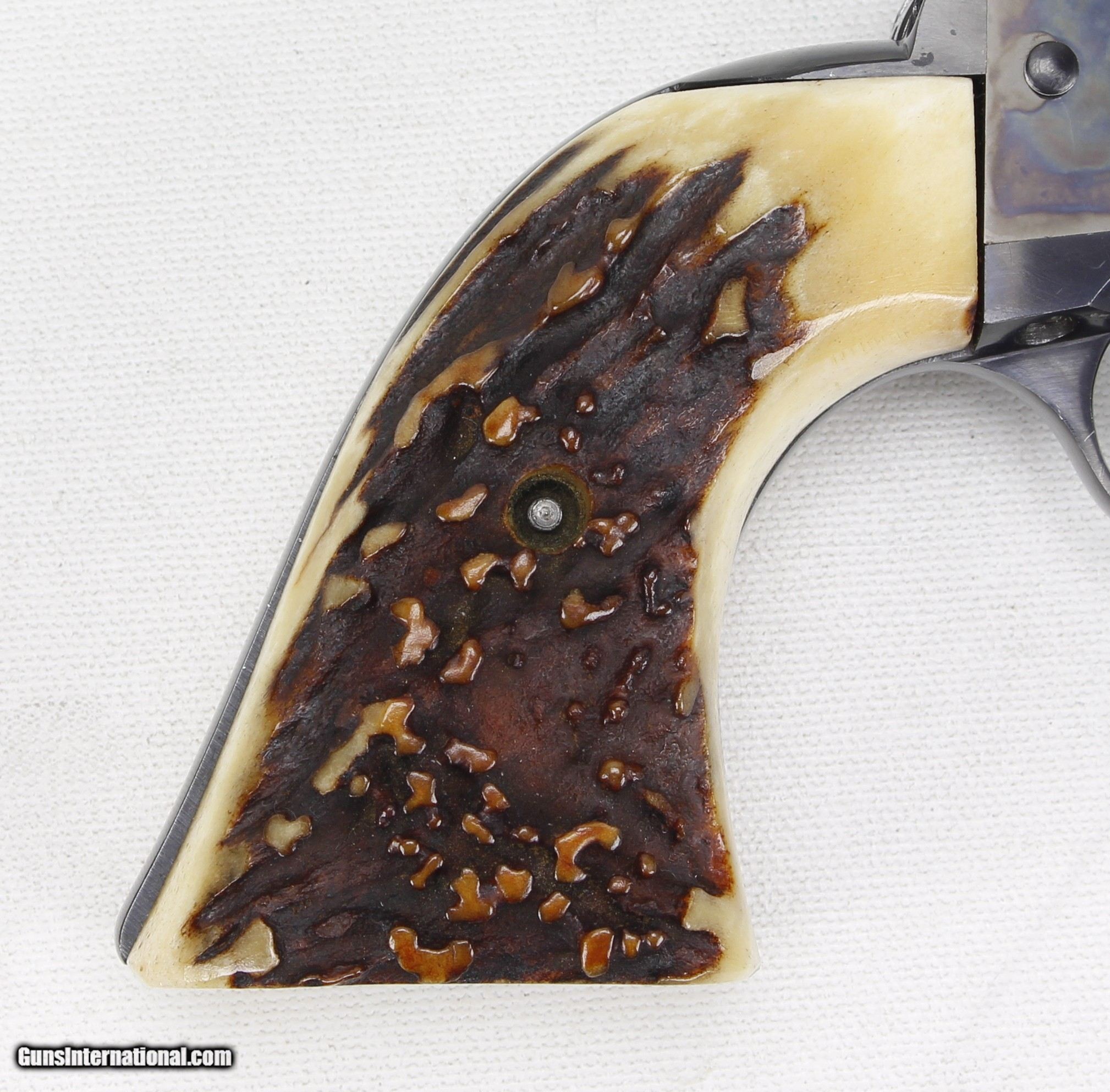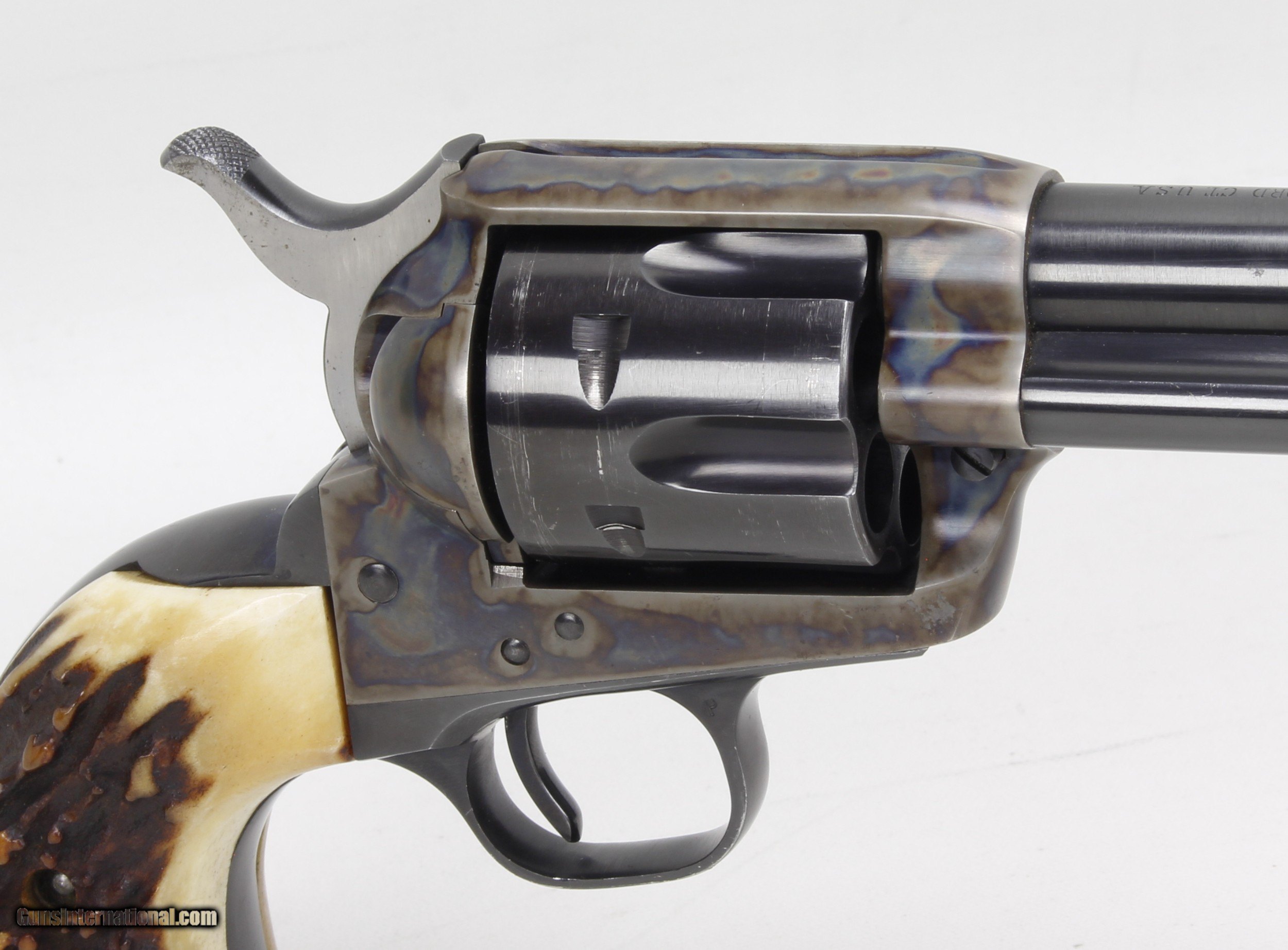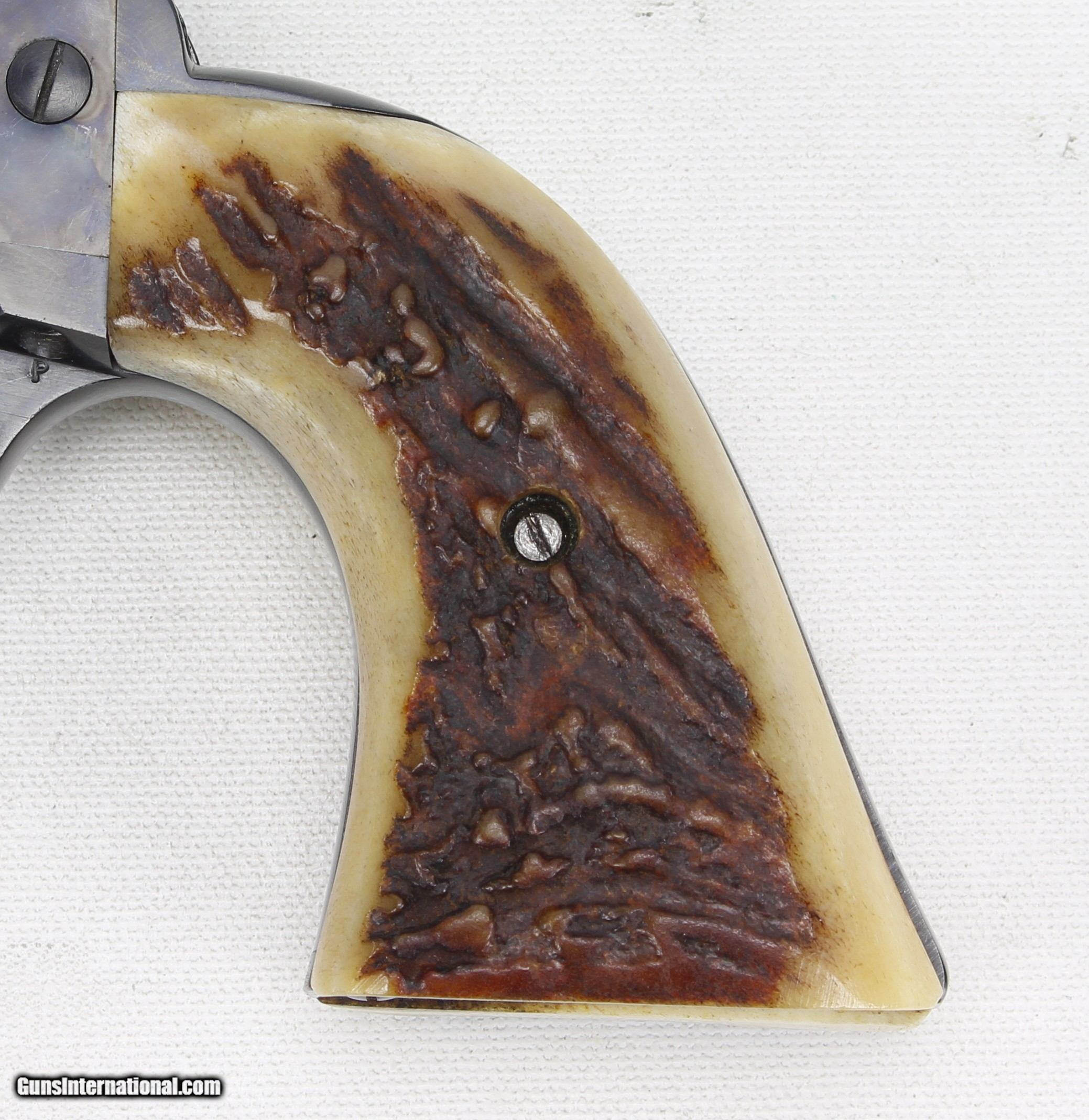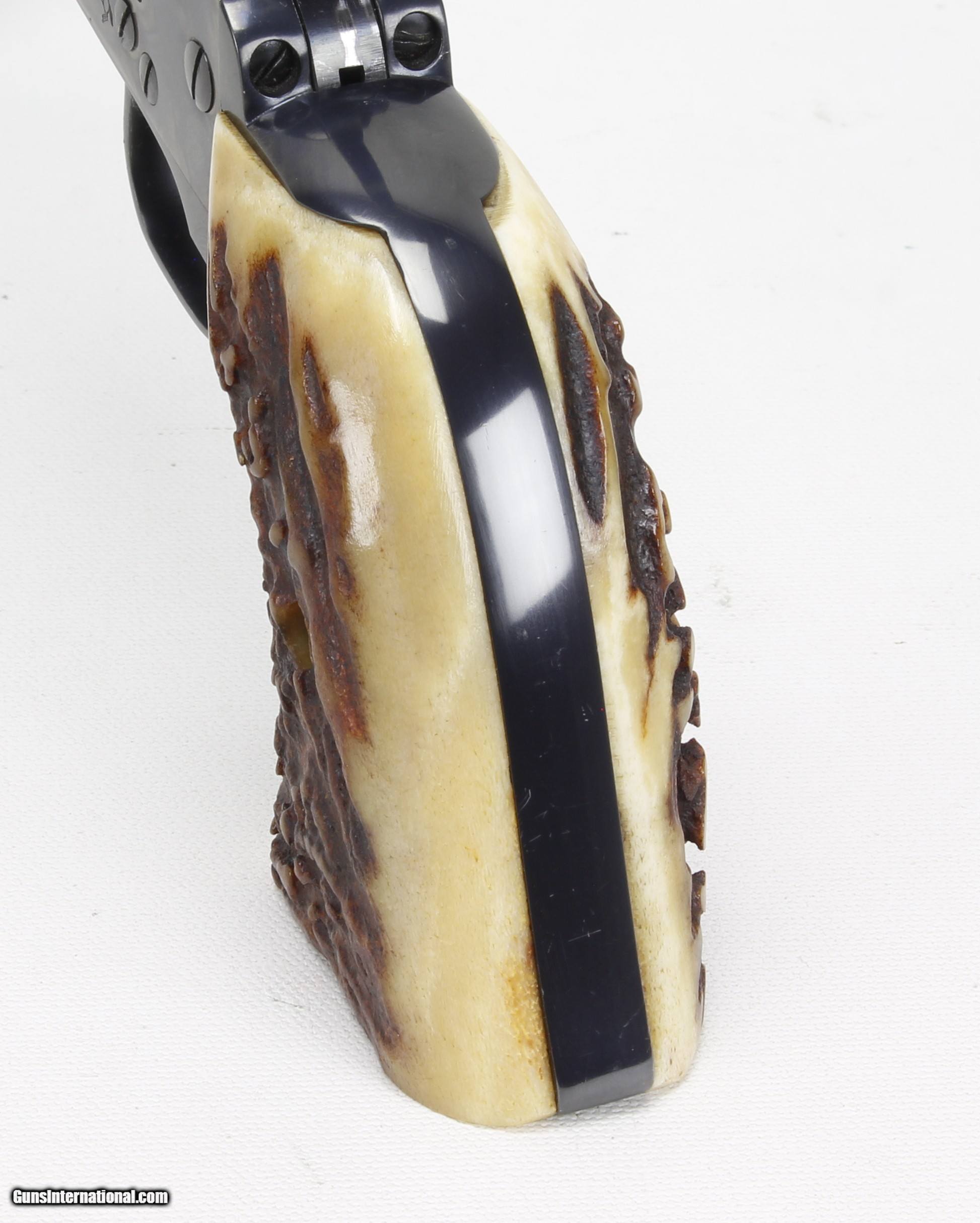 Description: Colt SAA 2nd Generation Revolver in .44 Spl. SN #26454SA. Mfg. in 1959. 7 1/2" barrel with an excellent bright bore with strong rifling. The blued barrel and cylinder are in very good condition with just some wear and drag lines on the cylinder. The case colored frame is in excellent condition. The Stag grips are also in excellent condition. The .44 Spl. caliber is the second most desirable after .45 Colt. Includes a Colt Letter of Documentation. This would make a fine addition to any Colt SAA Collection. Ships Lower 48, W/ Insurance $35.00. SOLD Curio/Relic: Yes Manufacturer: Colt Model: SAA 2nd Gen. Serial Number: 26454SA Barrel Length: 7 1/2 Caliber Info: .44 Spl. Condition: VG Metal Condition: VG Bore Condition: Excellent Finish: Blue / Case Colored |