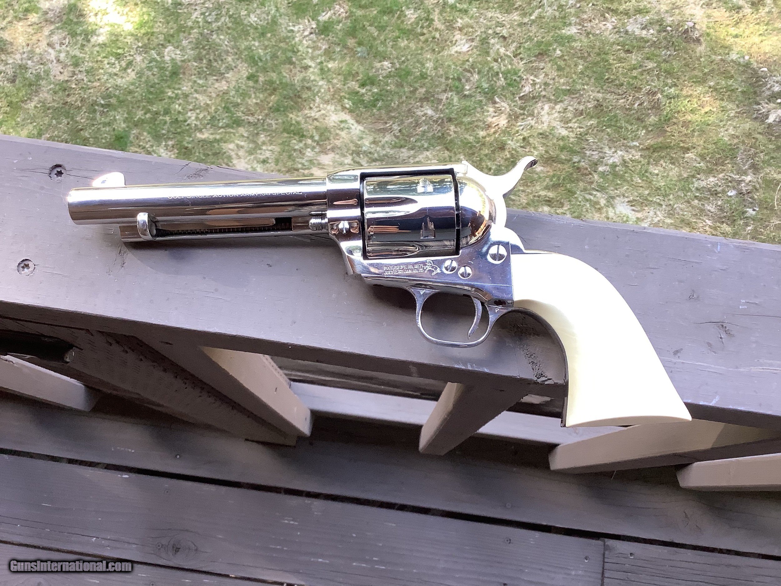 Description: SALE PENDING Colt SAA .38 special, 2nd generation, made in 1959, nickel finish, 5 1/2" barrel, light cylinder drag line, solid mounted firing pin, excellent bore, timing and lock up. Custom American Holly grips made by Rockwood Grips. Shipping will be $60.00, which includes insurance, from our FFL to your FFL dealer. SOLD Manufacturer: Colt Model: SAA Serial Number: 28275SA Barrel Length: 5 1/2” Condition: Excellent Metal Condition: Excellent Wood Condition: Excellent Bore Condition: Excellent Action: Single Finish: Nickel Sights: Fixed Manufacture Date: 1959 |