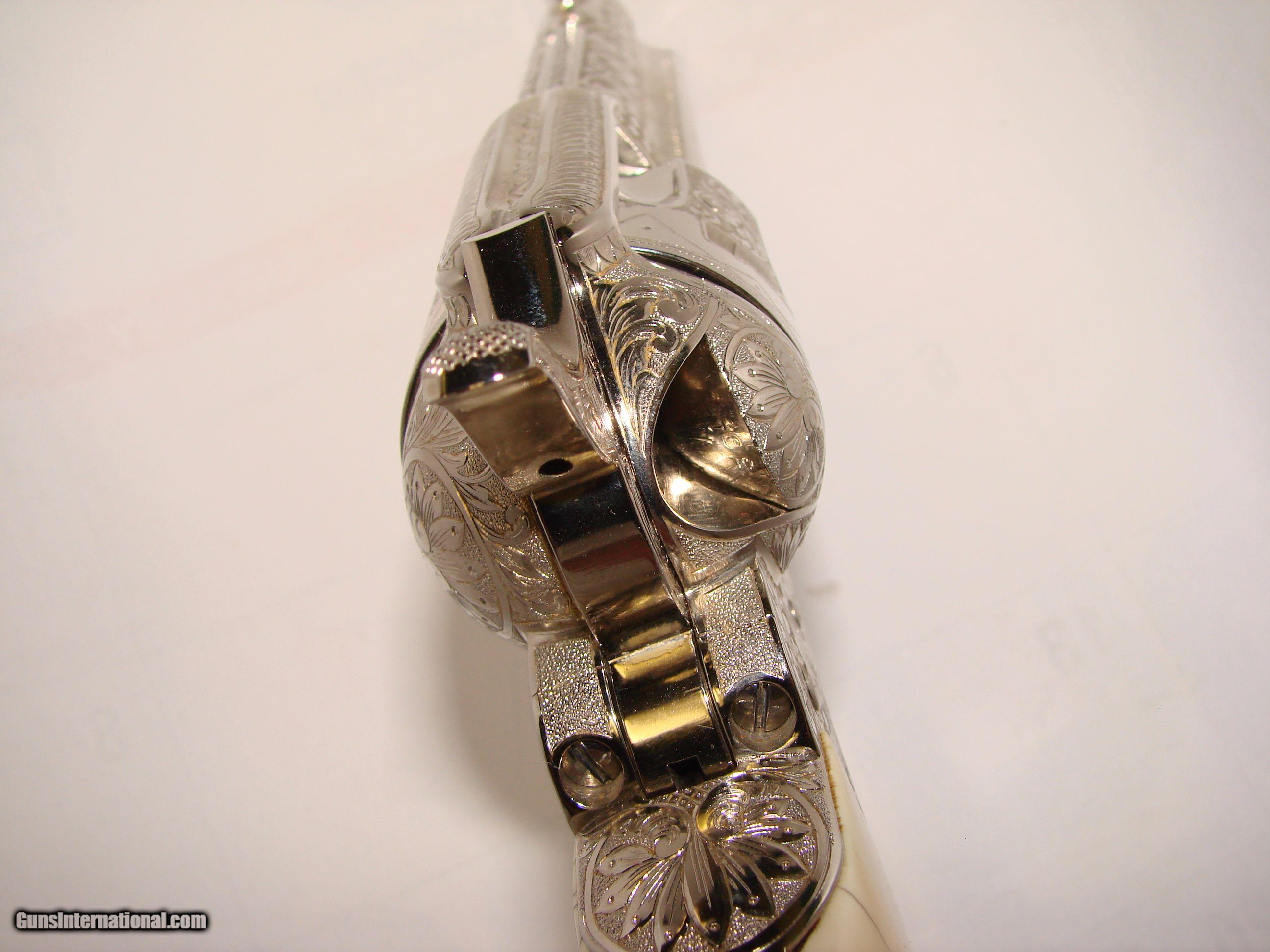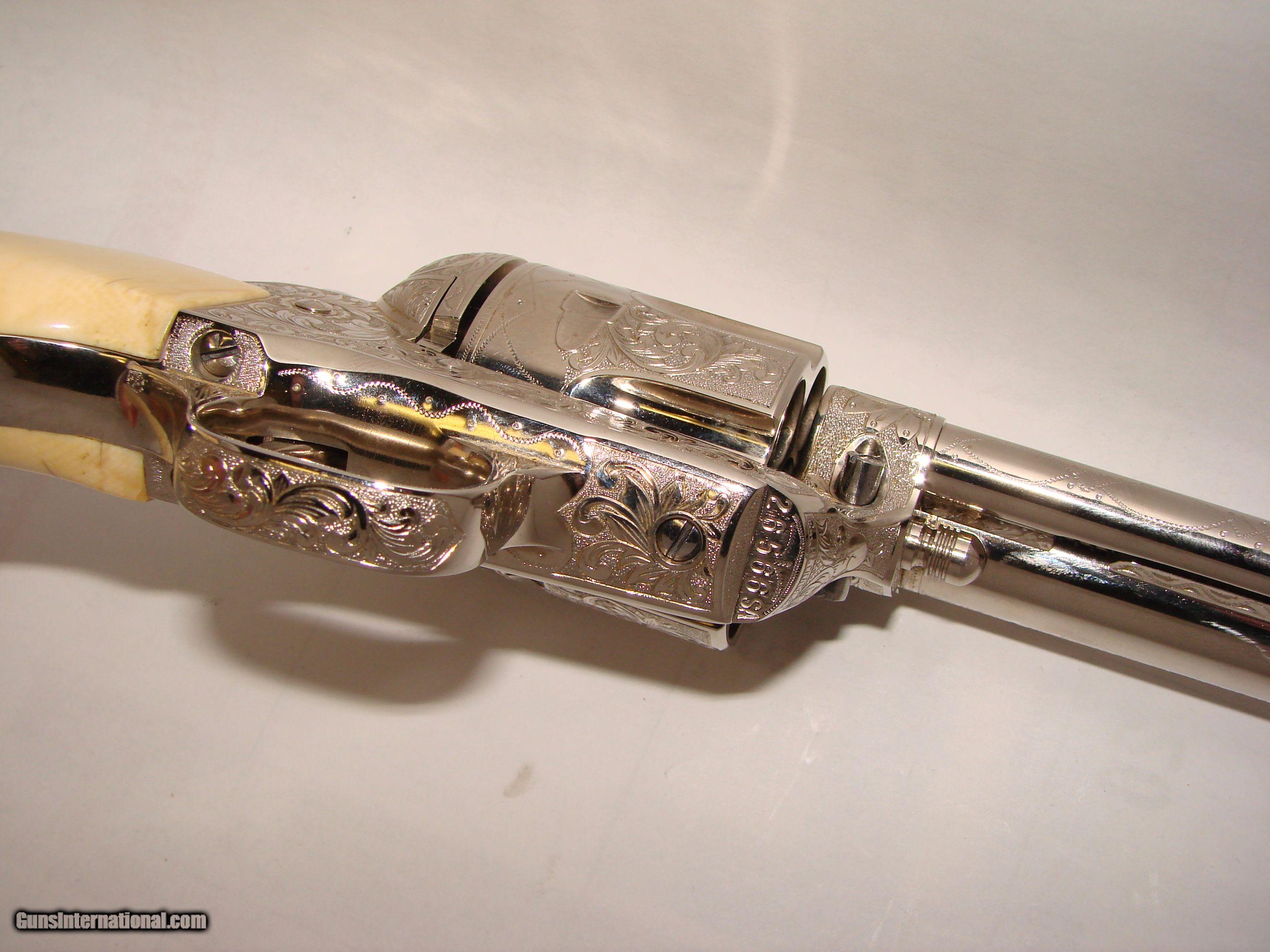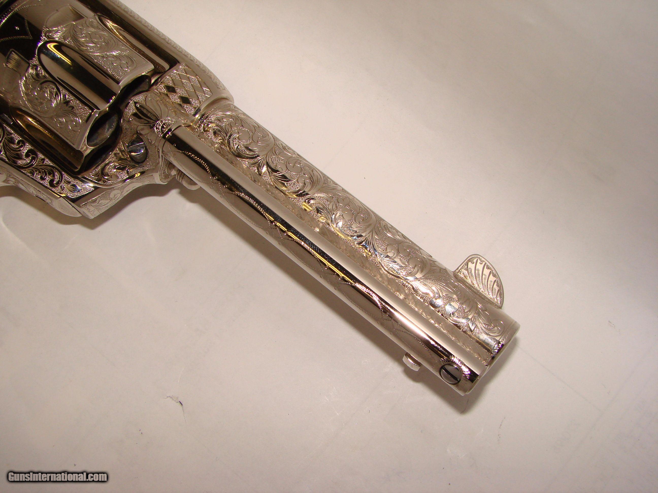 Description: Colt SAA in 45 Colt with 4.75" barrel,nickel finish and ivory grips. Beautifully engraved by Master Engraver Phil Quigley. This is a 2nd Generation Single Action,no box. In excellent condition and an amazing attention to detail in the Engraving. Would make a wonderful addition to your collection. *No extra fees, You only pay for the cost of the item & $35 for shipping{AK&HI Extra} Arizona Residents Must Pay Sales Tax. *Legendary Guns in Phoenix AZ 602-242-1195 Hours of operation M-F 10-6 Sat 10-5 Closed Sundays. *All items online are also for sale at our Phoenix location *Please call the shop for any questions and to confirm availability before buying. We are happy to answer all questions. *We offer a 3 day inspection period with a full refund if item was misrepresented. We accept returns for any reason within the 3 day inspection period with NO refund for shipping coming or going and a 15% restocking fee. *We Only accept/consider trades that can be brought to our Store in Phoenix. *Your State Laws are your Responsibility to know. *Items ship once your Dealers FFL is received SOLD Manufacturer: Colt Model: SAA Caliber Info: 45 Colt |