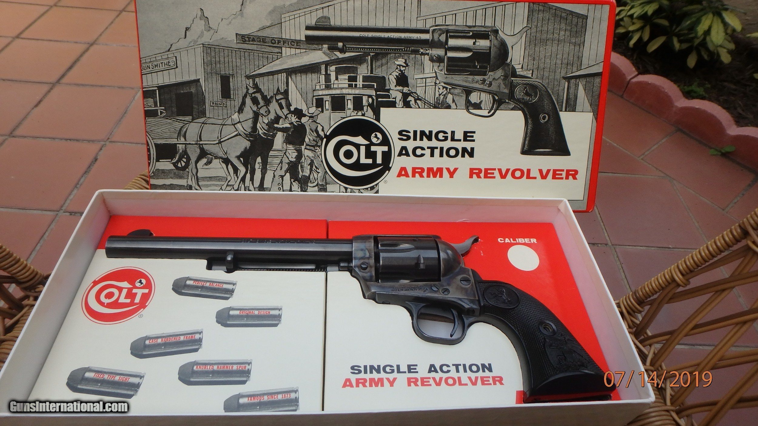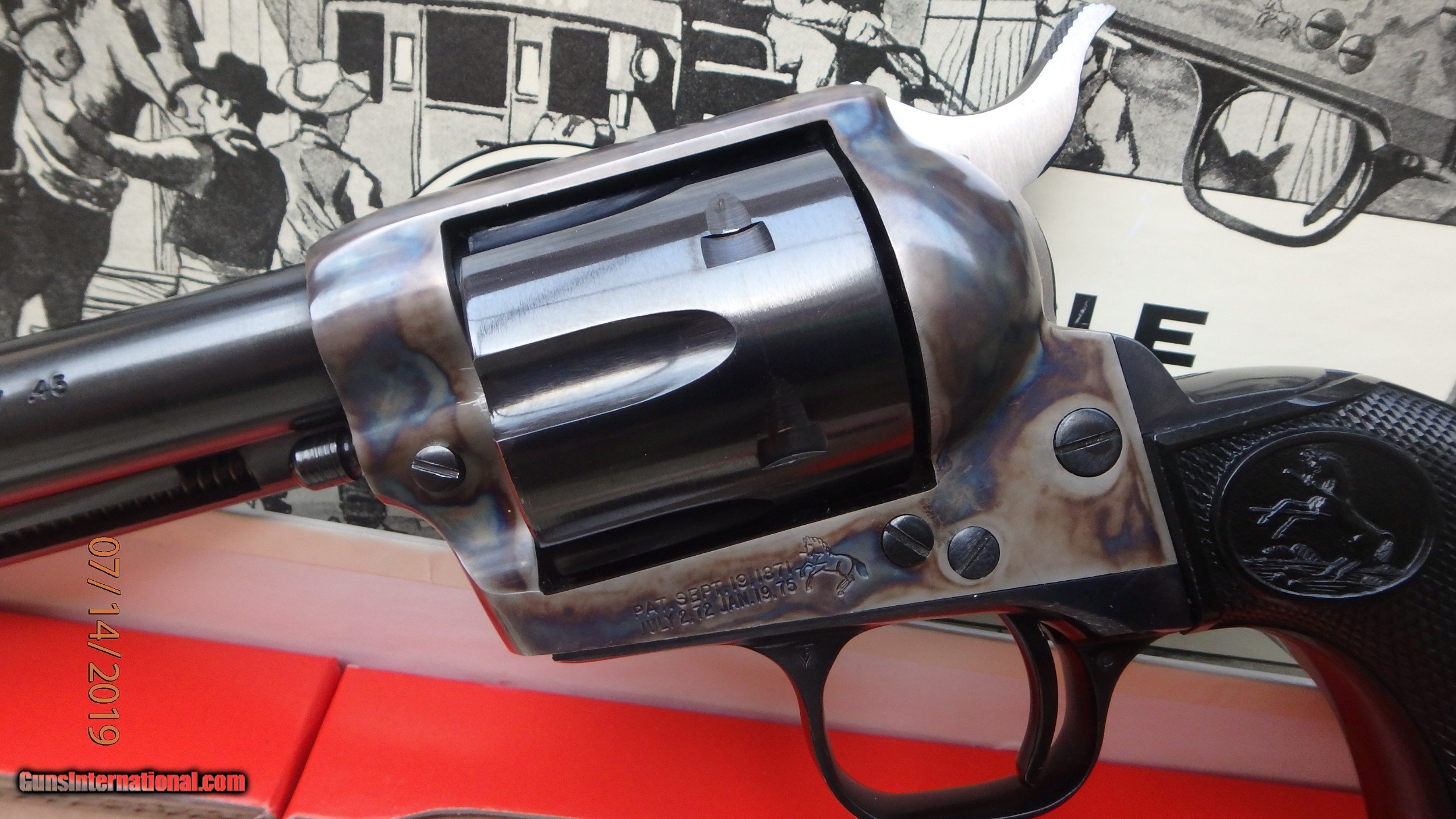Description: Colt Single Action Army .45 Gen 2 (1973) 7 1/2" Barrel with Stage Coach Box and Docs. This .45 Colt SAA with its impecable fit and finish is a Minty example of Colt's 2nd Gen Model. Price: $2,650.00 plus $45.00 S&I SOLD Manufacturer: Colt Model: SAA Gen 2 Caliber Info: .45 Colt Condition: Perfect Metal Condition: Perfect Bore Condition: Perfect |
