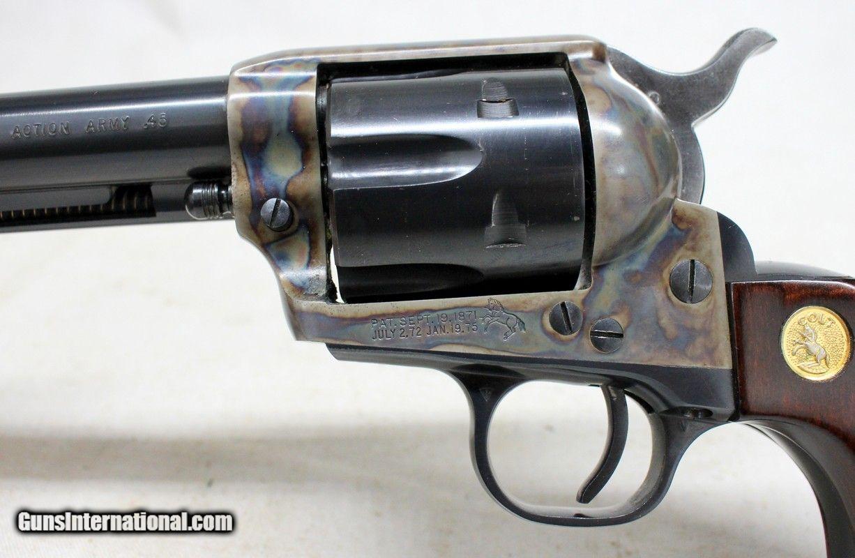 Description: We are offering for sale a Colt Single Action Army revolver chambered in .45 Long Colt. This is a 2nd Generation revolver manufactured in 1970. This gun remains in excellent, 98% condition with light overall wear. Gun comes in original box with two-piece Styrofoam insert; No end label. 5.5” barrel is excellent with a bright, shiny bore. Some light surface wear present on bottom side where case ejector rubs. Frame is AMAZING with bright case color! Cylinder shows light turn wear. Gun functions flawlessly. Grip strap is very good with very light wear. Original grips shows some light handling marks. Overall this is a near flawless pistol that appears hardly fired. SUPER CLEAN EXAMPLE!! Shipping $35.00 ***** WE ONLY ACCEPT VISA AND MASTERCARD (we charge a non-negotiable 3% CC fee) ***** PLEASE CHECK OUT ALL PHOTOGRAPHS FOR CONDITION Please know the legality of any weapon in your state before . If a gun can’t be transferred to you we will charge a 15% re-stocking fee. Also, we are a PART TIME business, Only in office Wednesday through Saturday 10am-4pm. If you make an offer on Sunday-Tuesday we may not get back to you for 24+ hours, please send us an email with any questions, and we will do our best to get back in a timely manner. Thank You. We are not a shop open to the public, no private viewings. We stand behind our descriptions, and gladly take returns, however we know based on the descriptions given, you will not be disappointed. No Face To Face Transfers! Please note: Clicking "buy" does not guarantee that this gun is yours, However clicking “Buy” will reserve this gun for you, if it hasn’t been sold in store. We will try to do our best to remove the posts as efficiently as possible, but sometimes delays may ensue. “Buy” is your safest bet to reserve a gun. Also please add 6.25% MA state sales tax (if from MA) and 3% credit card shop courtesy fee. After Clicking “buy” we will need the following from you, via email before we ship. 1: A copy of your preferred FFL’s license via email () 2: Your preferred method of payment (If Credit card: 16 digit, MM/YY exp date, 3 digit code Plus billing address) 3: Your Shipping information/ Your preferred FFL’s Shipping information. You have 5 business days to arrange payments and ffl information to us. Any purchase not completed within this time frame will be cancelled, and the ad will be put back active online. Please before calling with concerns read these conditions and meet them accordingly. SOLD |