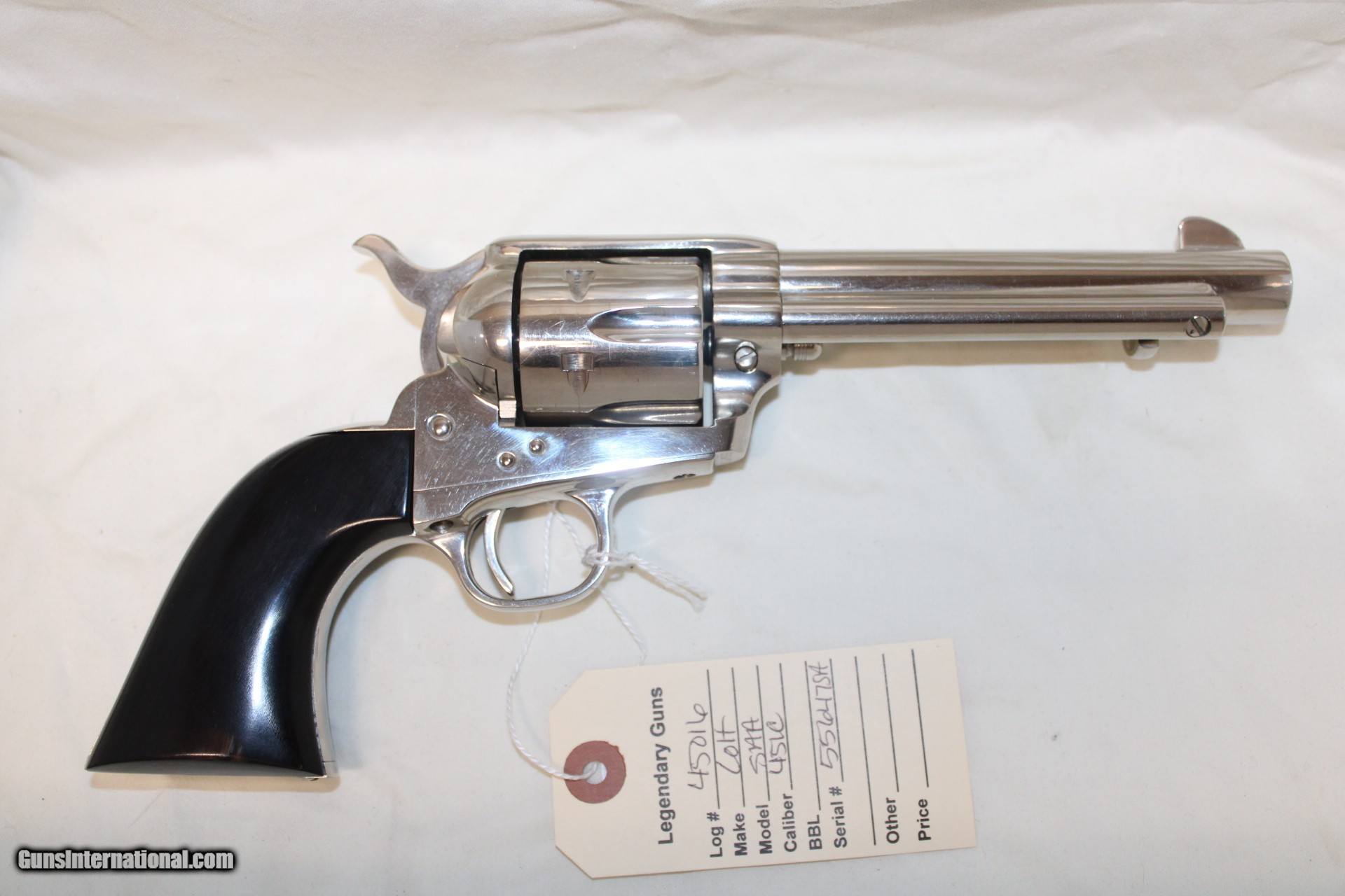 Description: Colt SAA in 45Colt with 5.5" barrel,nickel finish, 2nd Gen colt with 1 piece Bison Horn grips and a Bob James Action job, gun is fired in very good condition,no box. *Legendary Guns in Phoenix AZ 602-242-1195 Hours of operation Tuesday-Friday 10-6 Sat 10-5 Closed Sundays & Mondays *We accept all Major credit cards. We DO NOT charge an additional fee for Credit Cards. We also accept Postal Money orders or Certified Bank Checks{Check & Money order payments must arrive within 7 days of initial agreement and will be held for 3 days before items are shipped} *Shipping is $50 for rifles/shotguns {AK & HI Extra} and $35 for handguns. Arizona Residents Must Pay Sales Tax. We DO NOT ship Internationally. *We offer a 60 day layaway on purchases of $500 or more. Items require 1/3 of the total price as down payment which is NON-REFUNDABLE and you have 60 days to pay off the balance. *Please call or email with any questions and to confirm availability before buying. We are happy to answer all questions. All items listed are also for sale at our Phoenix, AZ location *We offer a 3 day inspection period on USED FIREARMS ONLY, We accept returns within the 3 day inspection period with NO REFUNDS ON SHIPPING CHARGES and a 10% restocking fee. *Trades are welcome for customers who can visit our Phoenix, AZ location, We DO NOT engage in online or mail in trades. SOLD Handgun Caliber: .45 Colt Manufacturer: Colt Condition: Used |