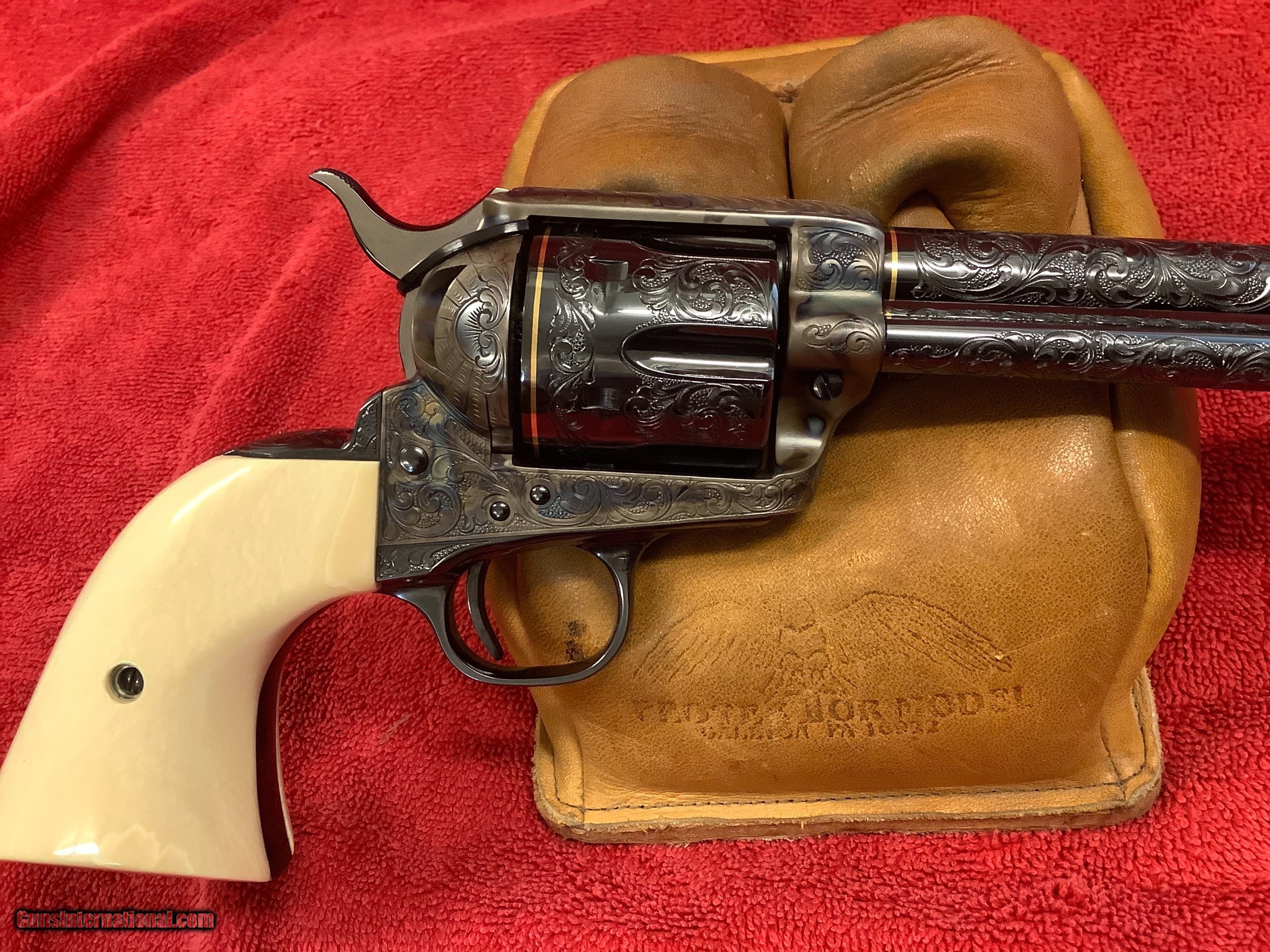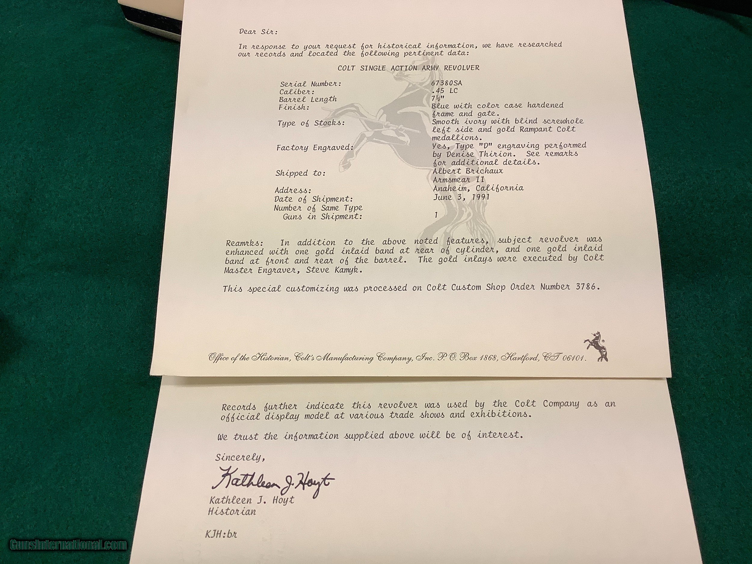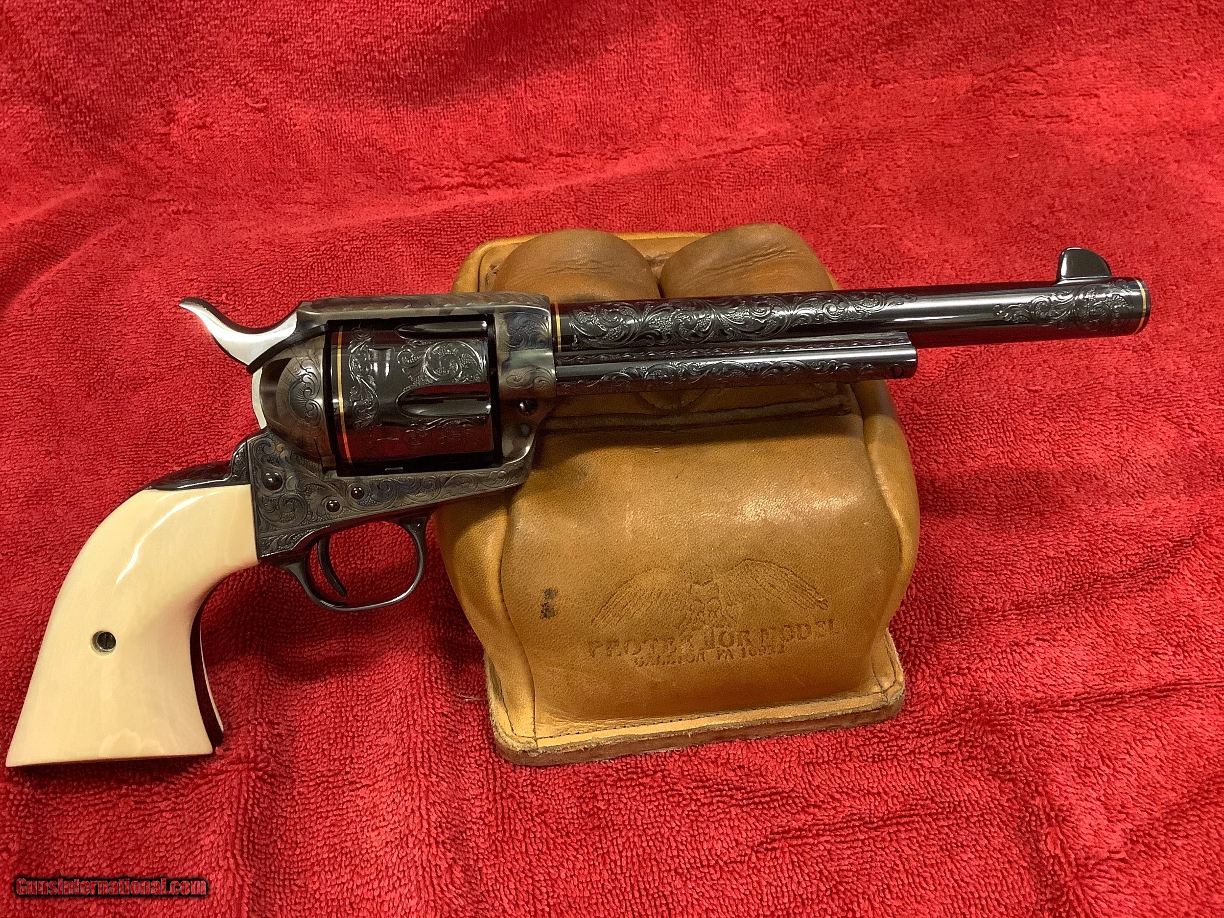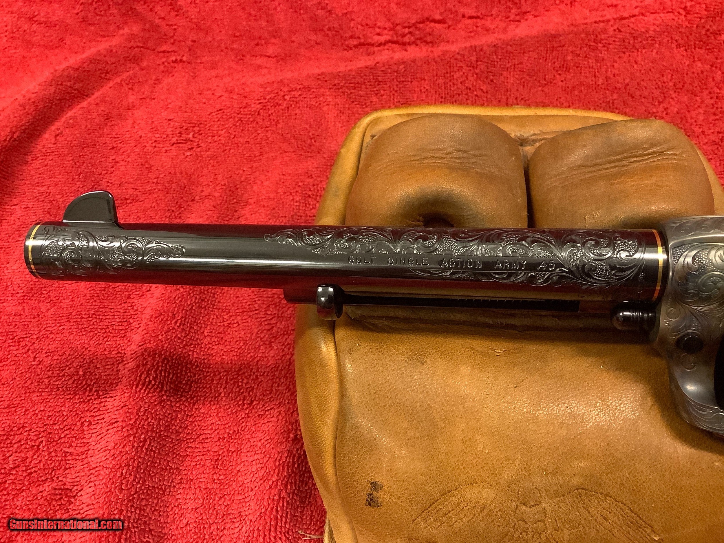 Description: This is one of only 200 plus second generation gun that was factory engraved and is one of a kind,engraved by two master engravers and used by colt as an exhibition gun as factory letter states,also this was shipped to the man that authored the engraving section of Don Wilkerson's second generation book,please call or email questions,thanks Jim SOLD |