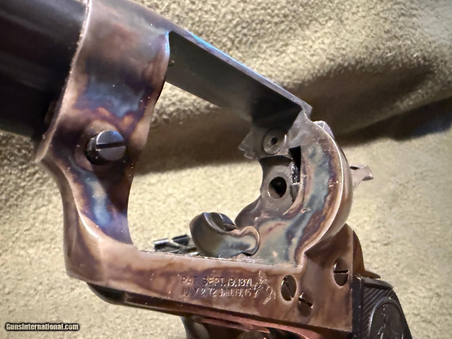 This is an exceptional second generation Colt S#525XXSA made in 1969. This is the most desirable Single Action available with the base pin bushing and a 4 3/4 inch barrel. There is little if any sign of ever being fired. A touch of bluing wear on the left end of the barrel, but otherwise nearly mint. No turn ring on the cylinder, the recoil shield shows no sign of wear. An extremely fine second generation Colt 45...$3200.00