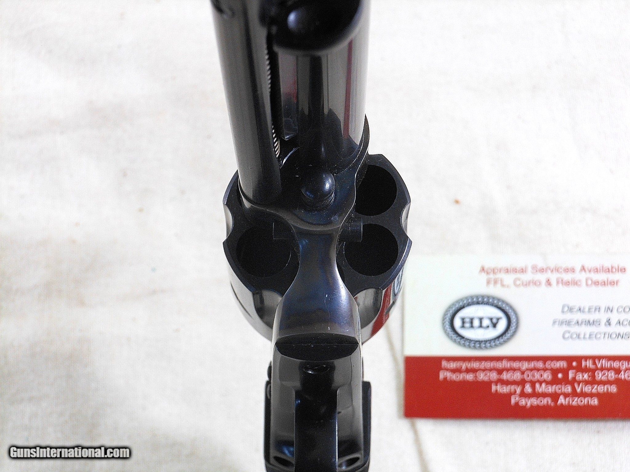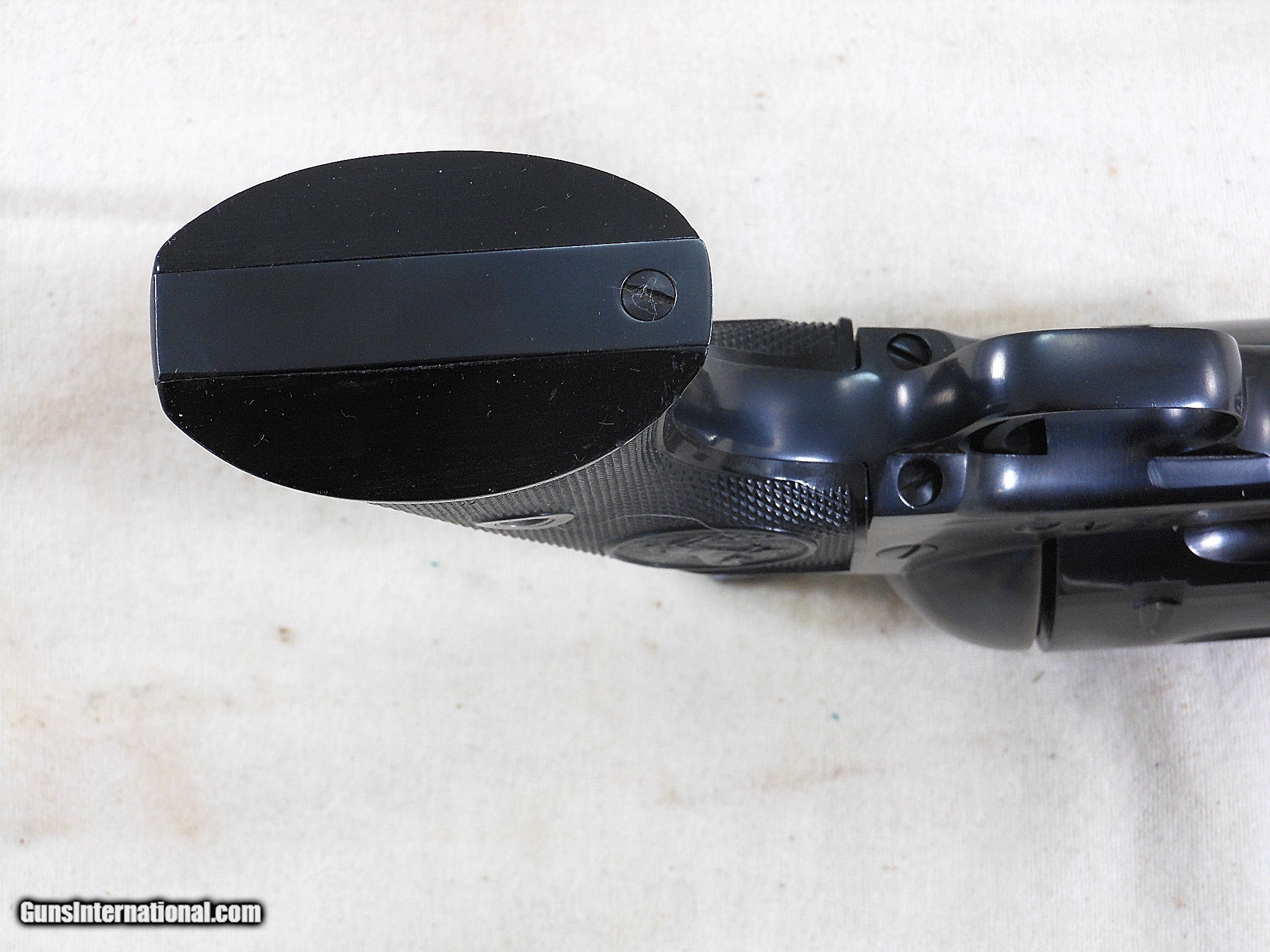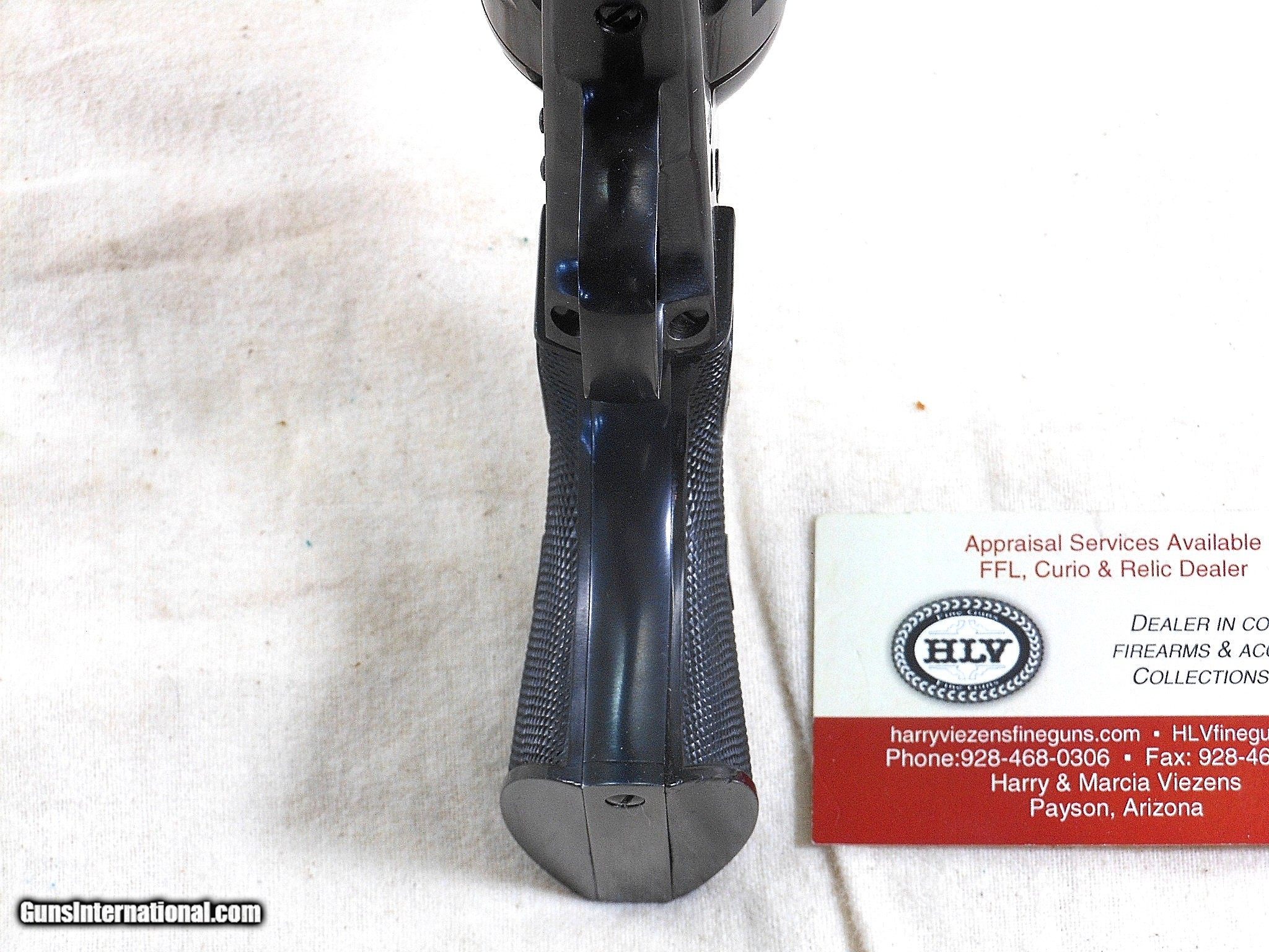 Description: SOLD This Colt was produced in the first year of the second generation Single Actions, 1956. The pistol's serial number is 5179 SA. It has the standard 5 1/2 inch barrel. This pistol appears to be in unfired condition. The bore and chambers are bright and minty. The bolt stops show no use or a drag line. There is no burn ring around the cylinder face. The color cased finish is very vivid and would rate a 99% overall condition. The original bluing would also rate a strong 99% overall condition. The original hard rubber grips are in minty condition. The only thing that would add to this fine Colt would be a original box! These very early second generation Colts are getting very hard to find in this fine of condition. Here is a great condition unfired Single Action Army that would make any collector happy to have! Curio&Relic LKAE (6) F. No. 602 -22 SOLD Curio/Relic: Yes Handgun Caliber: .45 Colt Manufacturer: Colt Model: Single Action Army Serial Number: 5179 SA Barrel Length: 5 1/2 Inch Chambers: Minty Condition: 99% Overall Metal Condition: Very Fine Bore Condition: Minty Barrel Type: Round Action: Single Action Finish: Blued Sights: Standard Manufacture Date: 1956 |