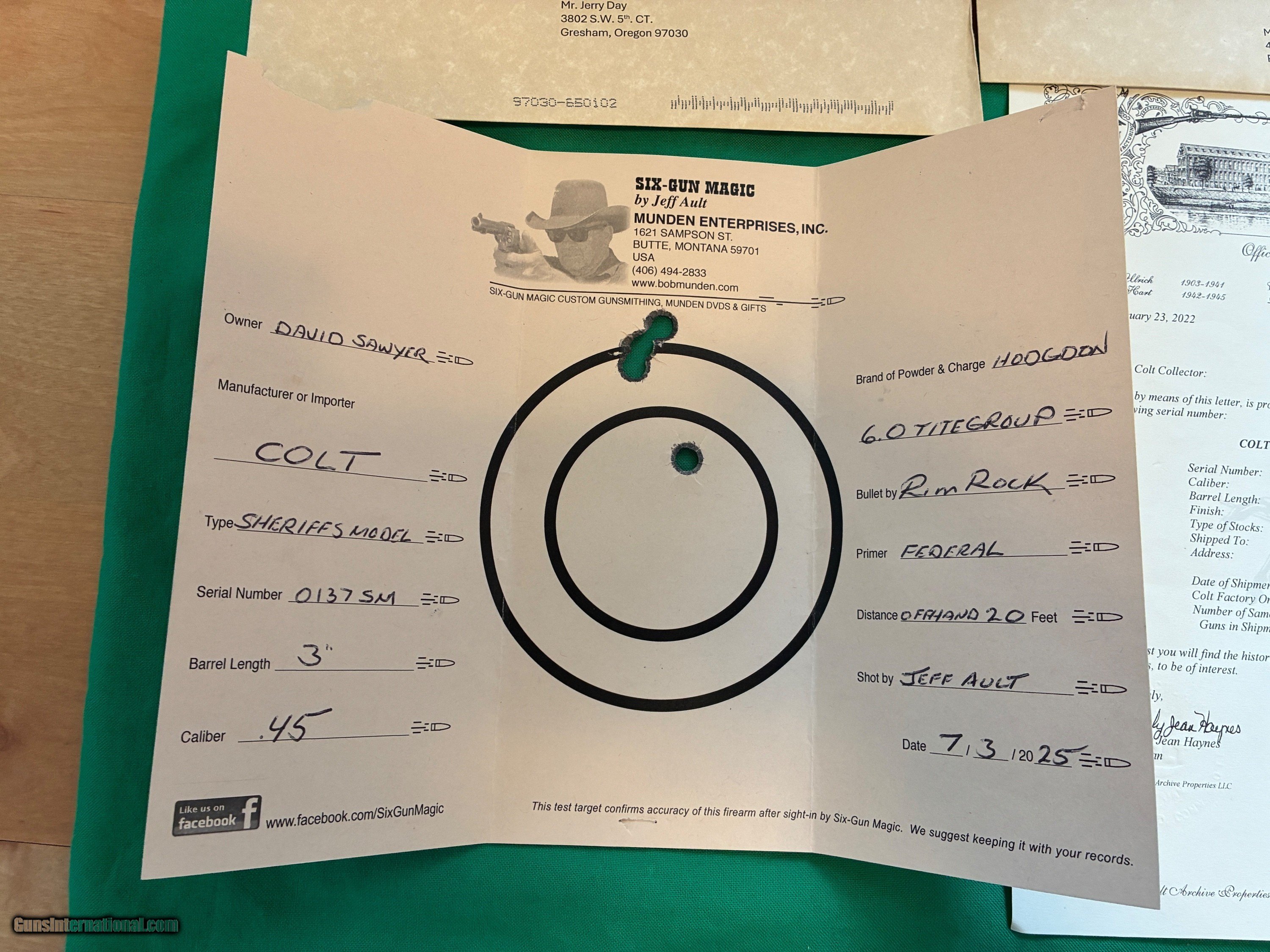 Colt sheriff's model. 45 Colt. Rare 2nd generation one of 500.