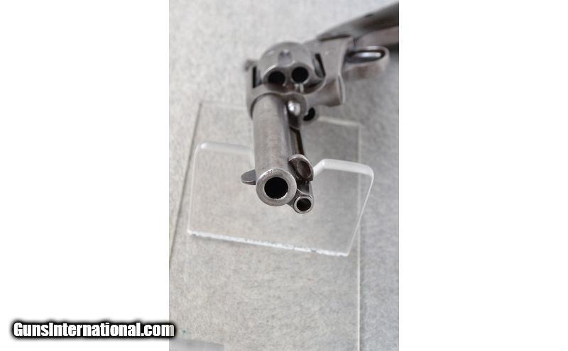 Description: This Colt Single Action Model First Generation is a 6 shot single action revolver in .38 W.C.F. Cal. It has a 4 5/8 inch barrel. A blade front sight and an integral notch rear sight. The grip is a checkered black Bakelite with the Colt horse on both sides (shows wear). Case colored frame. Cylinder is tight. Serial Number 293067 (1907). .38 WCF SOLD Chambers: 6 shot. Metal Condition: "Fair. Blue wear, freckling, fine pitting and use marks. Bore Condition: Very Good. Barrels: 4 5/8 inch. Triggers: Single Action. Weight: 38 oz. Sights: Blade front. Integral notch rear. Item Location: Richfield, WI |