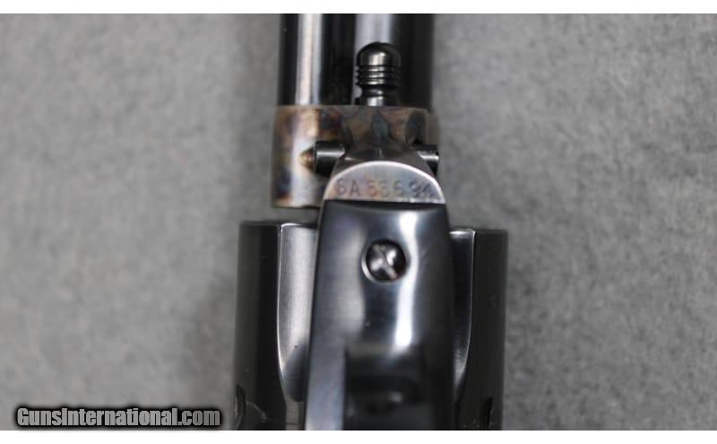 Description: This Colt single-action revolver is chambered in .45 Colt. Pistol only, no accessories. S/N SA55694 .45 Colt SOLD Curio/Relic: Yes Metal Condition: Very good with minor wear and handling marks Wood Condition: Very good with minor wear and handling marks Bore Condition: Bright and clear with no pitting Barrels: 6 INCHES Item Location: Fort Worth, TX |