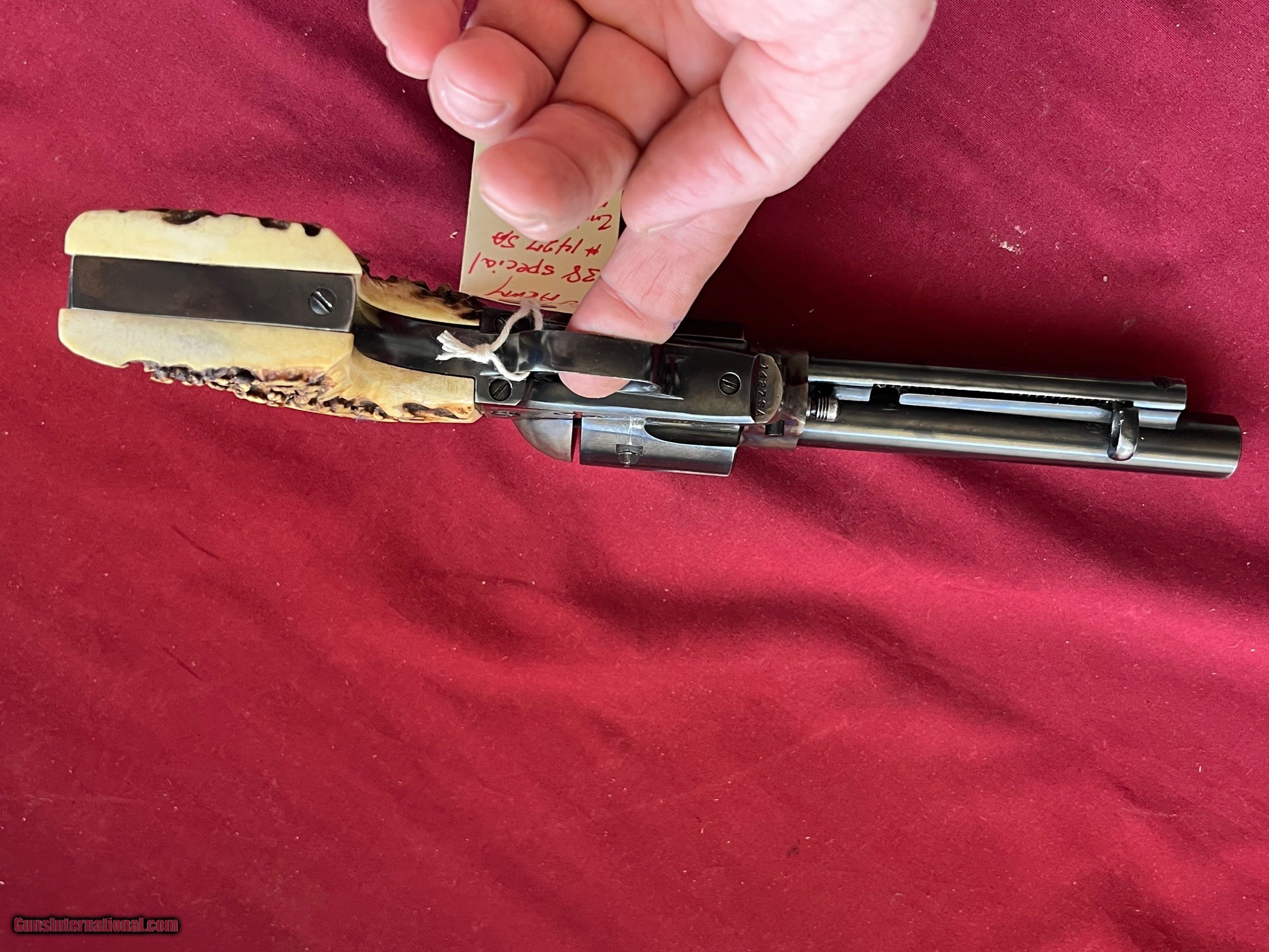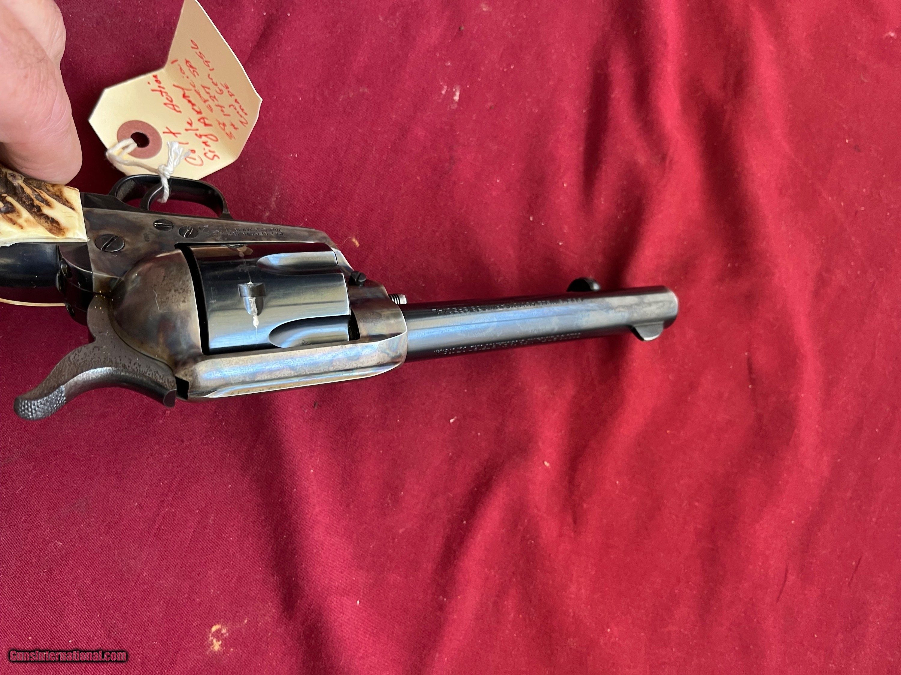 Description: COLT SINGLE ACTION ARMY REVOLVER , 2ND GENERATION MADE IN 1956, CALIBER 38 SPECIAL, 5 1/2 INCH BARREL WITH AN EXCELLENT BRIGHT BORE. VERY GOOD TIGHT CRISP ACTION THAT FUNCTIONS FINE. ORIGINAL BLUE WITH CASE COLORED FRAME. COMES WITH REAL STAG GRIPS. EASTERN BRANCH FIREARMS ADD 40.00 SHIPPING – NEXT DAY AIR SHIPPING ADD 50.00 SHIPPING – LONG GUNS GROUND OPTIONAL INSURANCE IS AVAILABLE AT 1.25 PER 100.00 Questions e-mail or call Glen at Eastern Branch Firearms 207-215-5021 TERMS – PLEASE READ BEFORE I DO NOT HAVE A LAYAWAY OPTION ( WE ACCEPT CREDIT CARDS ) -- I GET ALOT OF REQUEST FOR TRADES, I WOULD PERFER NOT TO DO TRADES ON MY INTERNET LISTINGS PAYMENT OPTIONS- We accept money orders, cashier’s checks , bank checks. sorry no personal checks. We accept all major credit cards please add 3% to the ’s cash discount price.(Shipping within the state of Florida - Florida Residents must pay sales tax) .Handguns and long guns do need to be shipped separate. PLEASE do not send payment via FED EX . USPS & UPS are fine. Thank you. We include a signed copy of our FFL with each firearm shipped. SAFTY NOTICE- Buyer is solely responsible for determining that a used gun is safe to shoot. The firearms offered have not been test fired but have been given a visual inspection only for purposes. It is a requirement that every used firearm is inspected by a qualified gunsmith before firing. By , the buyer agrees to hold seller harmless against damages, injury, or death caused by defective merchandise. RETURN POLICY- All firearms come with a 3-day non firing , non messing with ( turning srews ,taking apart,removing parts, scoping. firing, cleaning or messing with in anyway) inspection/return privilege.Inspection is based on a visual review of the gun to confirm the gun is in the condition stated. In the case of a return, buyer pays all shipping charges & if paid for with a credit card buyer absorbs the 3% credit card charges . So please ask questions BEFORE you bid. Thanks for Looking and Good Luck!! U.S. sales only, no exports…this includes antiques. I will ship to third party for exporting SOLD Curio/Relic: Yes |
