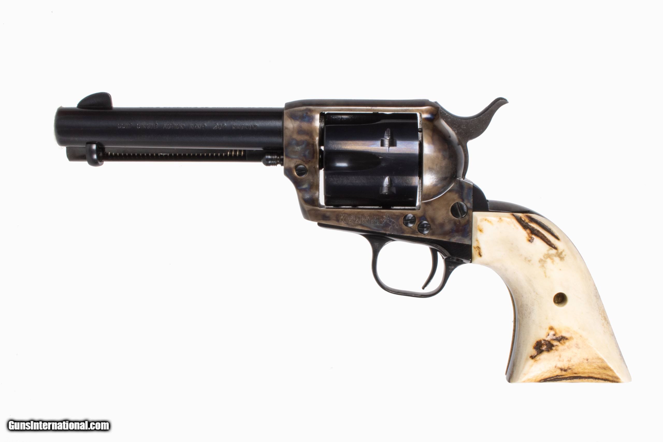 Description: Colt Second Generation Single Action Army chambered for .357 Magnum and .38 Special with 4.75-inch barrel, blued steel, six-shot fluted cylinder, gutter sights, case-colored receiver, stainless walled hammer, and stag grips. The NRA grading condition for this USED firearm is Very Good. We ship domestically in the United States. Additional shipping rates apply to Alaska and Hawaii. Dury’s Lifetime Warranty: All firearms purchased from Dury’s Gun Shop, NEW or USED, are covered by a lifetime warranty. We will repair or replace, at our discretion, any firearm purchased from Dury’s Gun Shop, Inc. for as long as it is owned by the purchaser. This warranty is not transferable. WE BUY GUNS! NO COLLECTION TOO BIG OR SMALL FOR OUR GUNS INTERNATIONAL CUSTOMERS ALL OF OUR FIREARMS CAN BE PURCHASED DIRECTLY FROM OUR DURY’S GUNS SITE ! SOLD Manufacturer: Colt Model: Single Action Army Caliber Info: 357 MAG Barrels: 5inches |