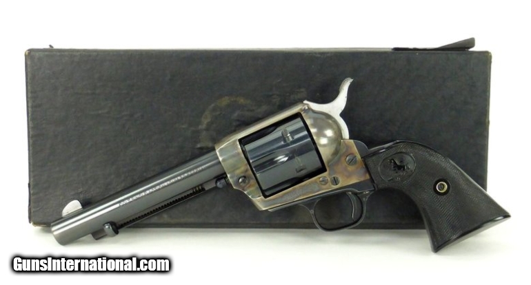 Colt Single Action Army .38 Special caliber revolver. Early model made in 1956, which was the first year of 2nd Gen production. Has 5½” barrel and is in excellent condition with a bit of light edge wear and thinning blue on the grip frame. Comes with black box. A very desirable early Colt Single Action Army.