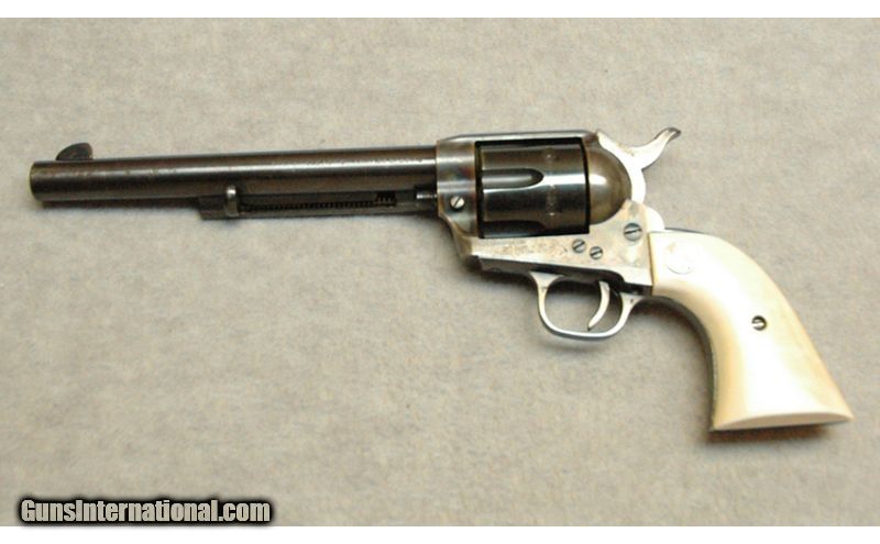 Description: Colt Single Action Army Revolver, .38 Special. Very Good Condition, with ivory grips, few areas of light corrosion on the barrel. 2nd Gen, manufactured in 1956. Appears mechanically sound, 4 distinctive Colt "clicks" when cocking the hammer. .38 Special SOLD Chambers: Revolver Metal Condition: Very good Wood Condition: Grips are very good Bore Condition: Bright Barrels: 7 1/2 Triggers: Single action Butt Pad: Ivory grips Sights: Fixed sights Item Location: La Vista, NE |