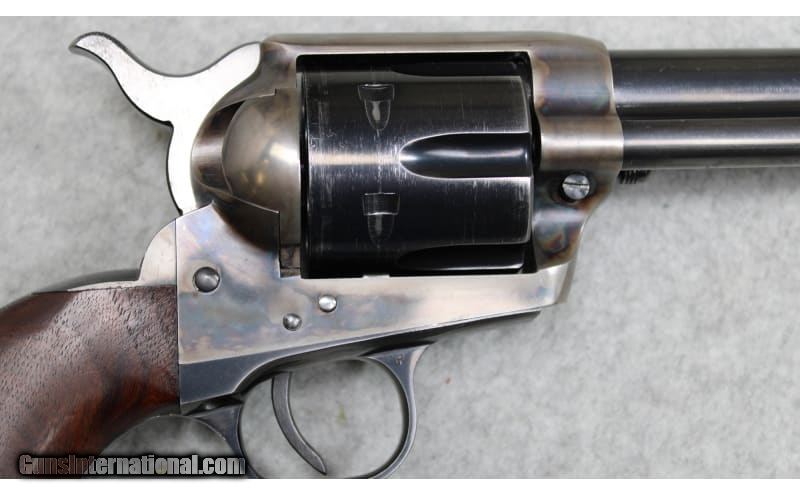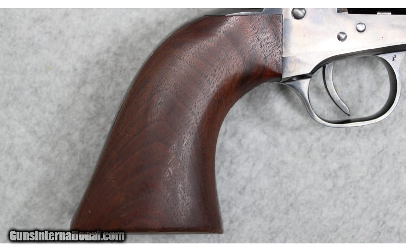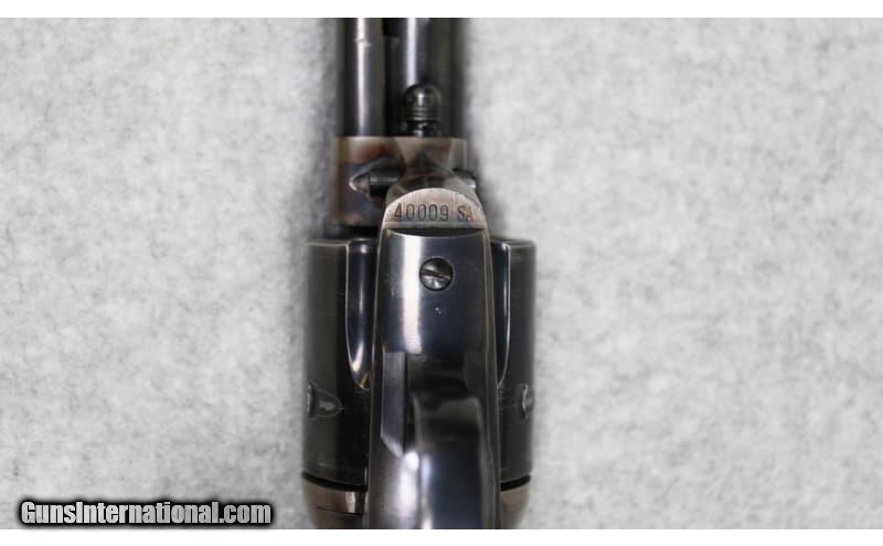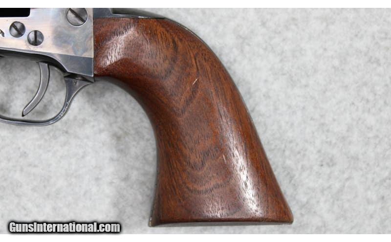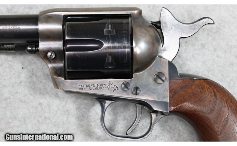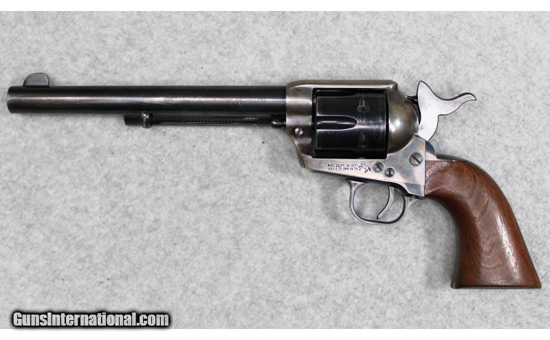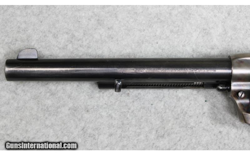 Description: Colt Single Action Army revolver chambered in .44 Special. Features include a 7-1/2 inch blued barrel, color casehardened frame, and checkered hard rubber grips. The serial number (40009SA) indicates that the revolver was manufactured in 1965. .44 S&W Special SOLD Metal Condition: Good with Handling Marks and Scratches Wood Condition: Very Good with Minor Handling Marks Bore Condition: Bright and Clear with Good Rifling Barrels: 7.5 inch Triggers: Single Action Butt Pad: Hard Rubber Weight: 2 Lbs 6 Oz Item Location: Fort Worth, TX |