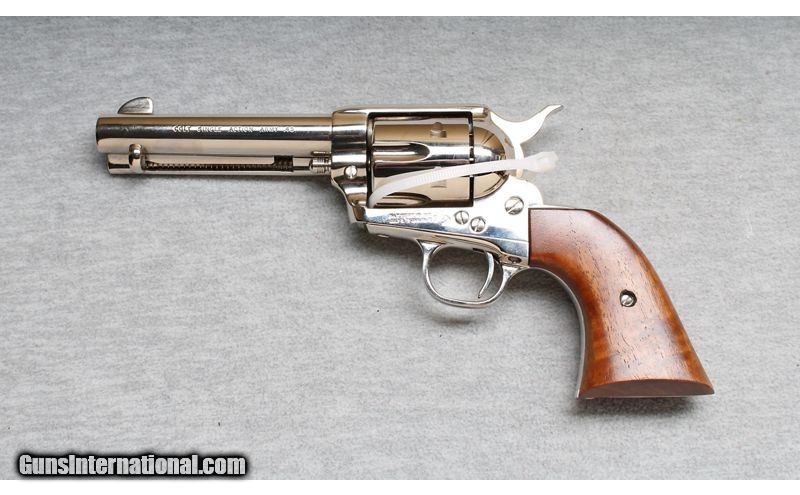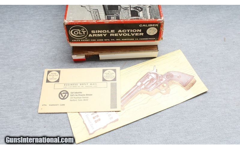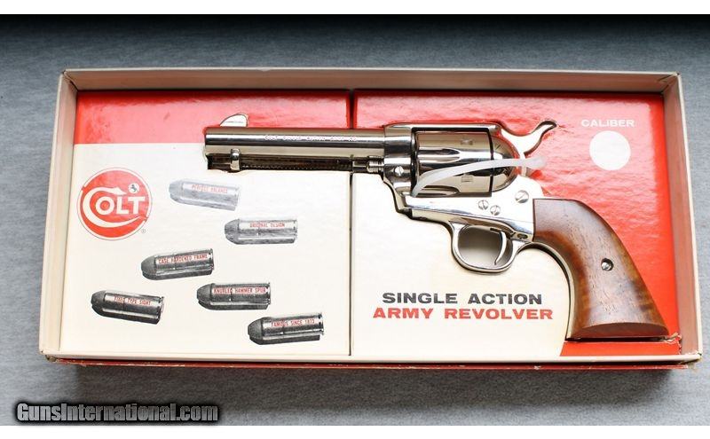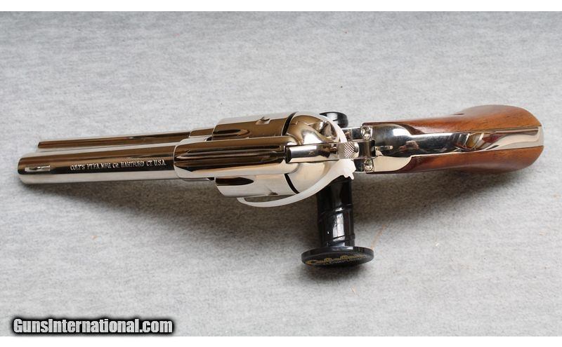 Description: Appears as new with original Stagecoach box and papers. Rare Colt SAA, only 1384 of this type were manufactured. 4 3/4" Barrel, smooth wood grips, bright nickel finish. Comes in a very nice original box - A great choice for collectors. .45 Colt SOLD Chambers: Revolver Metal Condition: As new Wood Condition: Grips are as new Bore Condition: Bright Barrels: 4 3/4 Triggers: Single action Butt Pad: Factory frips Sights: Fixed sights Item Location: La Vista, NE |