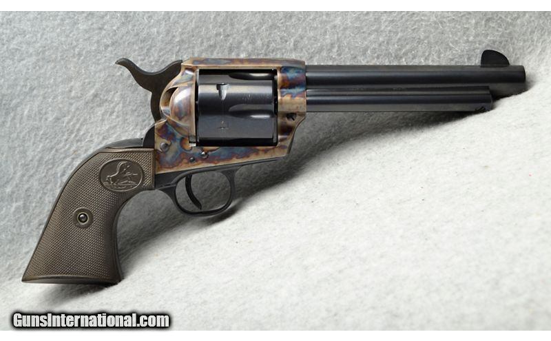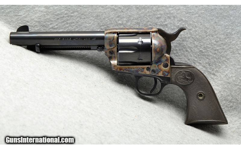 Description: Case-colored Colt SAA in .45. Reportedly unfired! .45 Colt SOLD Chambers: 6 rounds Metal Condition: Excellent Wood Condition: Grips excellent Bore Condition: Excellent Barrels: 5 1/2-inch Triggers: Single action Weight: 2 lb. 5 oz. Sights: Fixed Item Location: Cheektowaga, NY |