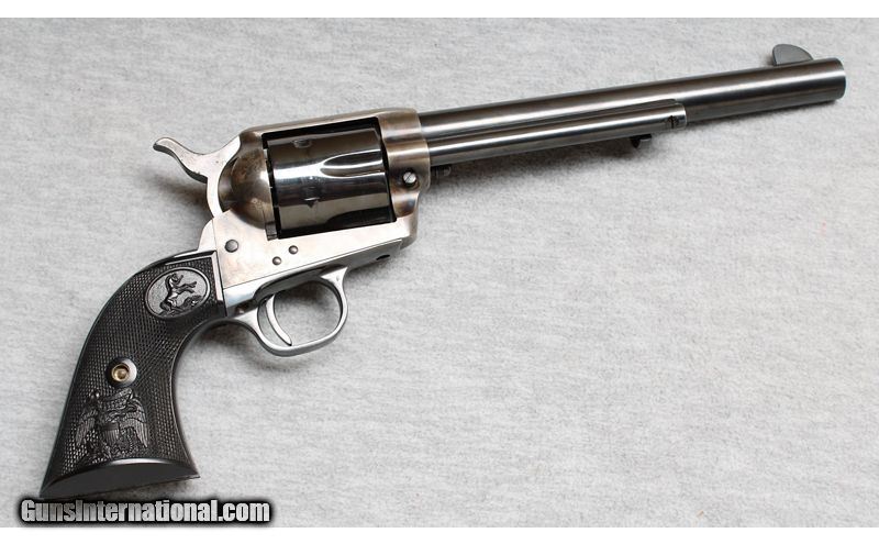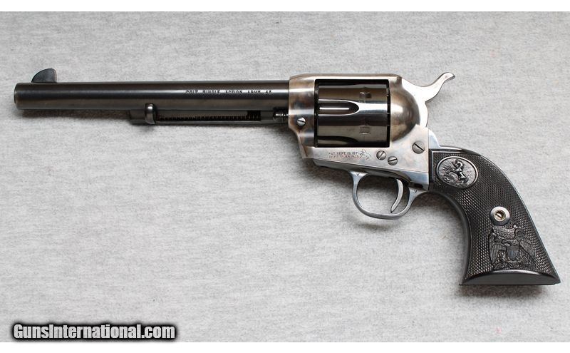 Description: Excellent, few areas of light wear, comes with original box. 2nd generation Colt SAA revolver manufactured in 1970, an excellent choice for Colt or Old West collectors. .45 Colt SOLD Chambers: Revolver Metal Condition: Excellent Wood Condition: Grips are excellent Bore Condition: Bright Barrels: 7 1/2 Triggers: Single action Butt Pad: Factory grips Sights: Fixed sights Item Location: La Vista, NE |