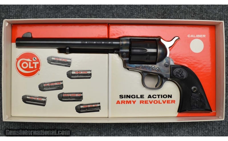 Description: For your consideration, a Colt Single Action Army chambered in .45 Colt. This piece is of the 2nd generation and dates to 1970. .45 Colt SOLD Curio/Relic: Yes Chambers: 6 Metal Condition: Excellent Wood Condition: Excellent Bore Condition: Excellent Barrels: 7.5 Triggers: Smooth Face Weight: 2.5 lbs Sights: Iron Sights Item Location: Hamburg, PA |
